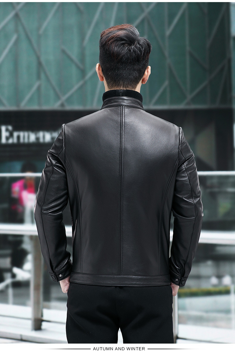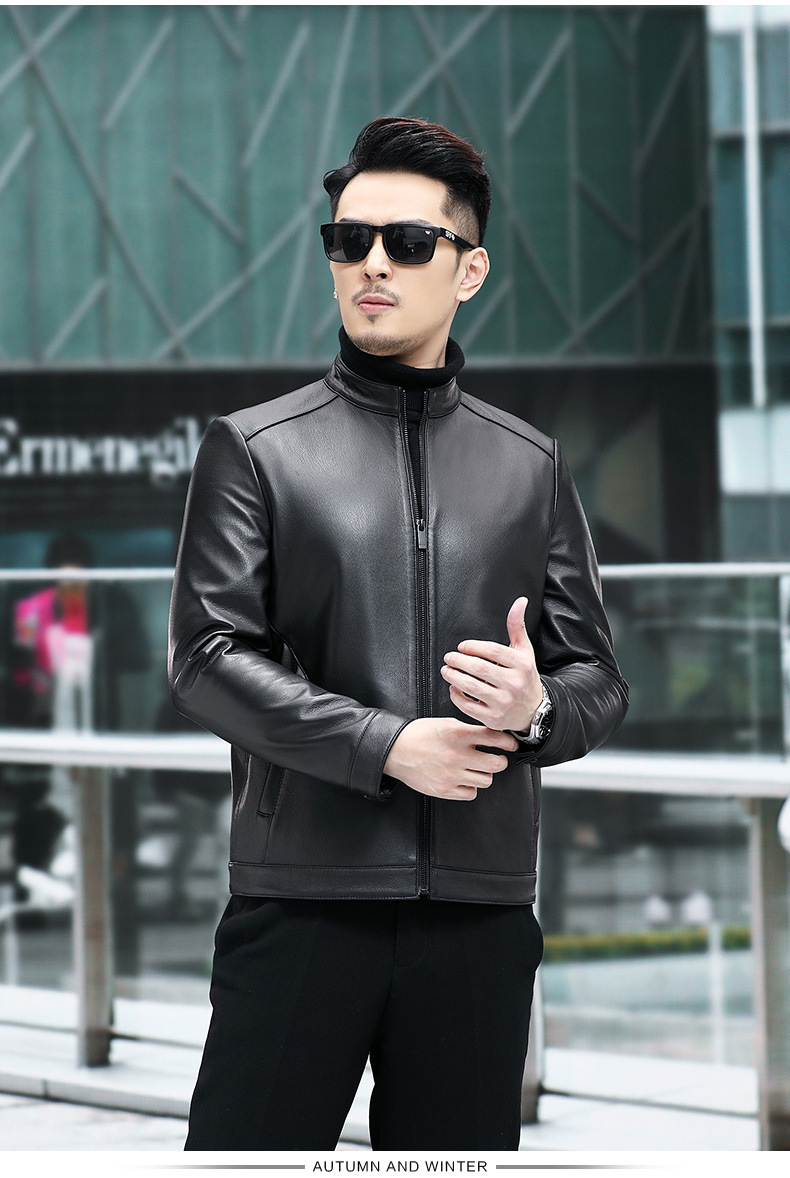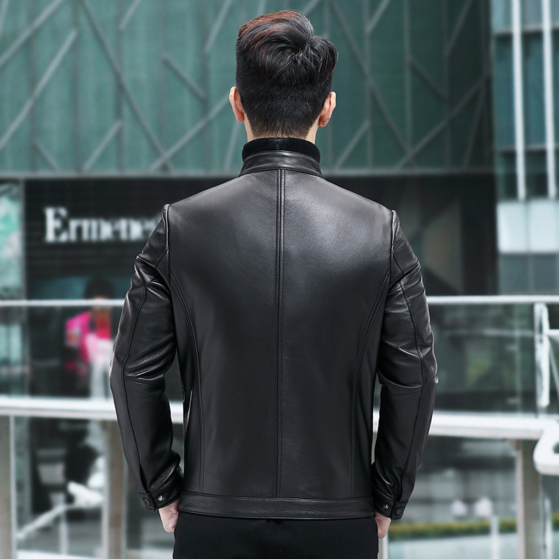 Áo khoác da dành cho nam, thiết kế cho tiết trời mùa xuân và mùa thu. Sản phẩm được làm từ chất liệu da dê mềm mại và bền chắc. Kiểu dáng cổ đứng có thể bẻ lật, phù hợp cho cả công sở và những dịp thư giãn. Đường may tỉ mỉ, form áo vừa vặn tôn dáng. Có thể mặc kết hợp với áo thun hoặc áo sơ mi bên trong. Dùng khăn mềm ẩm lau nhẹ bề mặt để giữ áo luôn sạch đẹp. | Tên sản phẩm: Áo Da Nam Chất Liệu Da Bò Kín Cổ Hàng Mùa Xuân Thu Đông Trung Niên - Thời Trang Nam | Mã sản phẩm: B5975 - Giá: 5.270.000đ | Mã nhà sản xuất: HADG-G06Hình ảnh sản phẩm