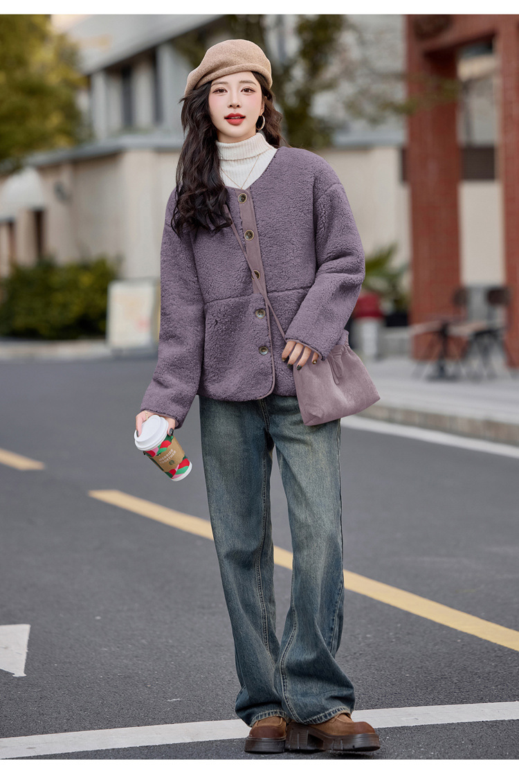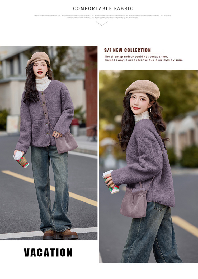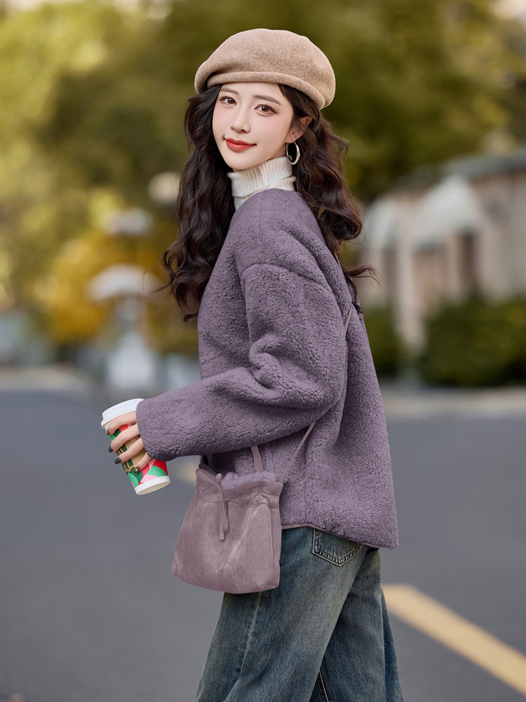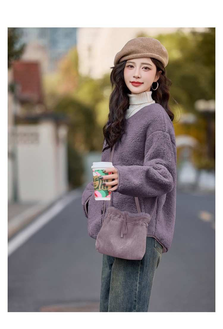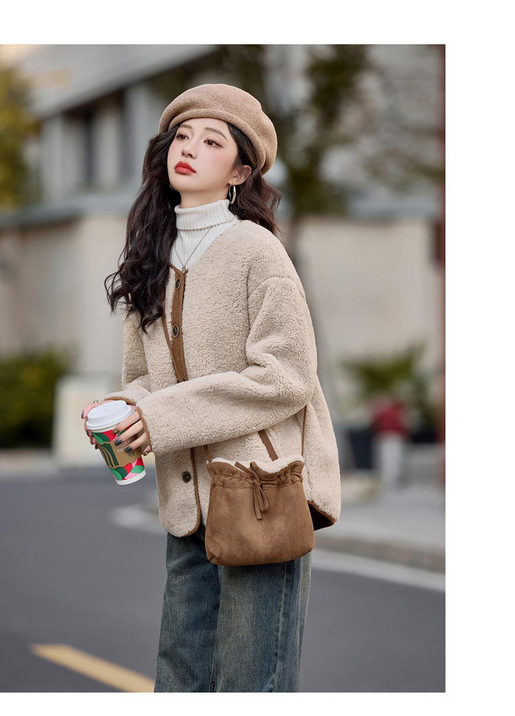 Áo khoác kiểu dáng rộng, chất liệu lông cừu mềm mại, mang đến sự ấm áp và thoải mái cho những ngày thu đông. Thiết kế cổ tròn và phom dáng thư giãn tạo nên vẻ ngoại hình trẻ trung, dễ dàng phối hợp với nhiều loại trang phục khác nhau. Sản phẩm đi kèm với một chiếc túi xách nhỏ để hoàn thiện bộ trang phục. Cách sử dụng đơn giản, mặc trực tiếp và phù hợp cho nhiều hoạt động hàng ngày. | Tên sản phẩm: Áo Khoác Nữ Hàng Mùa Xuân Thu Đông - Thời Trang Nữ | Mã sản phẩm: B5985 - Giá: 2.290.000đ | Mã nhà sản xuất: HADG-G05Hình ảnh sản phẩm