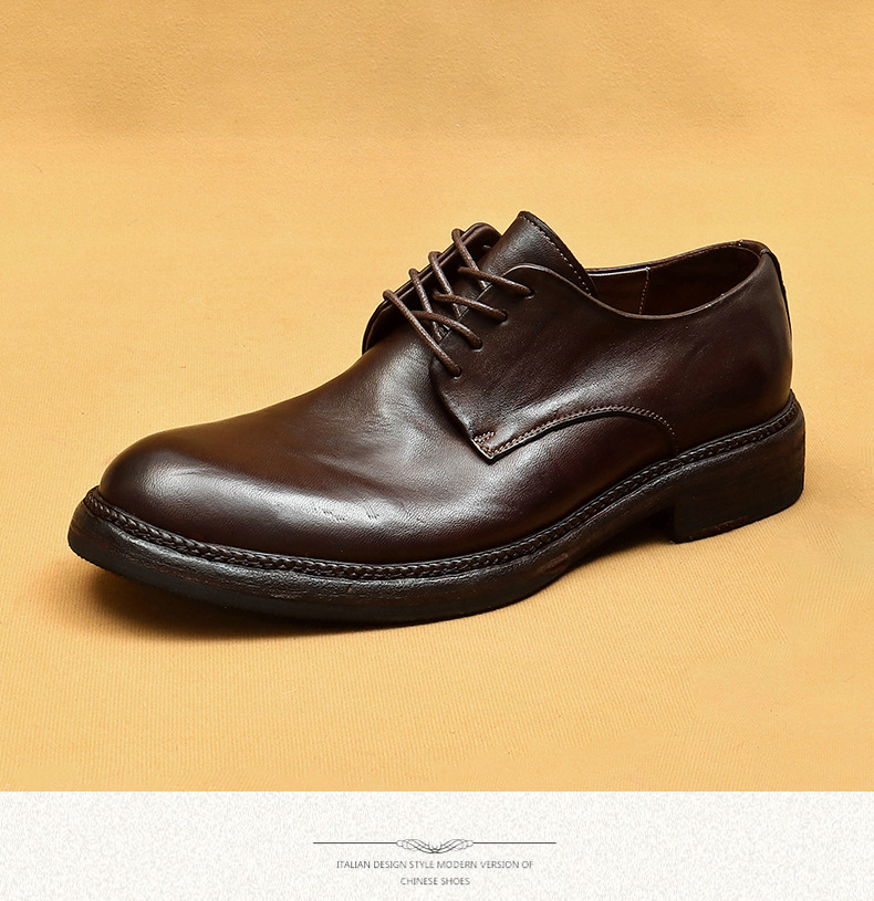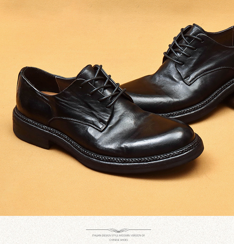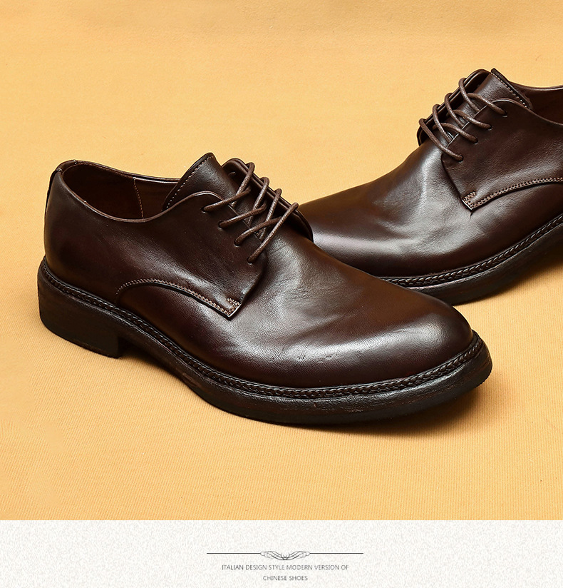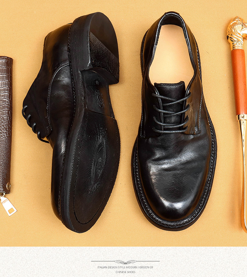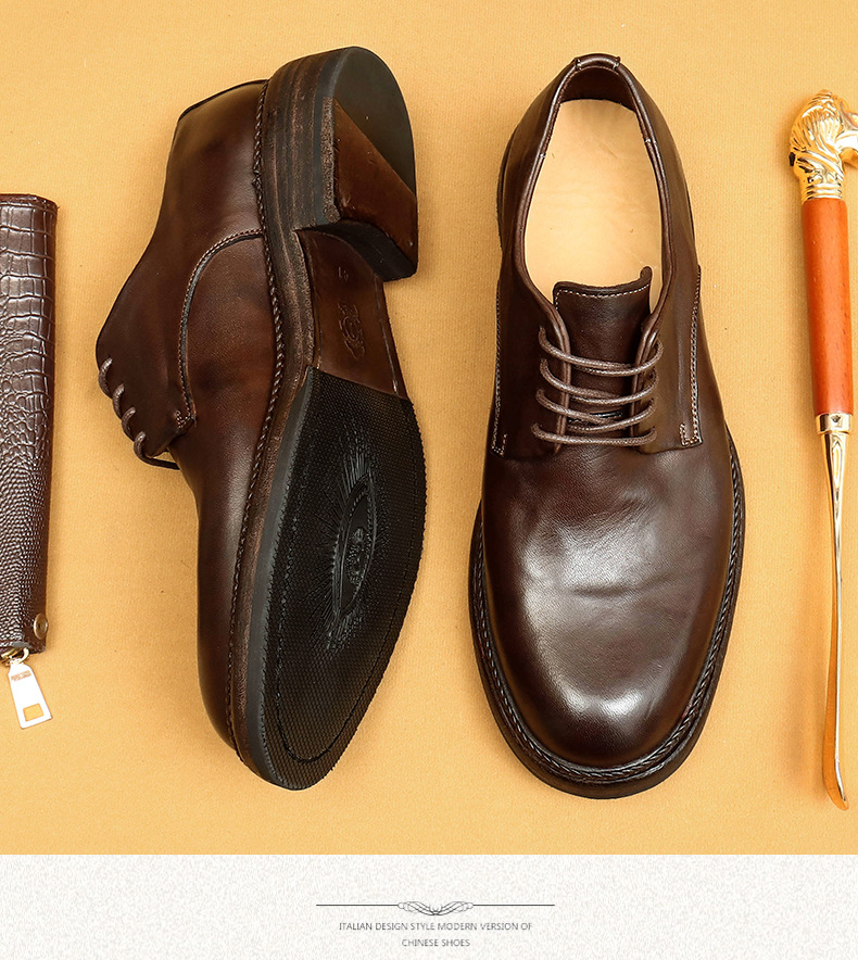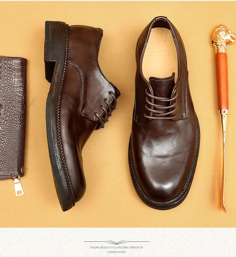 Giày da nam kiểu dáng Derby phù hợp cho cả công sở và dạo phố. Sản phẩm được làm thủ công tỉ mỉ từ chất liệu da thật, phần đế và mặt giày đều bằng da, tạo cảm giác êm ái và bền lâu. Kiểu dáng cổ điển pha chút phong cách hoài cổ, dễ dàng phối cùng nhiều loại trang phục. Bạn chỉ cần xỏ giày, điều chỉnh dây và buộc lại là có thể sử dụng ngay. | Tên sản phẩm: Giày Da Nam Chất Liệu Da Bò Phục Cổ Cổ Điển - Giày Dép Nam | Mã sản phẩm: B5997 - Giá: 4.530.000đ | Mã nhà sản xuất: SHERAW-G06Hình ảnh sản phẩm
