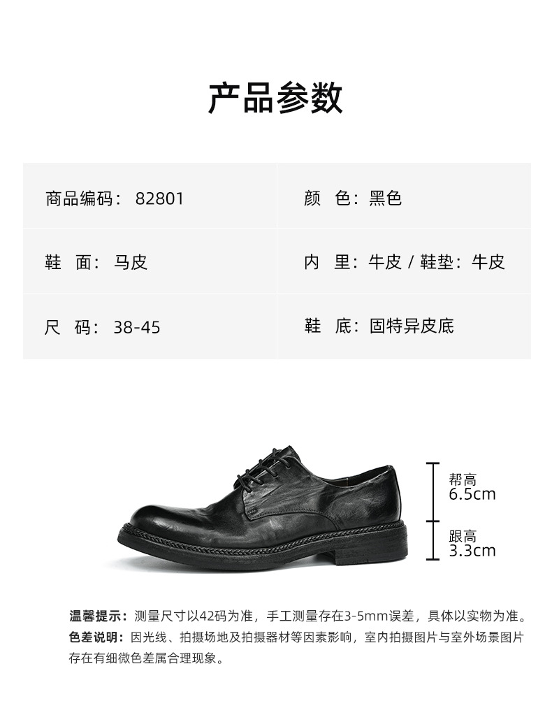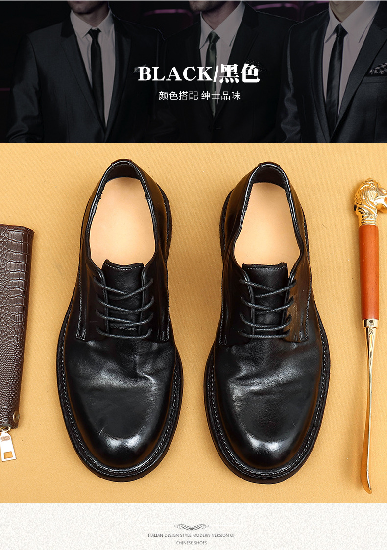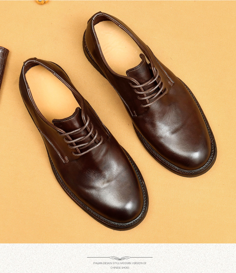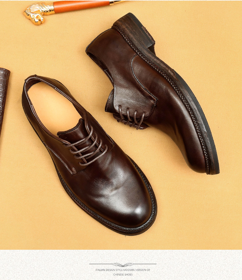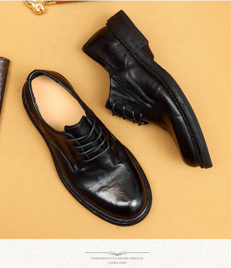 Giày da nam kiểu dáng Derby phù hợp cho cả công sở và dạo phố. Sản phẩm được làm thủ công tỉ mỉ từ chất liệu da thật, phần đế và mặt giày đều bằng da, tạo cảm giác êm ái và bền lâu. Kiểu dáng cổ điển pha chút phong cách hoài cổ, dễ dàng phối cùng nhiều loại trang phục. Bạn chỉ cần xỏ giày, điều chỉnh dây và buộc lại là có thể sử dụng ngay. | Tên sản phẩm: Giày Da Nam Chất Liệu Da Bò Phục Cổ Cổ Điển - Giày Dép Nam | Mã sản phẩm: B5997 - Giá: 4.530.000đ | Mã nhà sản xuất: SHERAW-G06Hình ảnh sản phẩm