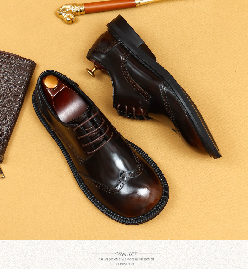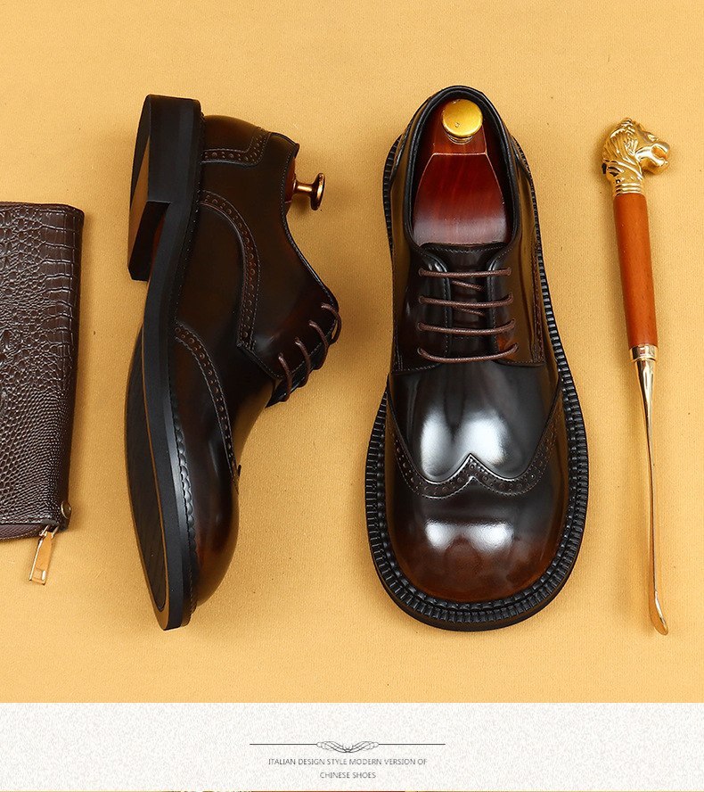 Giày da thật dành cho nam, thiết kế kiểu châu Âu cổ điển với các họa tiết khắc tinh tế trên thân giày. Phong cách kết hợp giữa đi làm và dạo phố một cách lịch sự. Đầu giày rộng rãi ôm vừa vặn, mang lại sự dễ chịu cho đôi chân. Sản phẩm phù hợp để đi cùng các trang phục như quần âu hay quần kaki. Khi sử dụng, nên vệ sinh bằng khăn mềm và bảo quản nơi khô ráo. | Tên sản phẩm: Giày Da Nam Chất Liệu Da Bò Họa Tiết Hoa - Giày Dép Nam | Mã sản phẩm: B6001 - Giá: 2.680.000đ | Mã nhà sản xuất: SHERAW-G06Hình ảnh sản phẩm