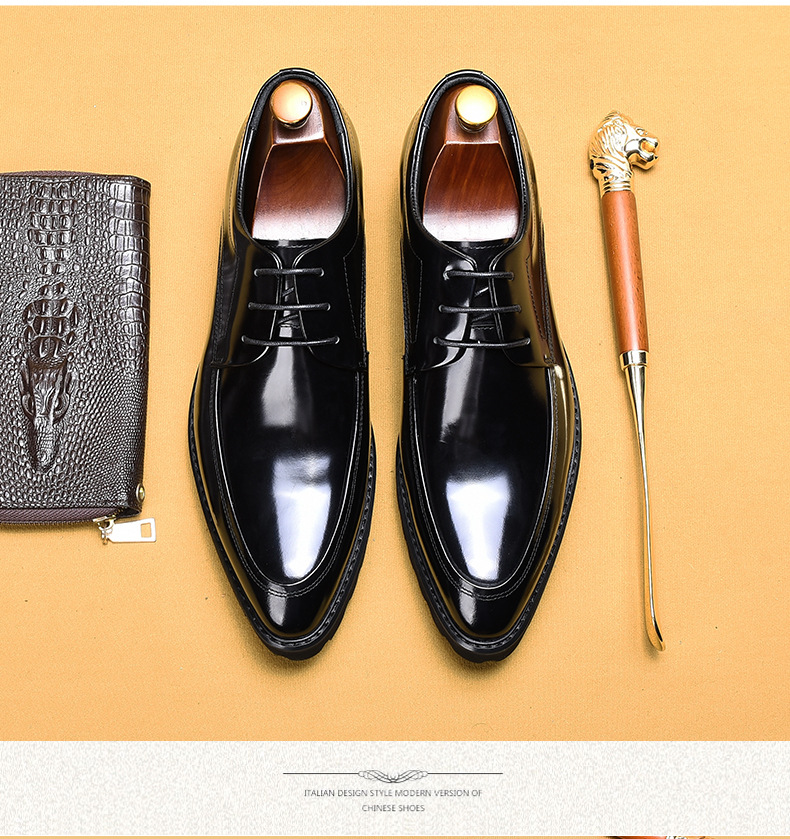 Giày da thật dành cho nam với kiểu dáng mũi nhọn, phù hợp cho cả công sở và dạo phố. Bề mặt giày được xử lý bóng đẹp, tạo điểm nhấn thanh lịch. Sản phẩm làm từ chất liệu da tự nhiên, mang lại cảm giác thoải mái khi mang. Bạn có thể dễ dàng phối cùng quần âu hoặc quần jeans để có những phong cách khác nhau. Sử dụng kèm miếng lót giày sẽ giúp tăng độ êm ái cho đôi chân. | Tên sản phẩm: Giày Da Nam Chất Liệu Da Bò Mũi Nhọn - Giày Dép Nam | Mã sản phẩm: B6002 - Giá: 2.680.000đ | Mã nhà sản xuất: SHERAW-G06Hình ảnh sản phẩm