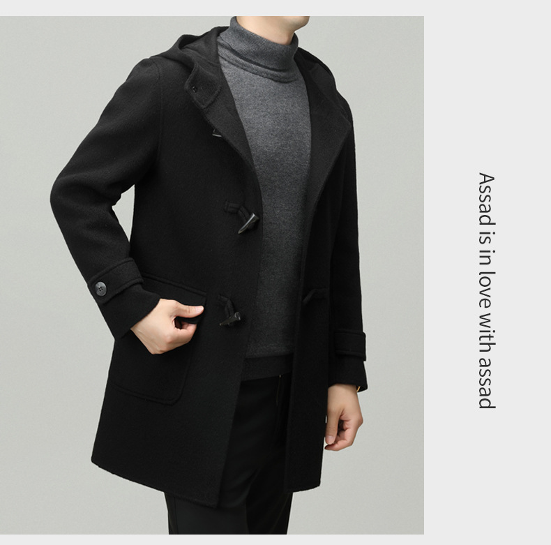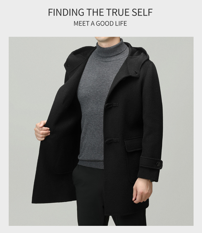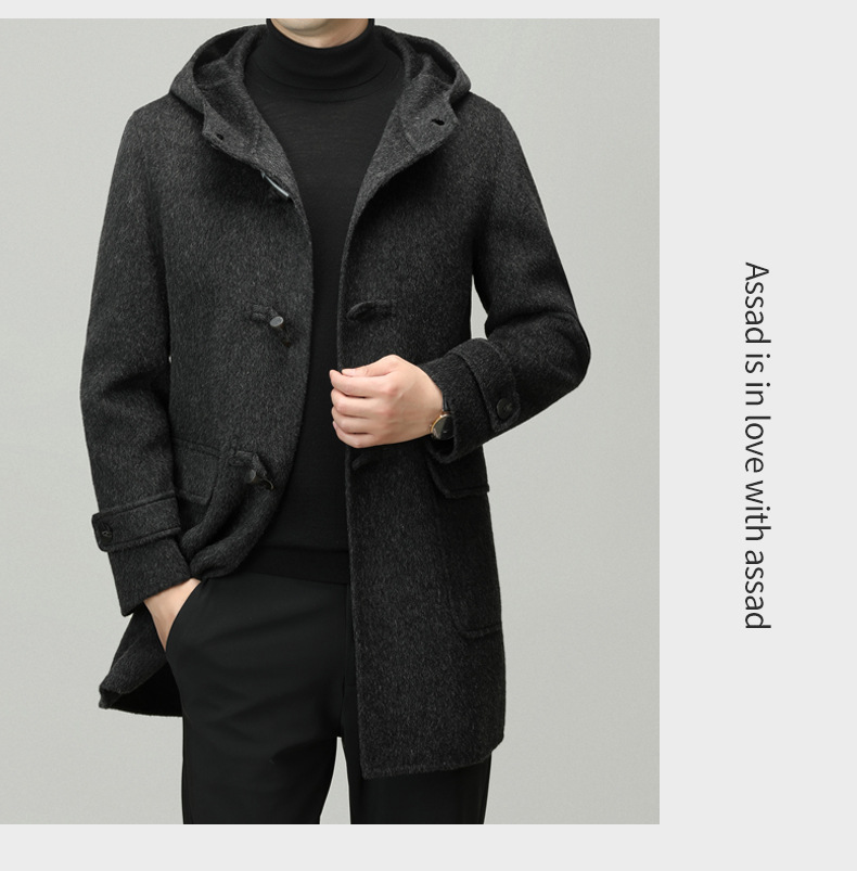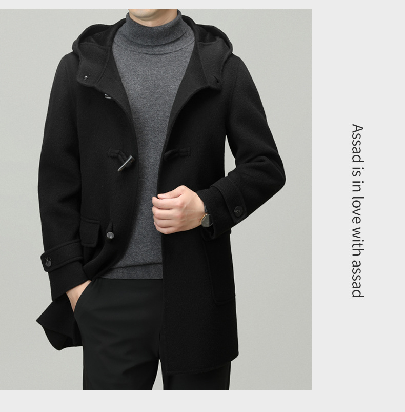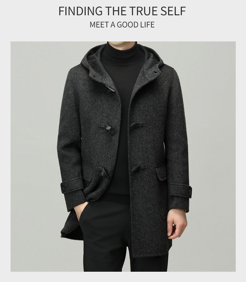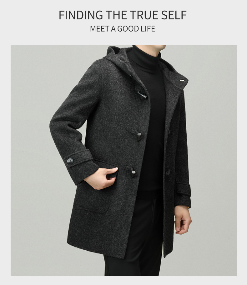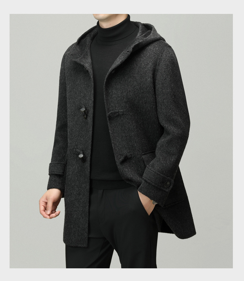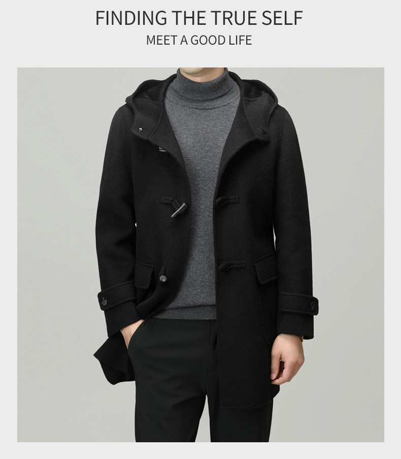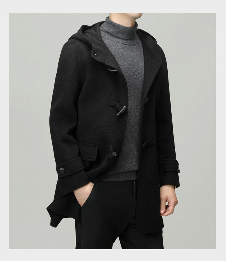 Áo khoác nam dáng dài mặc được cả hai mặt, có mũ trùm và cài cúc gỗ dáng sừng bò. Sản phẩm được dệt hoàn toàn từ sợi lông cừu tự nhiên, giữ ấm tốt và rất nhẹ nhàng. Kiểu dáng trẻ trung, dễ phối với nhiều loại trang phục như quần jeans hay áo len. Bạn có thể mặc một mặt hoặc lật mặt khác để thay đổi phong cách. Phù hợp mặc trong tiết trời lạnh, đi làm, đi chơi hay dạo phố. | Tên sản phẩm: Áo Khoác Nam Mũ Liền Hàng Mùa Xuân Thu Đông Phong Cách Hàn Quốc - Thời Trang Nam | Mã sản phẩm: B6039 - Giá: 4.790.000đ | Mã nhà sản xuất: HADG-G06Hình ảnh sản phẩm