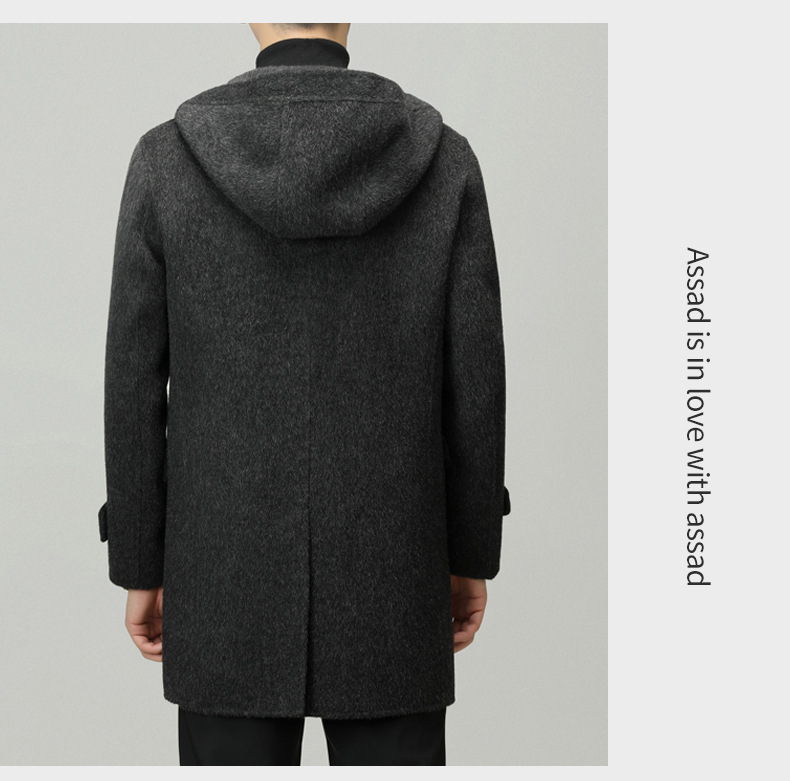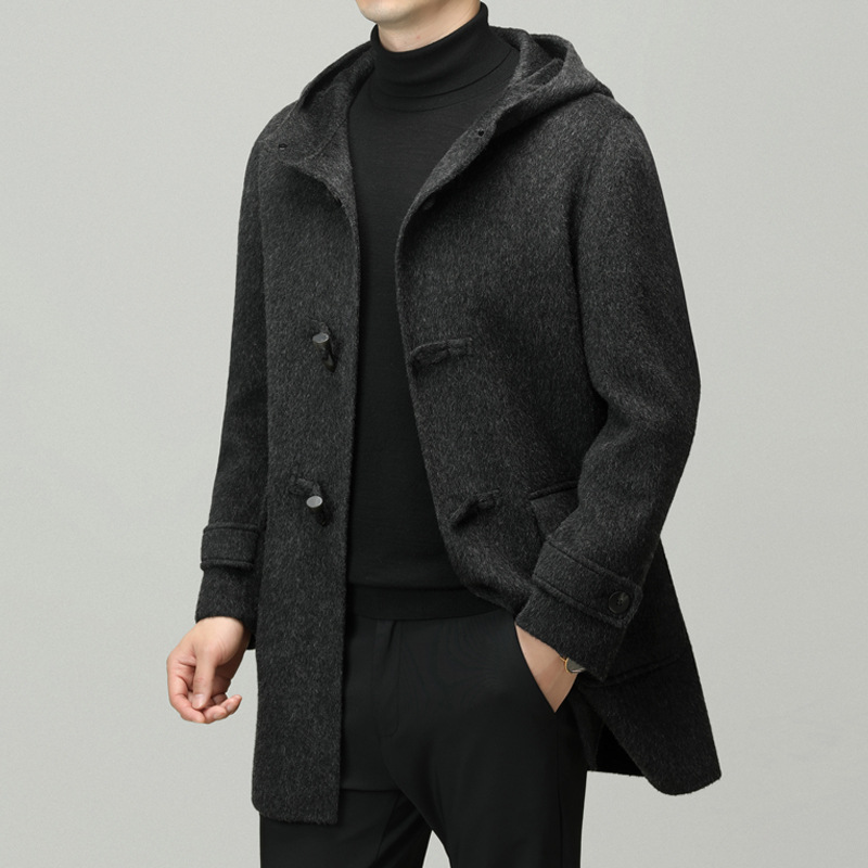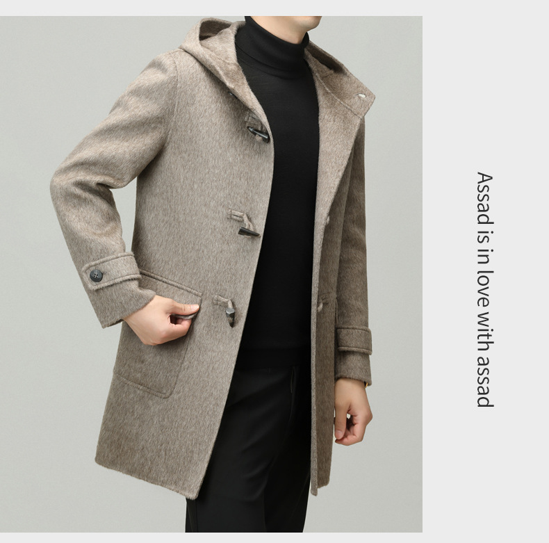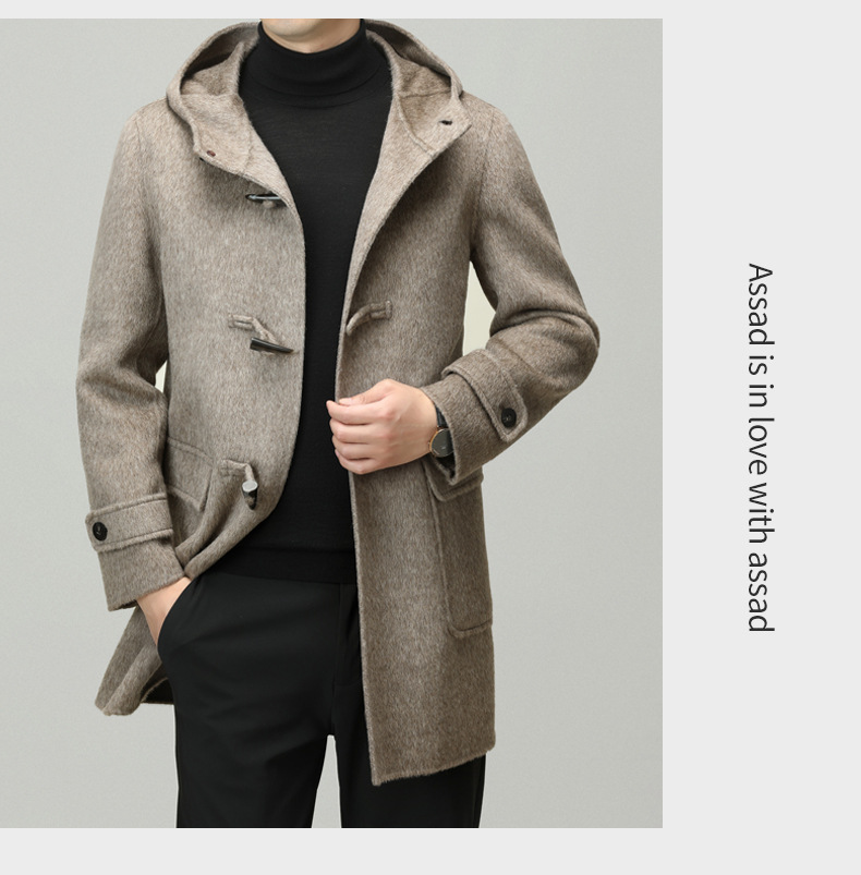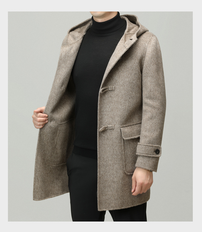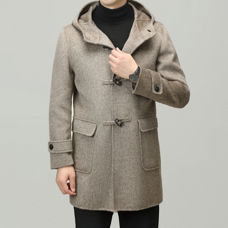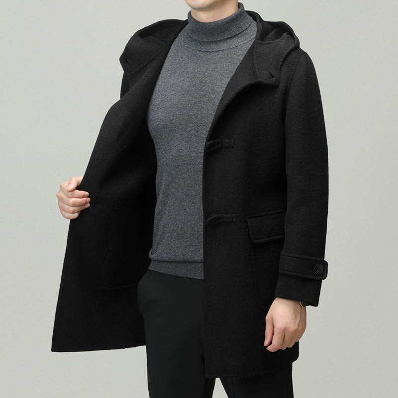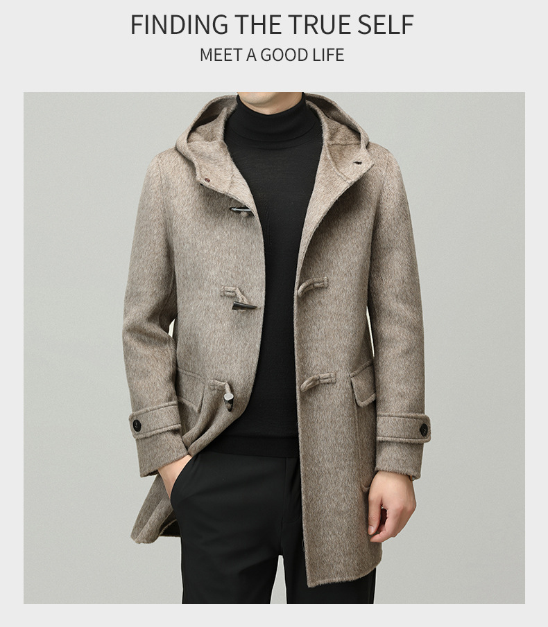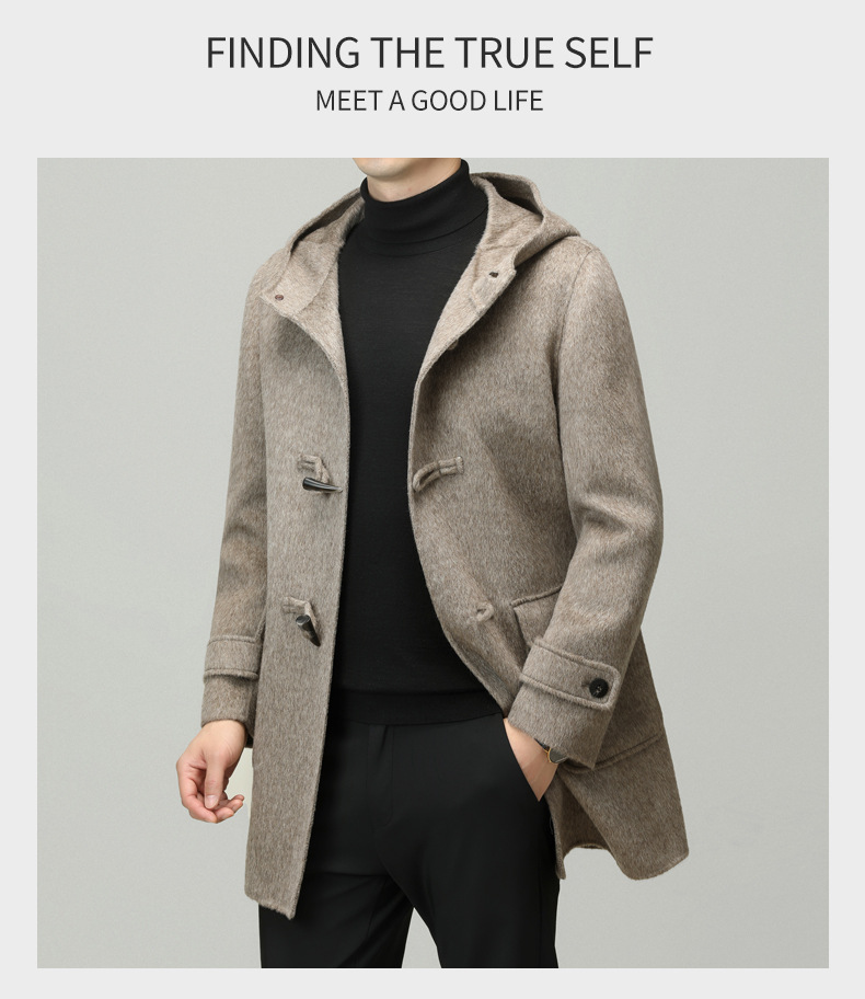 Áo khoác nam dáng dài mặc được cả hai mặt, có mũ trùm và cài cúc gỗ dáng sừng bò. Sản phẩm được dệt hoàn toàn từ sợi lông cừu tự nhiên, giữ ấm tốt và rất nhẹ nhàng. Kiểu dáng trẻ trung, dễ phối với nhiều loại trang phục như quần jeans hay áo len. Bạn có thể mặc một mặt hoặc lật mặt khác để thay đổi phong cách. Phù hợp mặc trong tiết trời lạnh, đi làm, đi chơi hay dạo phố. | Tên sản phẩm: Áo Khoác Nam Mũ Liền Hàng Mùa Xuân Thu Đông Phong Cách Hàn Quốc - Thời Trang Nam | Mã sản phẩm: B6039 - Giá: 4.790.000đ | Mã nhà sản xuất: HADG-G06Hình ảnh sản phẩm