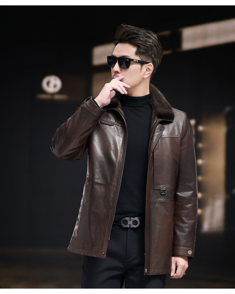 Áo khoác mùa lạnh dành cho nam, kiểu dáng dài vừa phải với phần cổ bẻ. Mặt ngoài làm từ da dê thật, bên trong được lót lớp lông mềm mại giúp giữ ấm rất tốt. Sản phẩm có thiết kế cổ điển, phù hợp cho những người trung niên và lớn tuổi. Mặc kèm áo thun hoặc áo len bên trong để tạo sự thoải mái và ấm áp trong tiết trời giá lạnh. | Tên sản phẩm: Áo Da Nam Chất Liệu Da Bò Kín Cổ Hàng Mùa Xuân Thu Đông - Thời Trang Nam | Mã sản phẩm: B6062 - Giá: 20.350.000đ | Mã nhà sản xuất: HADG-G06Hình ảnh sản phẩm