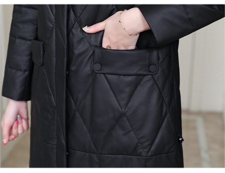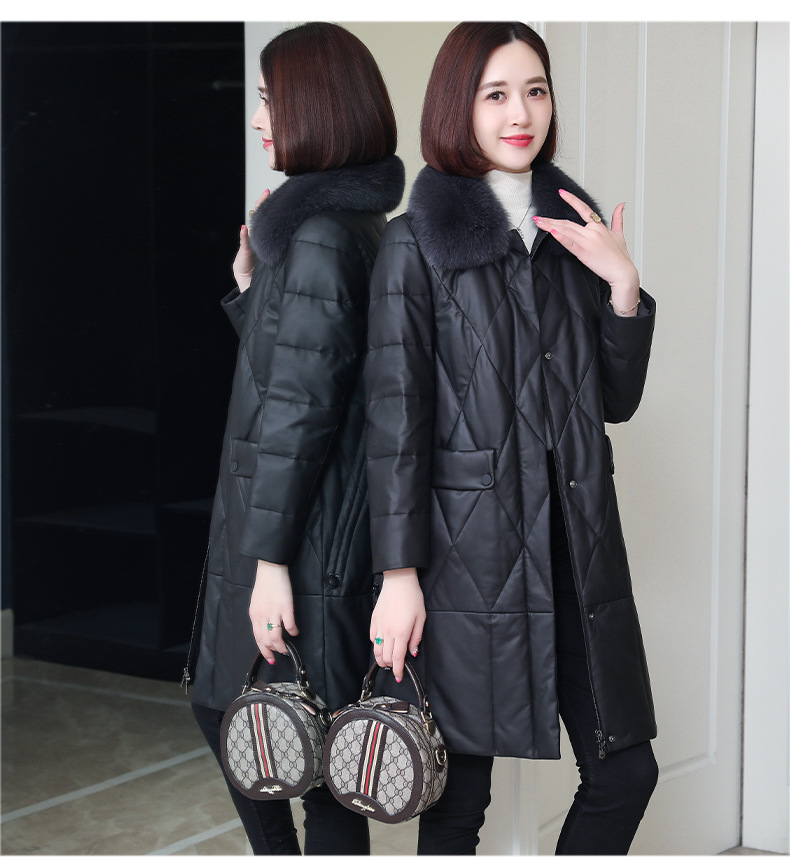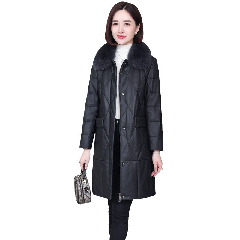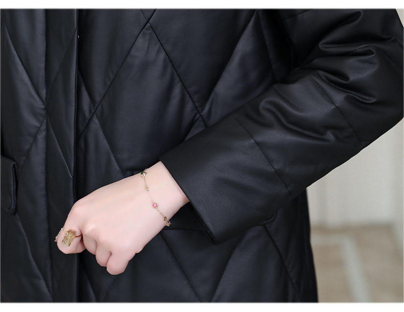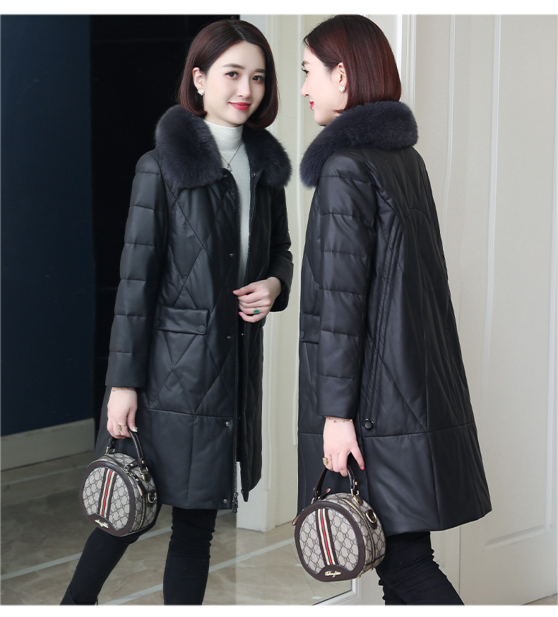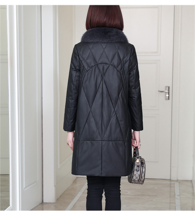 Áo khoác nữ dáng dài, có lớp lót bông giữ ấm và phần cổ viền lông mềm mại. Chất liệu da thật từ động vật mang đến vẻ ngoại hình ấn tượng và độ bền tốt. Kiểu dáng ôn nhẹ giúp tôn dáng người mặc. Sản phẩm phù hợp cho những ngày thời tiết lạnh, dễ dàng phối cùng nhiều loại trang phục khác nhau. Cần giữ sạch và bảo quản nơi khô ráo để sử dụng lâu dài. | Tên sản phẩm: Áo Da Nữ Chất Liệu Da Bò Dày Ấm Hàng Mùa Xuân Thu Đông Trung Niên - Thời Trang Nữ | Mã sản phẩm: B6077 - Giá: 7.310.000đ | Mã nhà sản xuất: HADG-G06Hình ảnh sản phẩm
