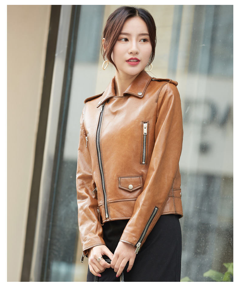 Áo khoác da dành cho nữ, được làm từ chất liệu da cừu mềm mại và bền đẹp. Kiểu dáng ngắn, phong cách phối đồ đơn giản hoặc năng động đều phù hợp. Thiết kế ôm vừa vặn, mang đến vẻ ngoại hình trẻ trung, lịch sự. Sản phẩm thích hợp mặc trong tiết trời mát mẻ. Khi sử dụng, tránh để nơi có nhiệt độ cao và nên dùng các sản phẩm chăm sóc đồ da để giữ lớp bề mặt luôn sáng bóng. | Tên sản phẩm: Áo Da Nữ Chất Liệu Da Bò Hàng Mùa Xuân Thu Đông - Thời Trang Nữ | Mã sản phẩm: B6081 - Giá: 4.260.000đ | Mã nhà sản xuất: HADG-G06Hình ảnh sản phẩm