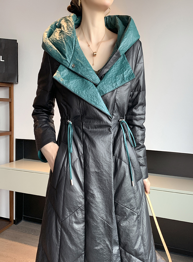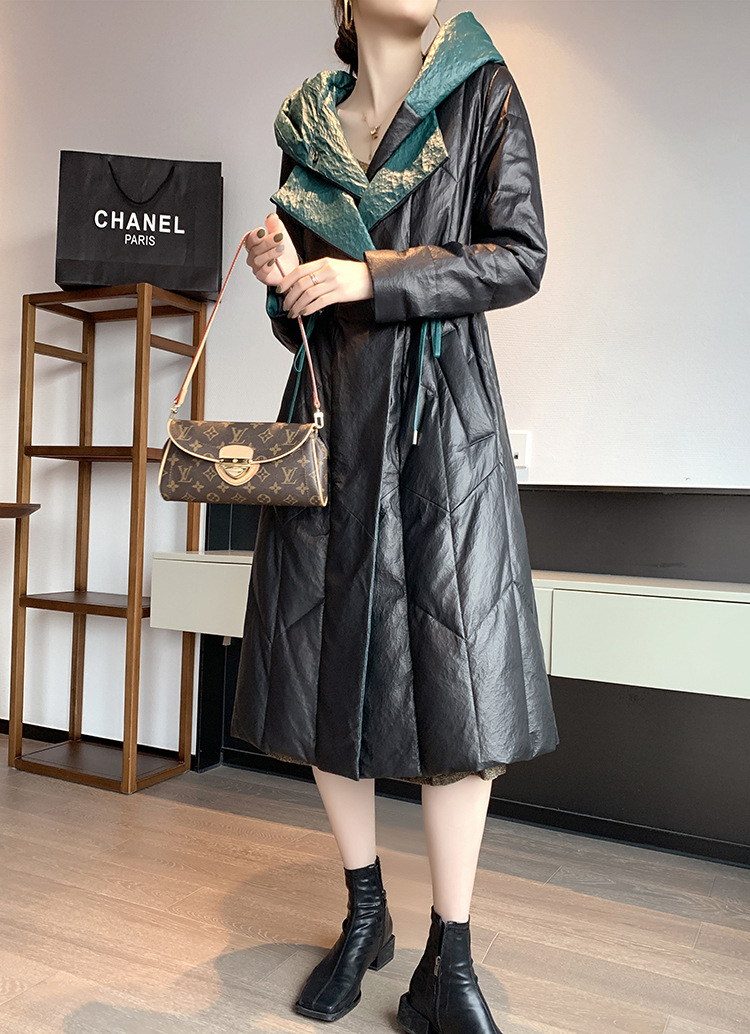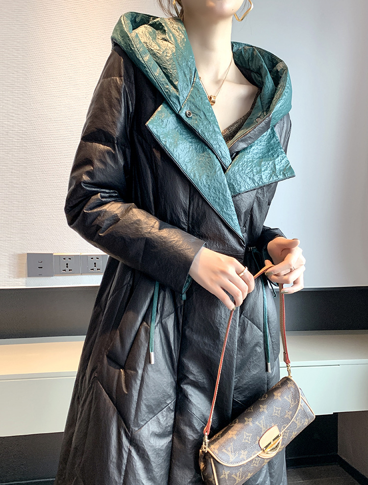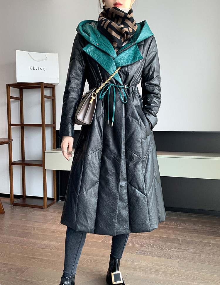 Áo khoác dành cho nữ, kiểu dáng dài có mũ trùm đầu, được may từ chất liệu da thật mềm mại kết hợp với lớp lông vũ bên trong giữ ấm tốt. Thiết kế thời trang, phù hợp mặc trong tiết trời lạnh. Bạn có thể mặc trực tiếp như một chiếc áo khoác ngoài, phối cùng quần jeans và giày thể thao để tạo vẻ năng động, hoặc kết hợp với đầm và bốt để có diện mạo dịu dàng hơn. | Tên sản phẩm: Áo Khoác Nữ Chất Liệu Da Bò Mũ Liền Hàng Mùa Xuân Thu Đông - Thời Trang Nữ | Mã sản phẩm: B6083 - Giá: 9.070.000đ | Mã nhà sản xuất: HADG-G06Hình ảnh sản phẩm