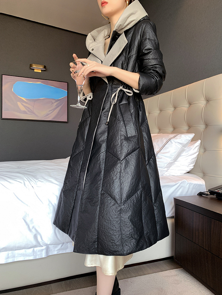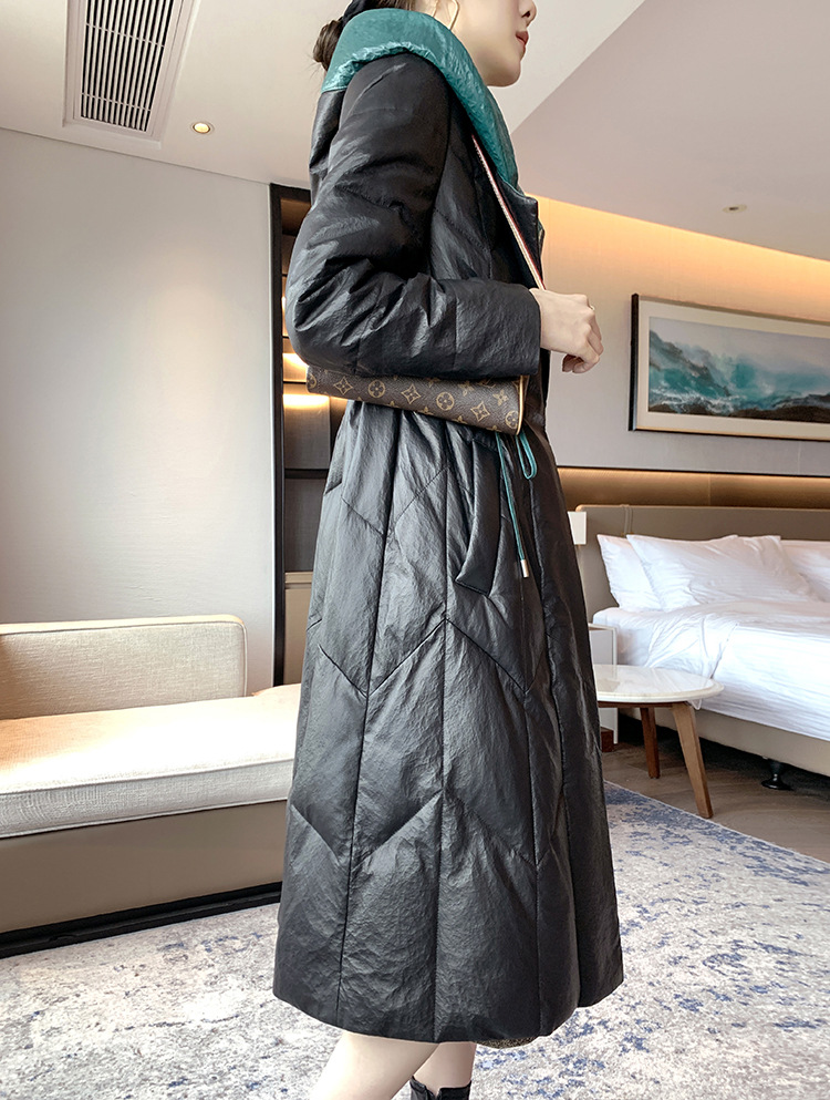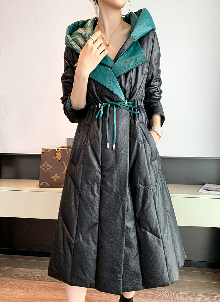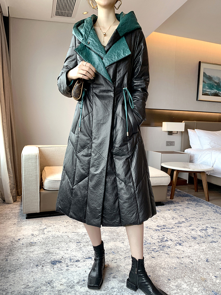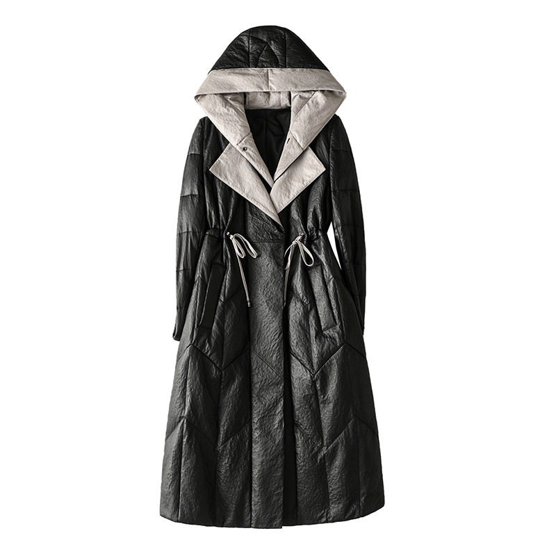 Áo khoác dành cho nữ, kiểu dáng dài có mũ trùm đầu, được may từ chất liệu da thật mềm mại kết hợp với lớp lông vũ bên trong giữ ấm tốt. Thiết kế thời trang, phù hợp mặc trong tiết trời lạnh. Bạn có thể mặc trực tiếp như một chiếc áo khoác ngoài, phối cùng quần jeans và giày thể thao để tạo vẻ năng động, hoặc kết hợp với đầm và bốt để có diện mạo dịu dàng hơn. | Tên sản phẩm: Áo Khoác Nữ Chất Liệu Da Bò Mũ Liền Hàng Mùa Xuân Thu Đông - Thời Trang Nữ | Mã sản phẩm: B6083 - Giá: 9.070.000đ | Mã nhà sản xuất: HADG-G06Hình ảnh sản phẩm