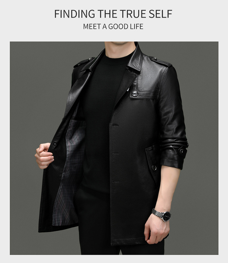 Áo khoác da dành cho nam, thiết kế dáng dài phù hợp mặc vào mùa thu, đông và xuân. Kiểu dáng phối hợp giữa đi làm và đi chơi, cổ áo kiểu veston lịch sự cùng hàng khuy kép. Chất liệu da mềm mại, mang đến sự ấm áp và thoải mái khi mặc. Dễ dàng phối cùng quần âu và áo sơ mi trong nhiều hoàn cảnh khác nhau. | Tên sản phẩm: Áo Da Nam Vest Hàng Mùa Xuân Thu Đông - Thời Trang Nam | Mã sản phẩm: B6174 - Giá: 1.730.000đ | Mã nhà sản xuất: SUDAP-G05Hình ảnh sản phẩm