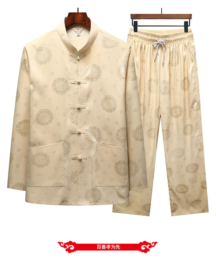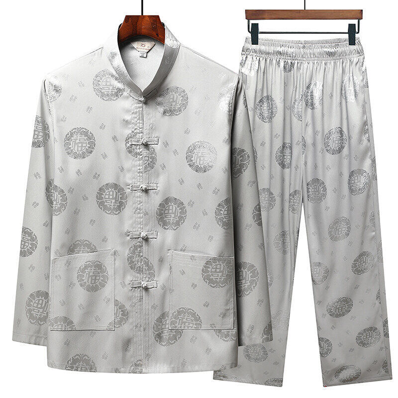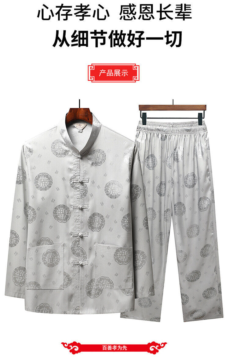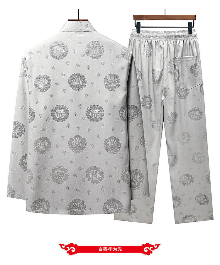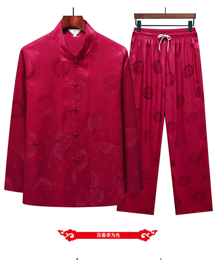 Bộ trang phục dành cho các bậc cha chú lớn tuổi, với áo sơ mi dài tay và quần dài đồng bộ. Chất vải lụa mát mẻ, nhẹ nhàng, rất phù hợp mặc trong tiết trời xuân thu ấm áp. Kiểu dáng mang nét truyền thống, đường nét trang nhã. Sản phẩm thích hợp để mặc trong những dịp sum họp gia đình, sinh nhật hay các sự kiện ý nghĩa. Có thể giặt tay nhẹ nhàng và phơi ở nơi râm mát. | Tên sản phẩm: Đồ Bộ Nam Dài Tay Hàng Mùa Xuân Thu Đông Trung Niên - Thời Trang Nam | Mã sản phẩm: B6240 - Giá: 780.000đ | Mã nhà sản xuất: SUDAP-G02Hình ảnh sản phẩm