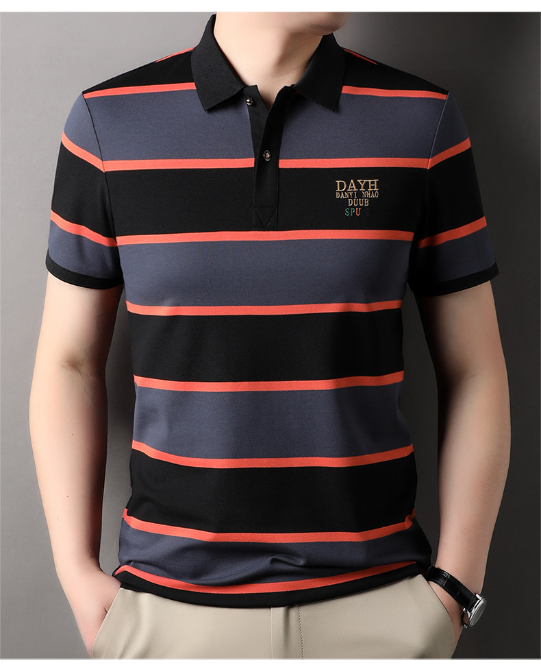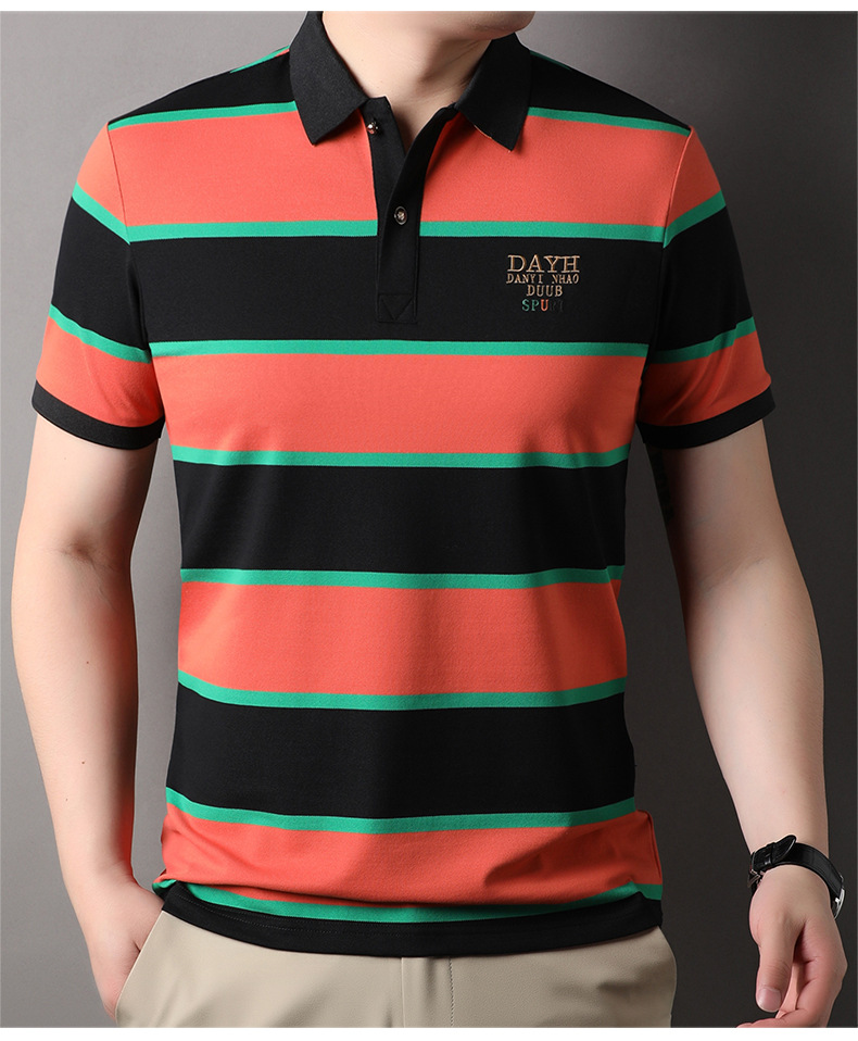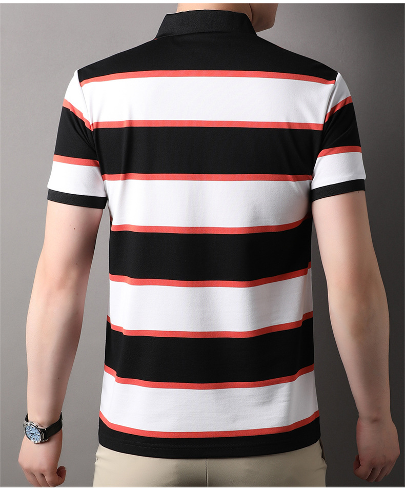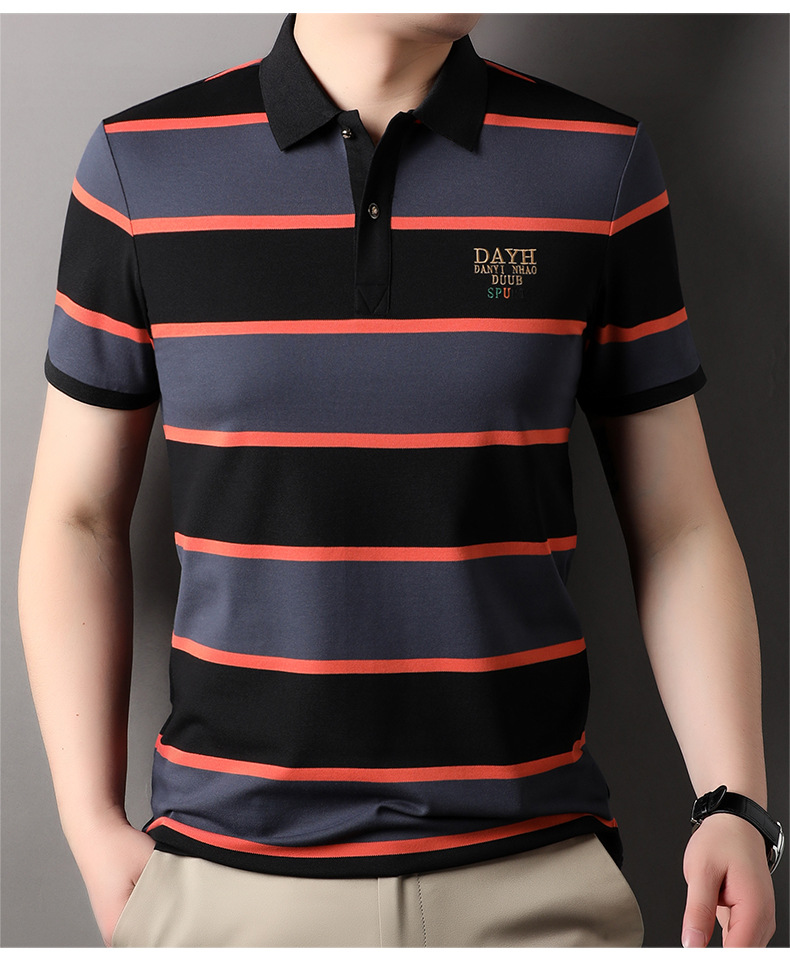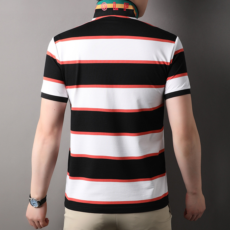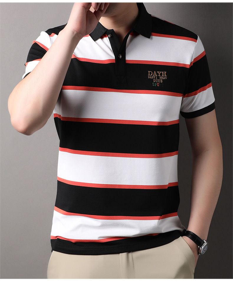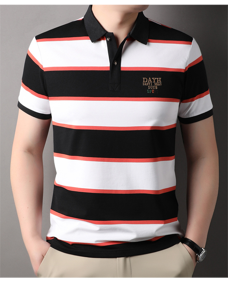 Áo thun cổ bẻ dành cho nam, kiểu dáng năng động với các đường sọc trang nhã. Sản phẩm có tay ngắn, thiết kế phù hợp cho mùa hè. Chất vải mềm mại và thoáng khí, giúp người mặc cảm thấy dễ chịu trong những ngày nóng. Bạn có thể mặc đi làm, đi chơi hay dạo phố đều phù hợp. Dễ dàng phối cùng quần tây hoặc quần short để tạo nên vẻ ngoài lịch sự và thoải mái. | Tên sản phẩm: Áo Thun Nam Ngắn Tay Kín Cổ Hàng Mùa Hè Phong Cách Trẻ Trung - Thời Trang Nam | Mã sản phẩm: B6241 - Giá: 830.000đ | Mã nhà sản xuất: JIDG-G03Hình ảnh sản phẩm