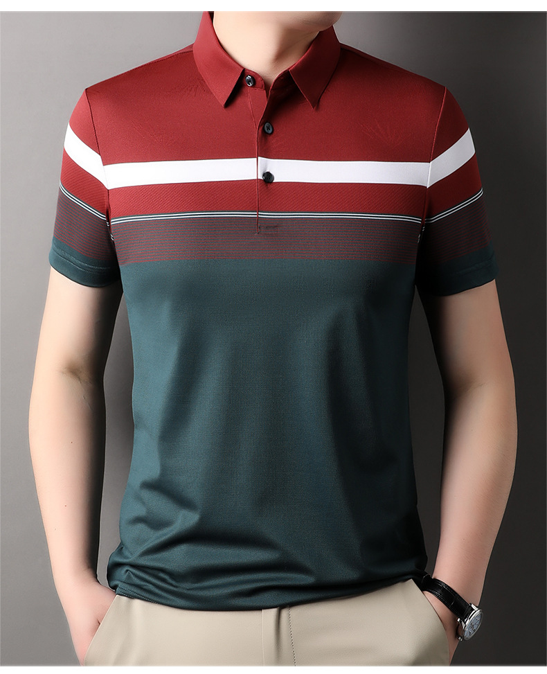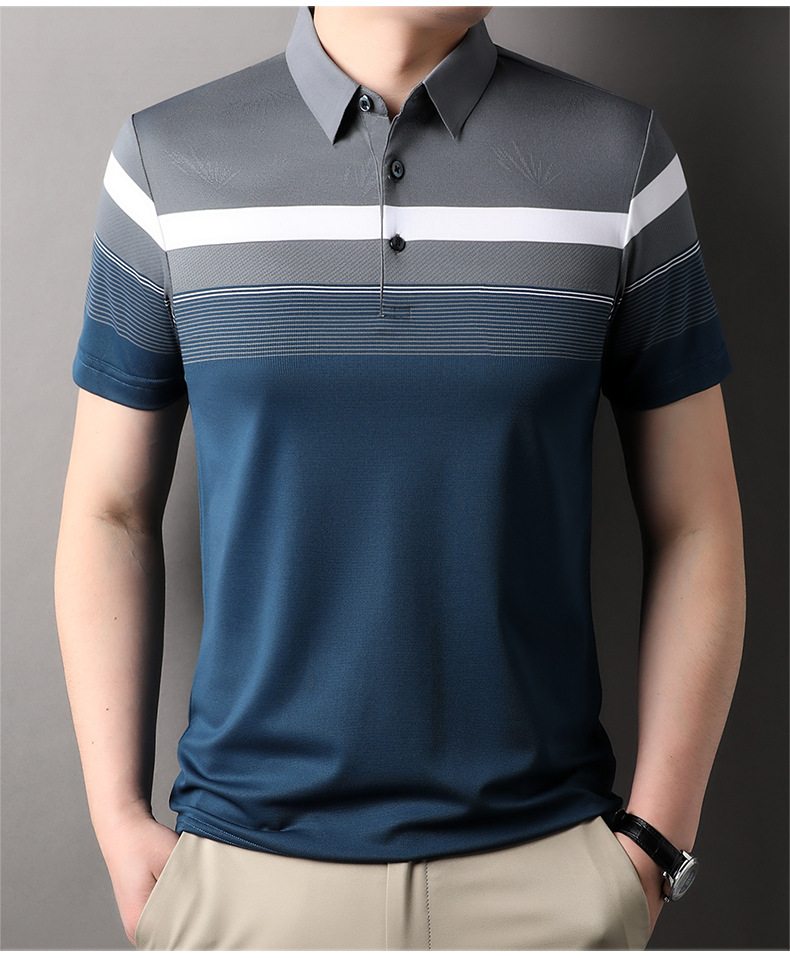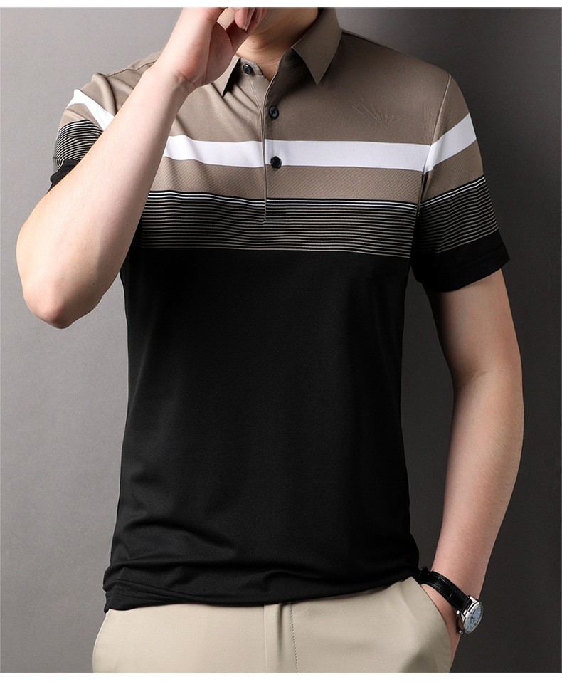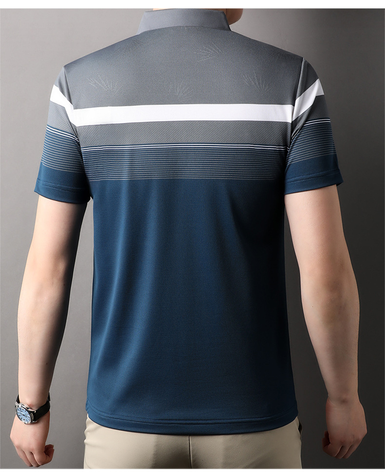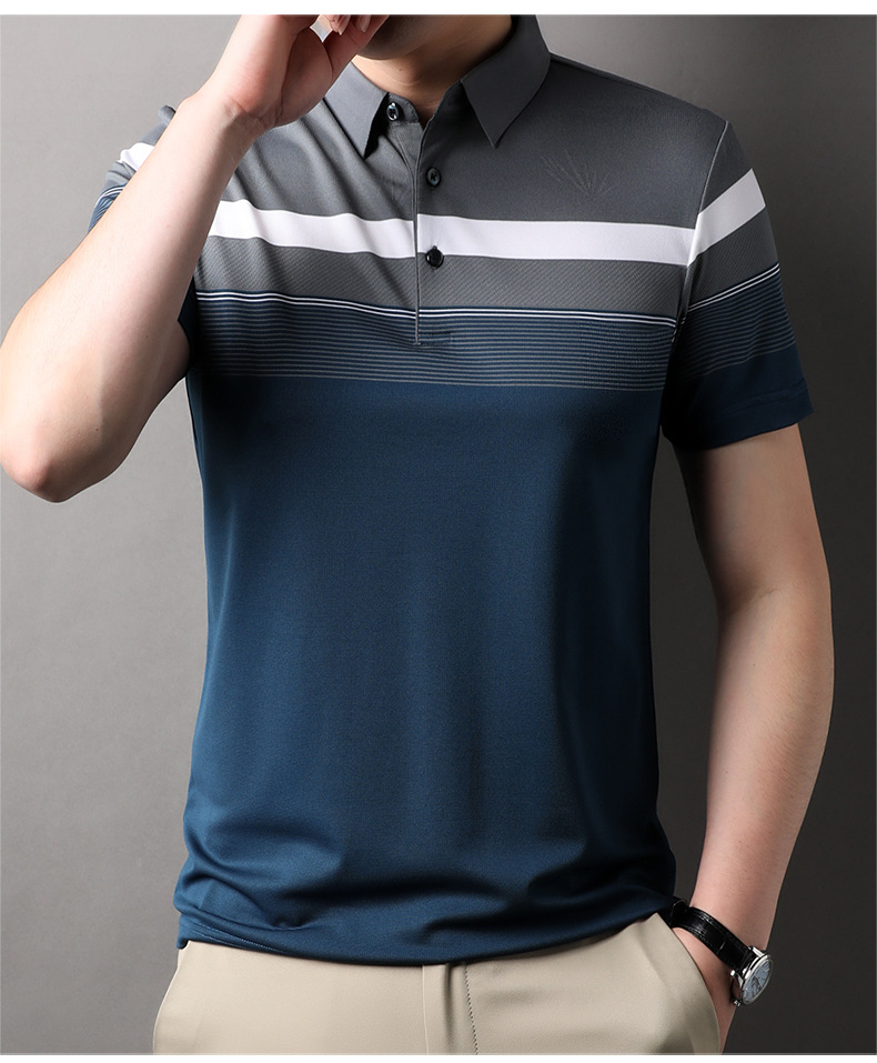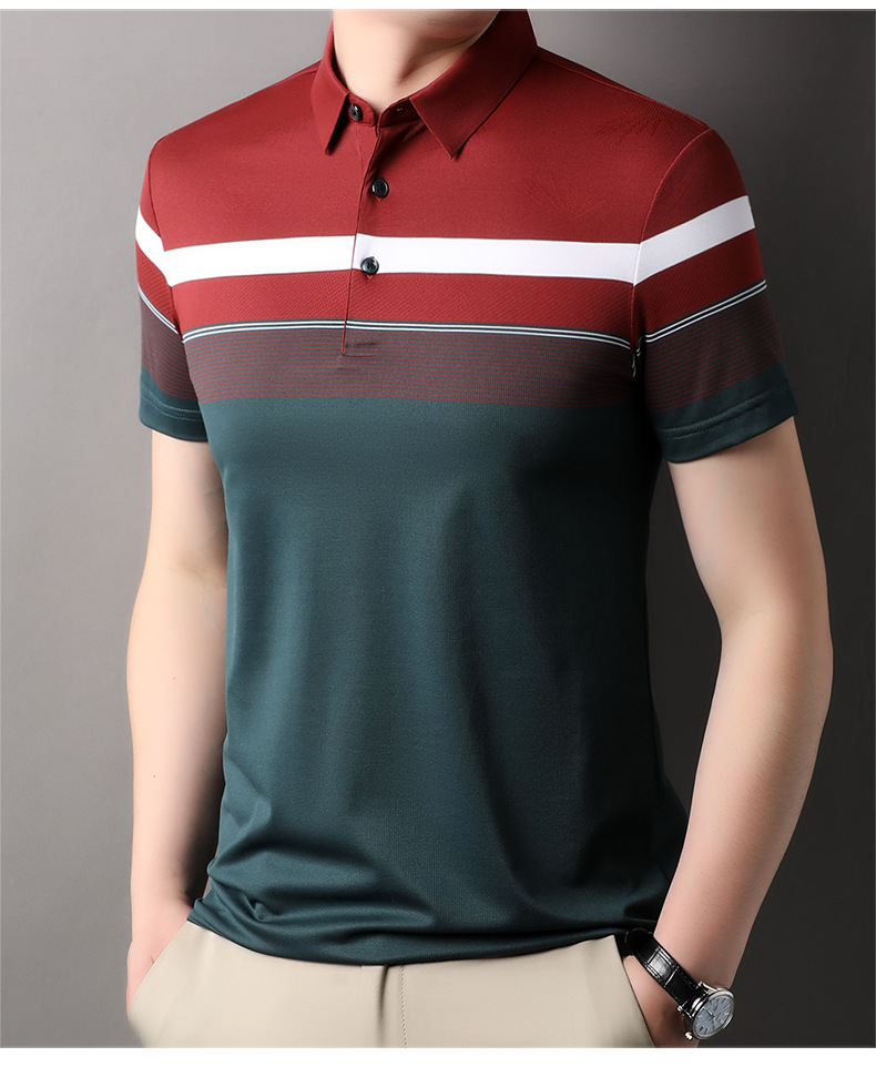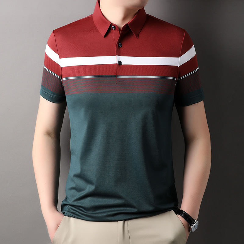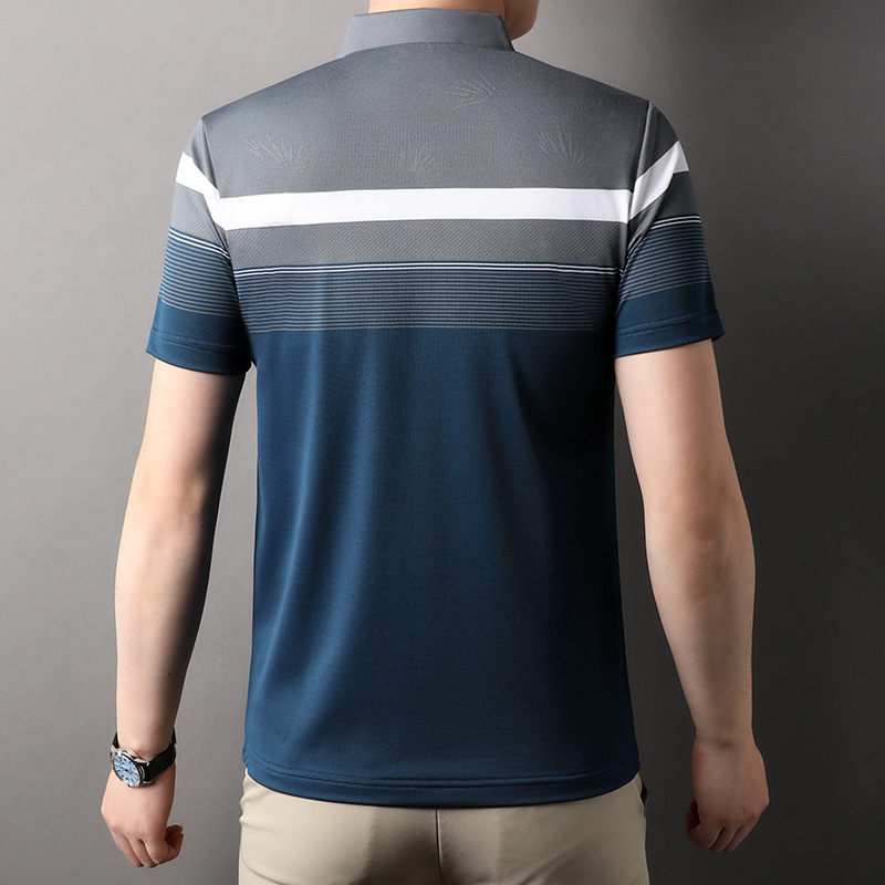 Áo thun ngắn tay dành cho nam với thiết kế cổ bẻ, mang đến sự thoải mái và năng động. Sản phẩm có các đường sọc cách điệu, tạo điểm nhấn trẻ trung, phù hợp cho mùa hè. Chất vải mềm mại, thấm hút mồ hôi tốt giúp bạn dễ chịu suốt ngày dài. Bạn có thể mặc đi làm, đi chơi hay dạo phố đều tiện lợi. Chỉ cần giặt nhẹ và phơi khô tự nhiên để giữ áo bền đẹp theo thời gian. | Tên sản phẩm: Áo Thun Nam Ngắn Tay Kín Cổ Hàng Mùa Hè Phong Cách Trẻ Trung - Thời Trang Nam | Mã sản phẩm: B6247 - Giá: 840.000đ | Mã nhà sản xuất: JIDG-G03Hình ảnh sản phẩm