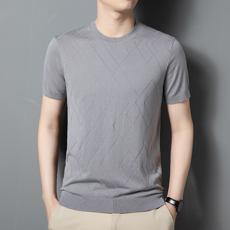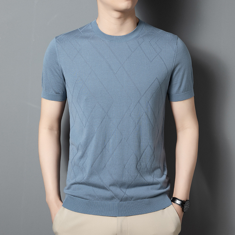 Áo ngắn tay nam dệt kim từ tơ tằm thiên nhiên, kiểu dáng cổ tròn phù hợp cho mùa hè. Chất vải mềm mại, thoáng mát và thấm hút mồ hôi tốt, mang lại cảm giác dễ chịu khi mặc. Họa tiết dệt nổi tinh tế tăng thêm điểm nhấn cho áo. Sản phẩm dễ phối cùng nhiều loại trang phục khác nhau, có thể giặt tay hoặc máy với chế độ nhẹ, bảo quản nơi khô ráo. | Tên sản phẩm: Áo Thun Nam Chất Liệu Lụa Tơ Tằm Áo Len Ngắn Tay Họa Tiết Hoa Hàng Mùa Hè Phong Cách Trẻ Trung - Thời Trang Nam | Mã sản phẩm: B6253 - Giá: 1.140.000đ | Mã nhà sản xuất: JIDG-G04Hình ảnh sản phẩm