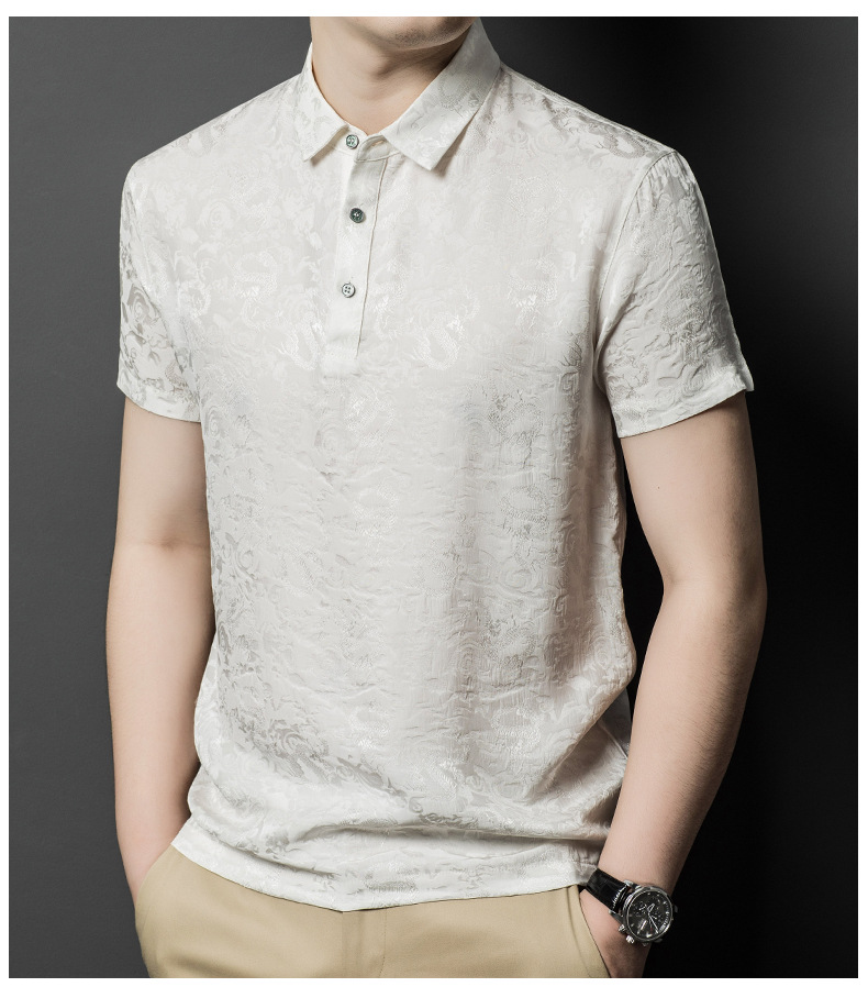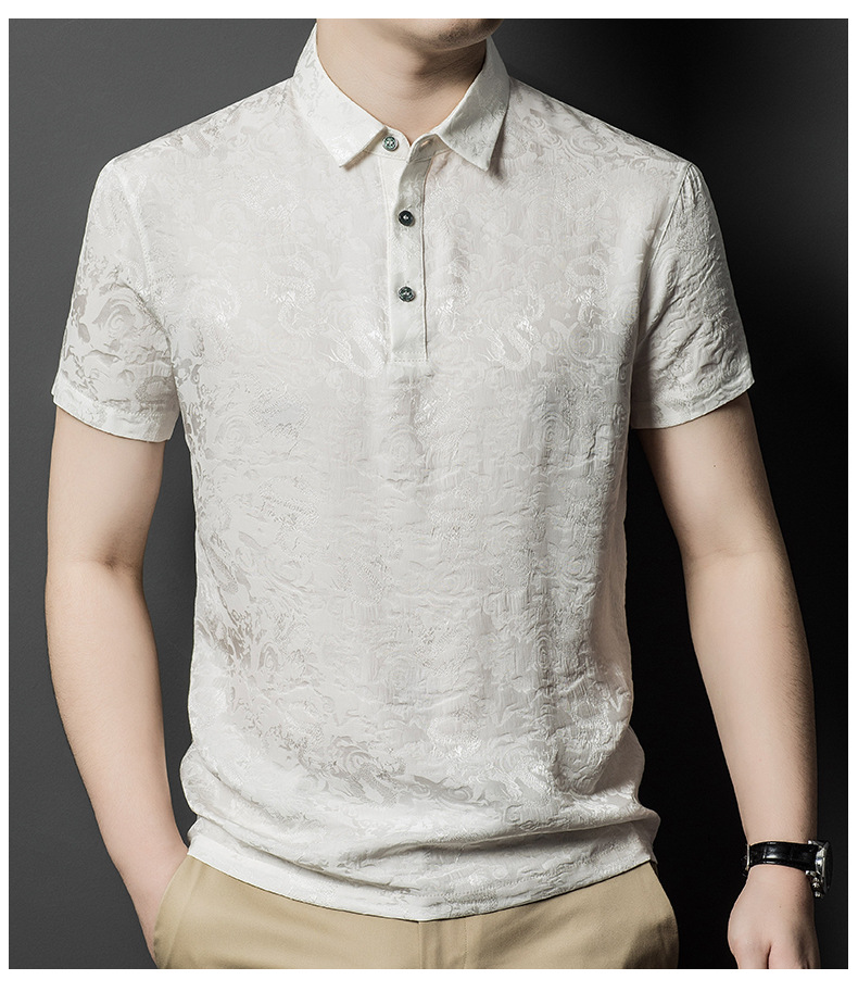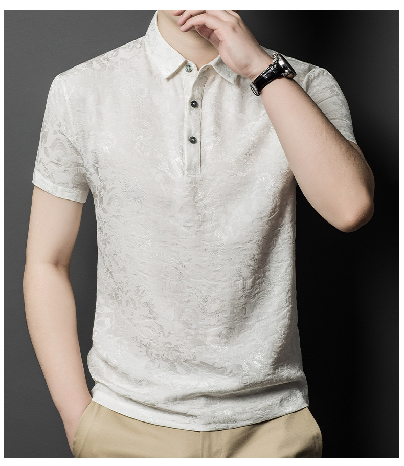 Áo thun ngắn tay dành cho mùa hè, được dệt từ chất liệu tơ tằm mềm mại và thoáng mát. Trên nền vải, các họa tiết được dệt nổi một cách tinh tế, tạo nên vẻ đẹp riêng biệt. Kiểu dáng trẻ trung, phù hợp cho nhiều dịp sinh hoạt thường ngày. Sản phẩm dễ dàng phối cùng quần short hoặc quần âu. Giặt nhẹ nhàng bằng nước lạnh và phơi trong bóng râm để giữ form áo và chất vải được bền lâu. | Tên sản phẩm: Áo Thun Nam Chất Liệu Lụa Tơ Tằm Ngắn Tay Họa Tiết Hoa Hàng Mùa Hè Phong Cách Trẻ Trung - Thời Trang Nam | Mã sản phẩm: B6260 - Giá: 2.650.000đ | Mã nhà sản xuất: JIDG-G06Hình ảnh sản phẩm