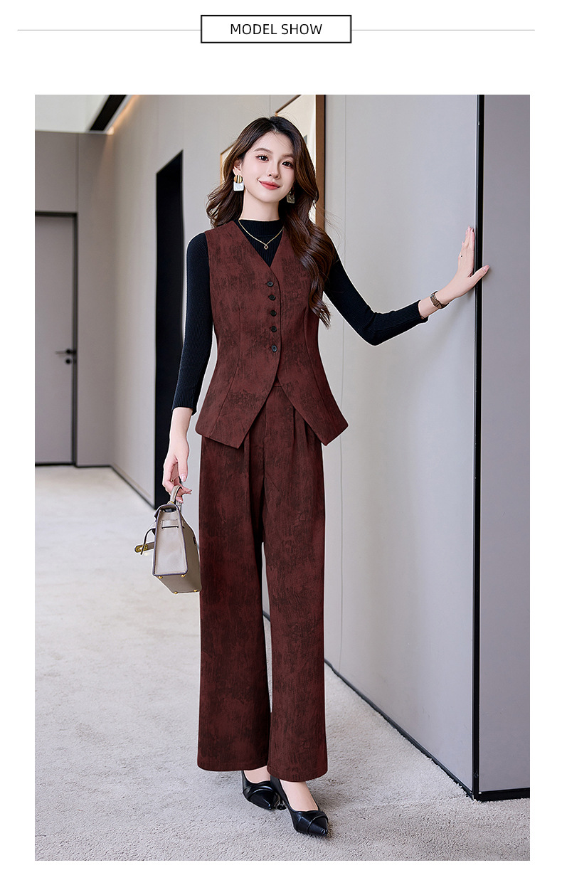 Bộ trang phục hai mảnh này mang đến sự thoải mái và phong cách cho những ngày thu. Áo dạng vest không tay ôm vừa vặn, kết hợp cùng chiếc quần ống rộng tạo nên vẻ ngoại hình cân đối, giúp tôn lên những đường nét cơ thể. Chất vải mềm mại cho cảm giác dễ chịu khi mặc. Bạn có thể phối bộ này đi làm, đi chơi hoặc dạo phố đều phù hợp. Mix cùng áo thun bên trong và giày thể thao để có vẻ ngoại hình năng động. | Tên sản phẩm: Đồ Bộ Nữ Dáng Ôm Cả Bộ 2 Món Hàng Mùa Xuân Thu Đông - Thời Trang Nữ | Mã sản phẩm: B6311 - Giá: 1.830.000đ | Mã nhà sản xuất: HADG-G05Hình ảnh sản phẩm