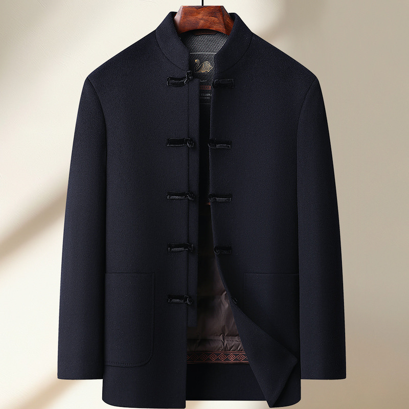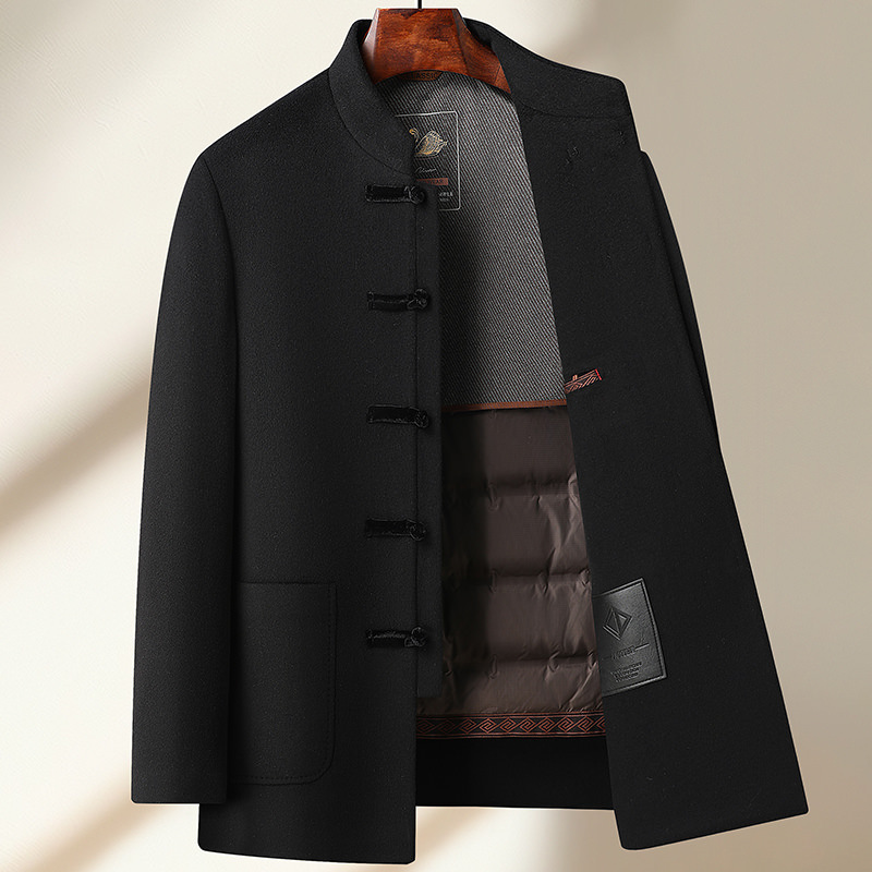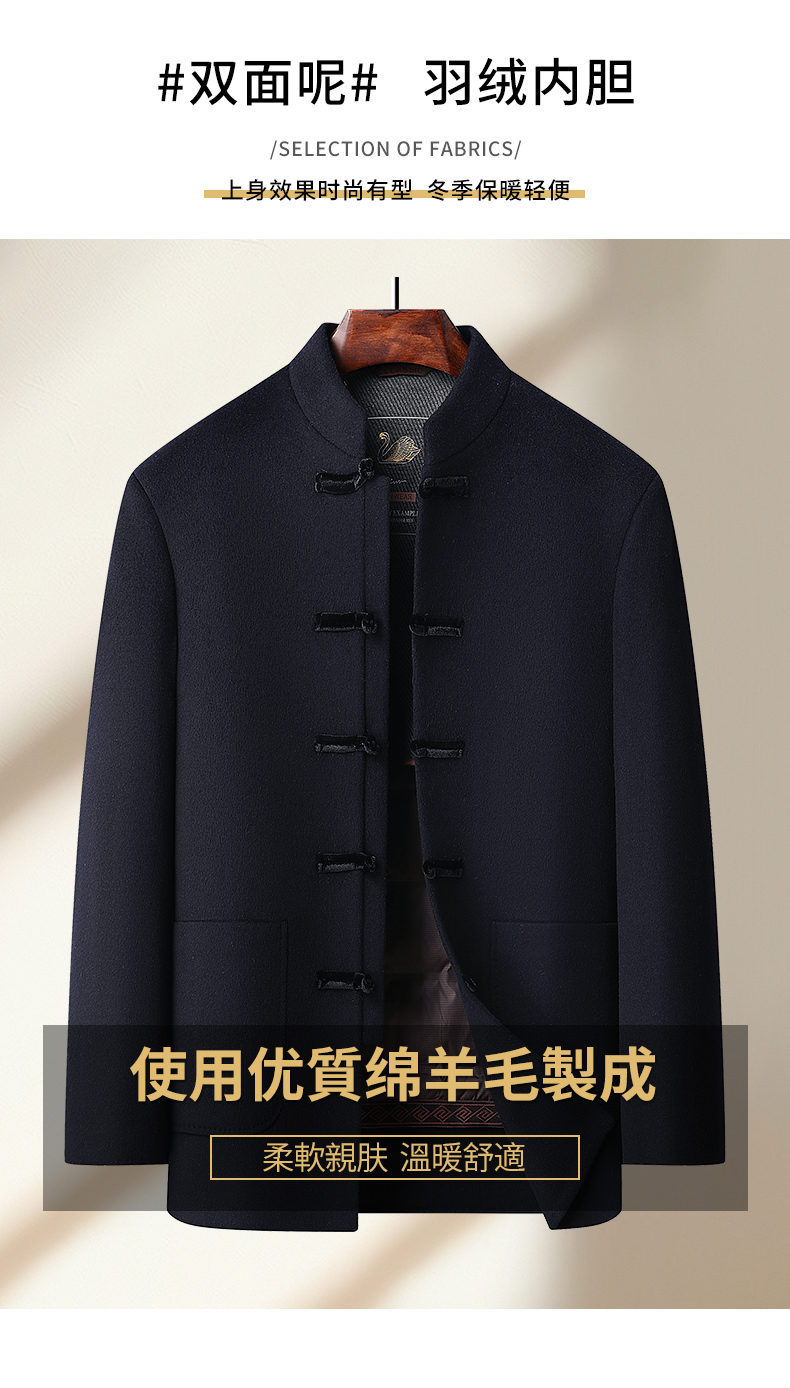 Áo khoác nam thiết kế cổ đứng, có khuy cài dạng vòng. Chất liệu chính là dạ len hai mặt ấm áp, bên trong có thể tháo rời để lộ lớp áo lông vũ giữ nhiệt. Kiểu dáng phù hợp cho công sở hoặc dự các sự kiện vào mùa thu đông. Khi sử dụng, chỉ cần cài khuy vòng là hoàn thiện phong cách. Sản phẩm kết hợp hài hòa giữa nét truyền thống và hiện đại. | Tên sản phẩm: Áo Khoác Nam Hàng Mùa Xuân Thu Đông - Thời Trang Nam | Mã sản phẩm: B6329 - Giá: 3.010.000đ | Mã nhà sản xuất: SUDAP-G06Hình ảnh sản phẩm