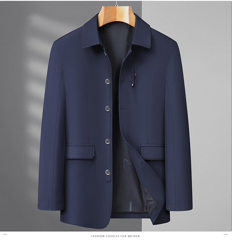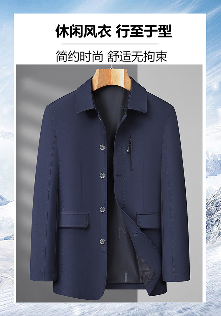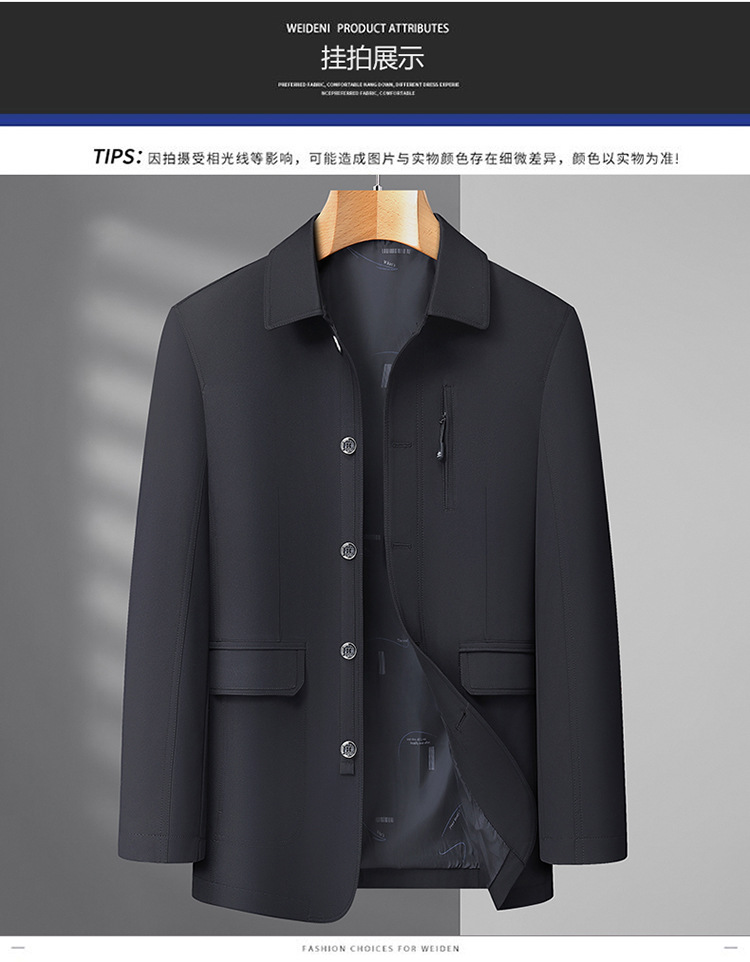 Áo khoác dành cho các bậc cha, người trung niên và lớn tuổi. Sản phẩm có cổ bẻ và cài bằng cúc, kiểu dáng lịch sự phù hợp cho nam giới. Chất vải nhẹ, mặc thoải mái trong tiết trời mùa xuân và mùa thu. Có thể mặc như áo khoác mỏng hoặc áo gió tùy thích. Phù hợp khi đi làm, dạo phố hay các sinh hoạt thường ngày. Mặc kèm với áo thun bên trong để tạo sự gọn gàng. | Tên sản phẩm: Áo Khoác Nam Kín Cổ Hàng Mùa Xuân Thu Đông Trung Niên - Thời Trang Nam | Mã sản phẩm: B6352 - Giá: 940.000đ | Mã nhà sản xuất: SUDAP-G03Hình ảnh sản phẩm