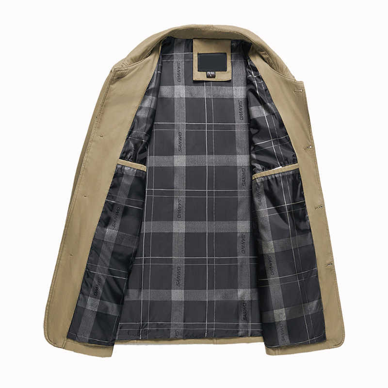 Áo khoác nam dành cho các bậc cha, anh lớn tuổi, thiết kế kiểu dáng cổ bẻ lịch sự. Sản phẩm được làm từ chất liệu bông mềm mại, thoáng mát, rất phù hợp mặc trong tiết trời xuân hoặc thu. Áo có hàng cúc cài tiện lợi phía trước, dễ dàng mặc vào hoặc cởi ra. Kiểu dáng kết hợp hài hòa giữa nét đứng đắn trong công việc và sự thoải mái khi dùng hằng ngày. Mặc kèm với quần âu hoặc quần vải thông thường đều phù hợp. | Tên sản phẩm: Áo Khoác Nam Chất Liệu Vải Bông Kín Cổ Hàng Mùa Xuân Thu Đông Trung Niên - Thời Trang Nam | Mã sản phẩm: B6386 - Giá: 940.000đ | Mã nhà sản xuất: SUDAP-G03Hình ảnh sản phẩm
