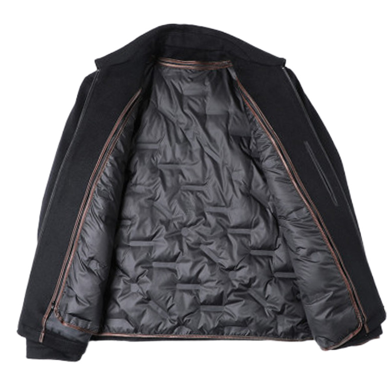 Áo khoác nam thiết kế hai mặt, có thể mặc được cả hai chiều. Bên ngoài là lớp vải dệt dày dặn, bên trong có thể gắn thêm áo phao mỏng để giữ ấm vào mùa thu đông. Cổ áo bẻ, kiểu dáng lịch sự phù hợp cho công sở hoặc dùng hằng ngày. Mặc trực tiếp hoặc kết hợp với áo phao bên trong khi trời lạnh. Chất liệu tổng hợp ấm áp, giữ phom áo tốt. | Tên sản phẩm: Áo Khoác Nam Kín Cổ Hàng Mùa Xuân Thu Đông Trung Niên - Thời Trang Nam | Mã sản phẩm: B6392 - Giá: 2.120.000đ | Mã nhà sản xuất: SUDAP-G05Hình ảnh sản phẩm
