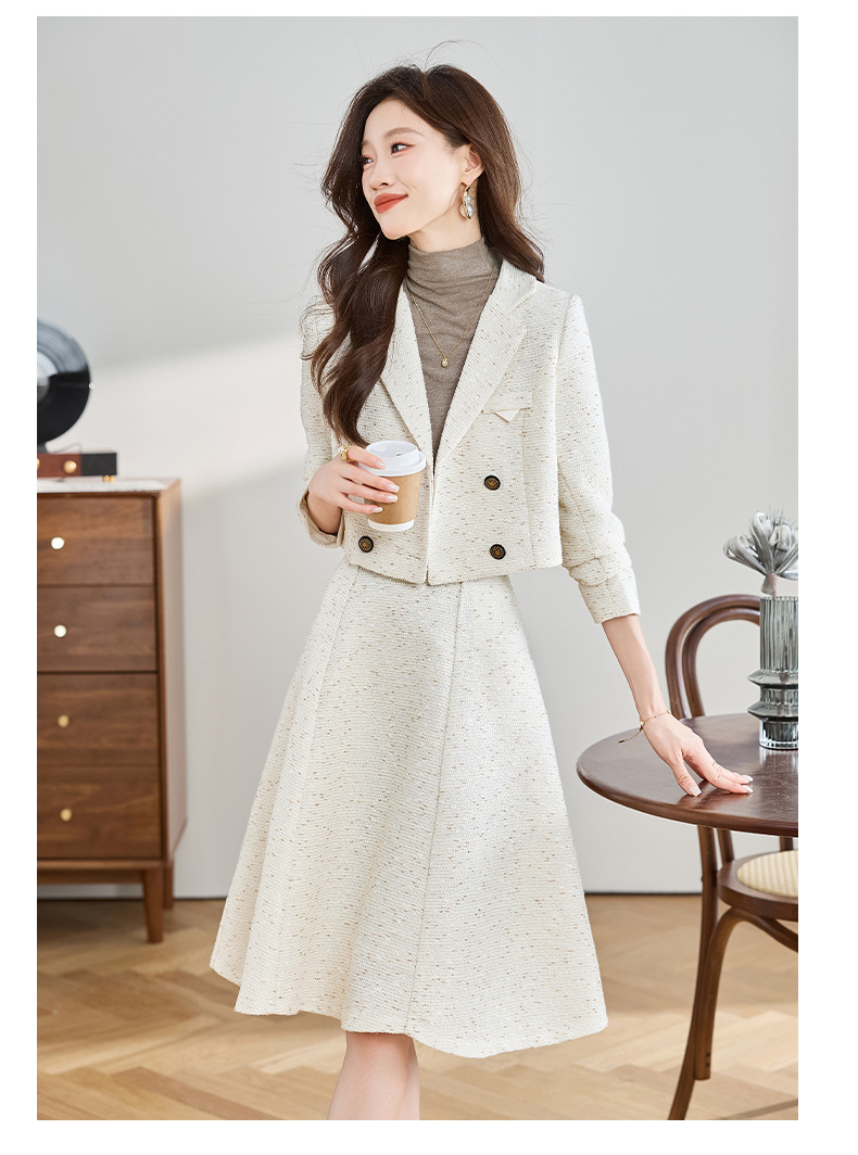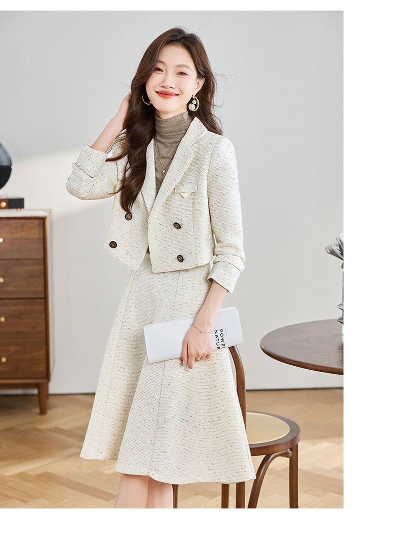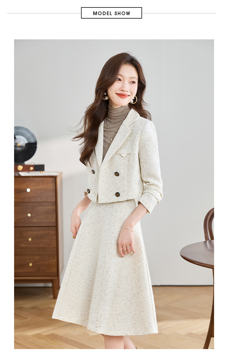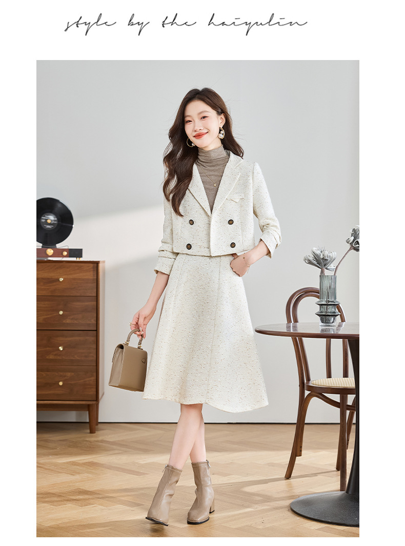 Bộ trang phục hai mảnh này gồm áo khoác kiểu và chân váy ngắn, mang đến vẻ đẹp nhẹ nhàng, thanh lịch. Chất vải dày dặn, giữ ấm tốt, phù hợp cho thời tiết se lạnh. Áo khoác thiết kế cổ điển, dễ dàng phối cùng nhiều kiểu áo bên trong. Chân váy xòe nhẹ, tôn dáng người mặc. Có thể mặc đi làm, đi chơi hoặc dự các buổi gặp mặt. Giặt nhẹ nhàng với nước lạnh và phơi khô tự nhiên để giữ dáng áo. | Tên sản phẩm: Áo Vest Nữ Vest Cả Bộ 2 Món Hàng Mùa Xuân Thu Đông - Thời Trang Nữ | Mã sản phẩm: B6403 - Giá: 2.070.000đ | Mã nhà sản xuất: HADG-G05Hình ảnh sản phẩm