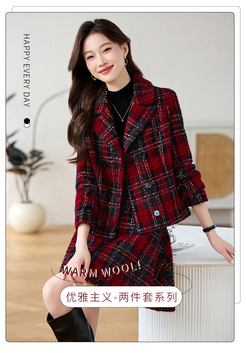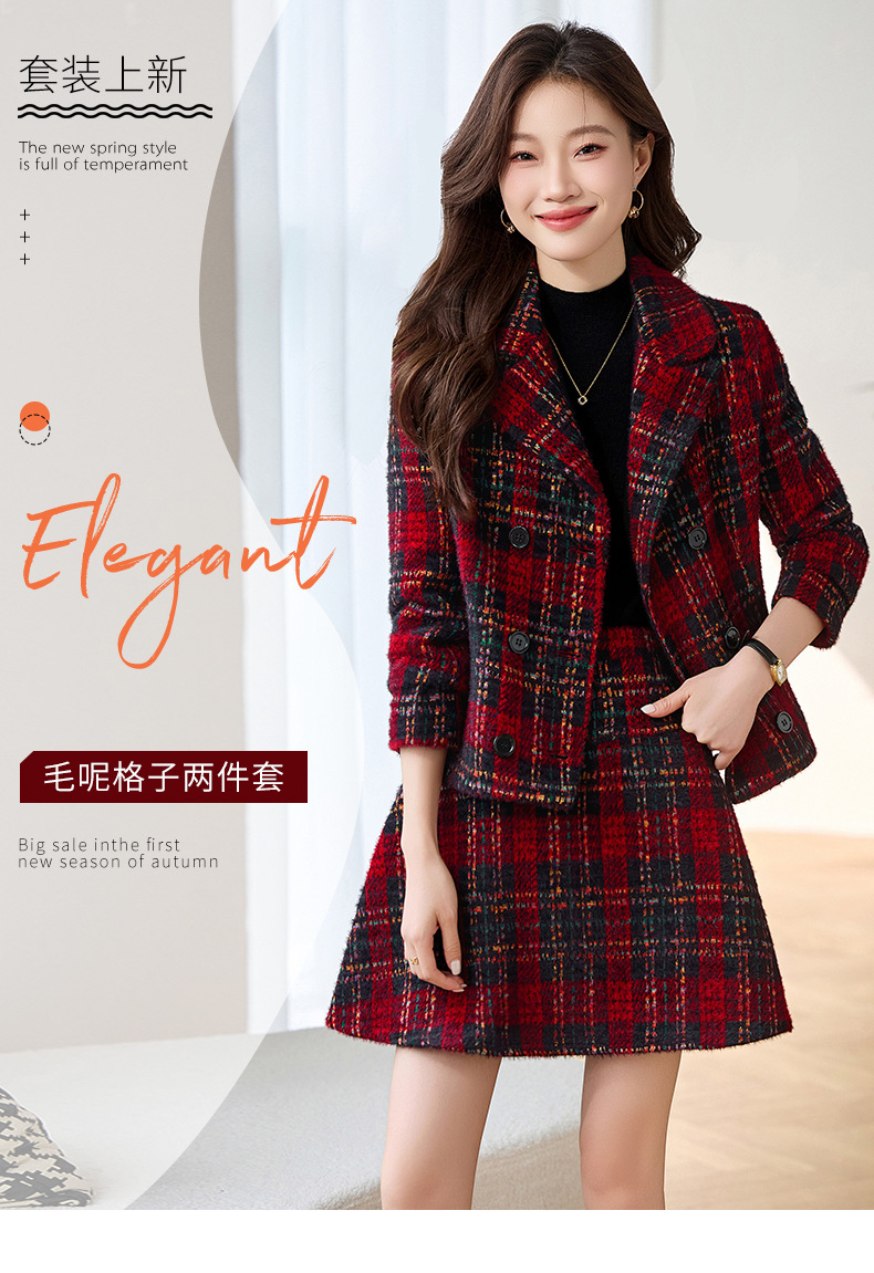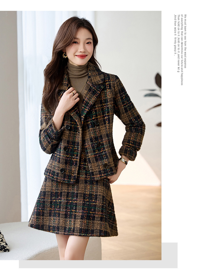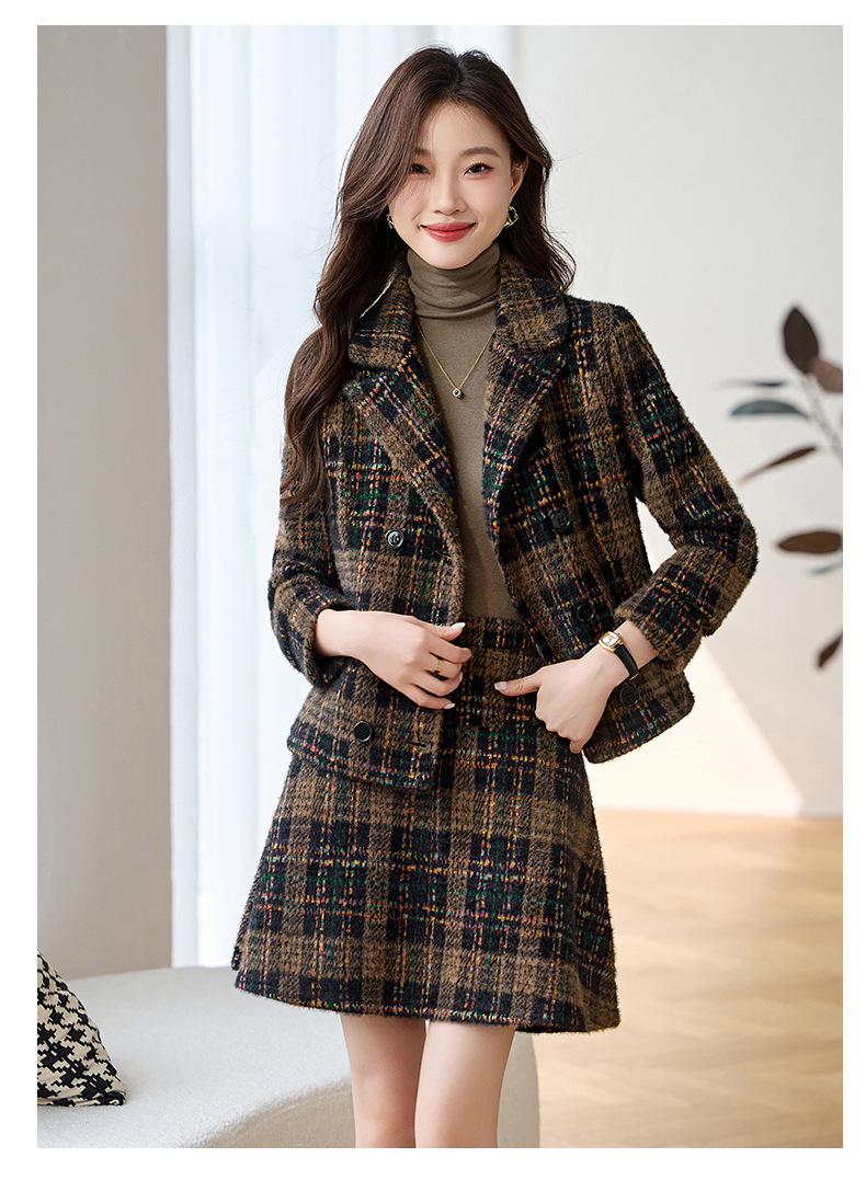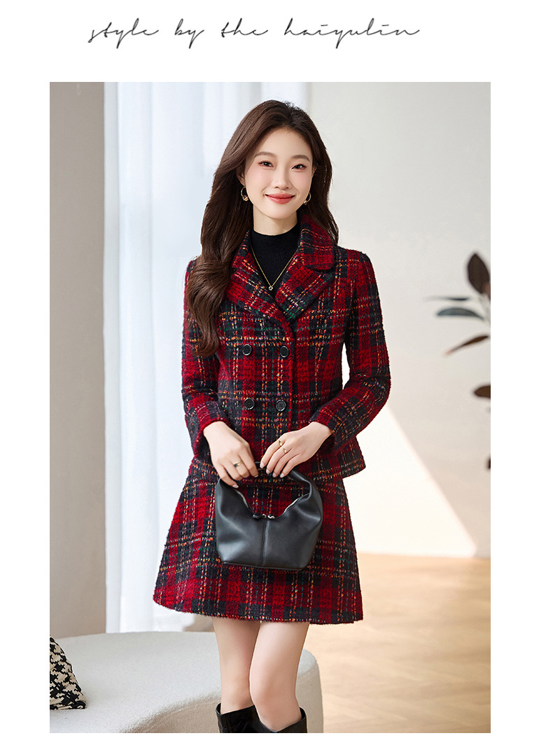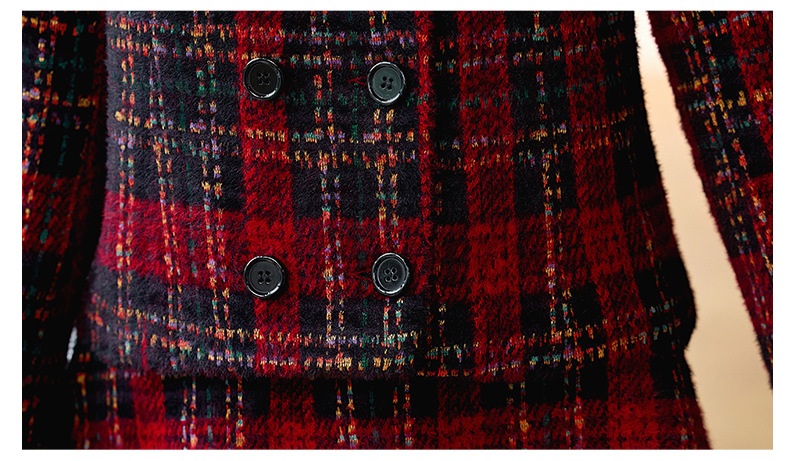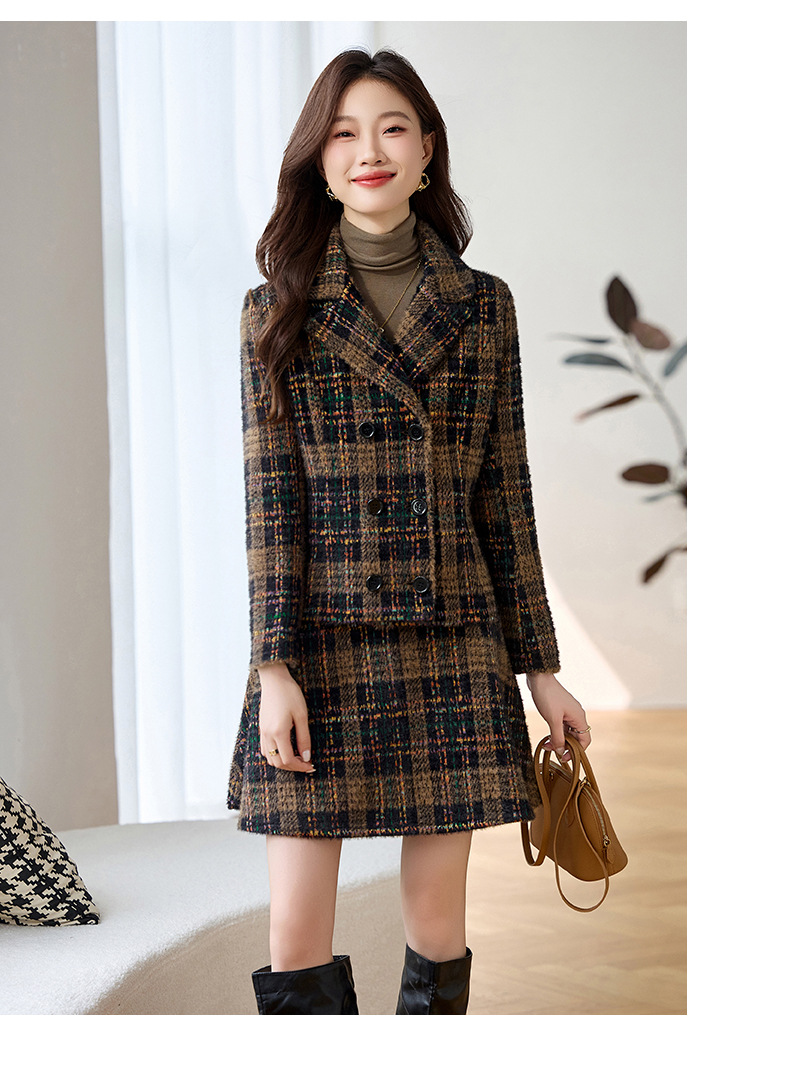 Bộ trang phục hai mảnh này có họa tiết kẻ ô cổ điển, phù hợp cho mùa thu đông. Áo khoác dáng dài có cổ bẻ, hàng cúc đôi và được lót bông ấm áp, đi kèm là chiếc nơ thắt eo tạo điểm nhấn. Váy xòe ngang gối mang đến vẻ nữ tính. Chất vải dày dặn giữ nhiệt tốt. Có thể mặc nguyên bộ để đồng bộ, hoặc phối áo với quần jeans và váy với áo len để đa dạng phong cách. | Tên sản phẩm: Áo Khoác Nữ Chất Liệu Vải Bông Cả Bộ 2 Món Kẻ Caro Kín Cổ Hàng Mùa Xuân Thu Đông - Thời Trang Nữ | Mã sản phẩm: B6412 - Giá: 2.130.000đ | Mã nhà sản xuất: HADG-G05Hình ảnh sản phẩm
