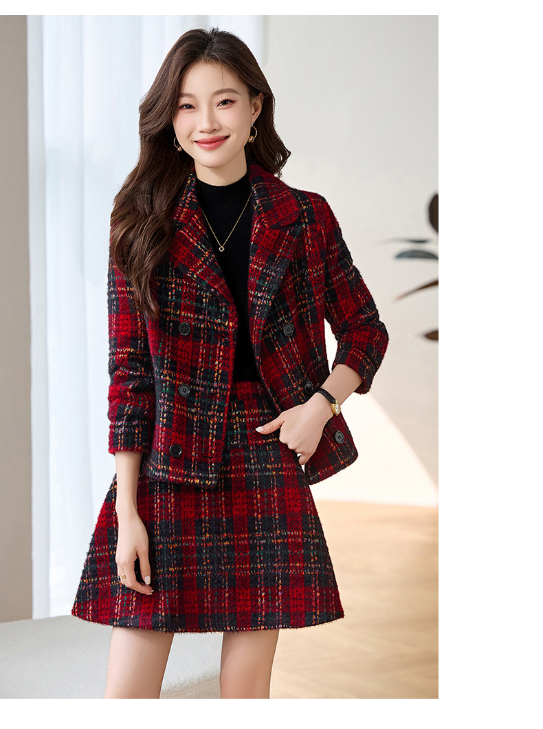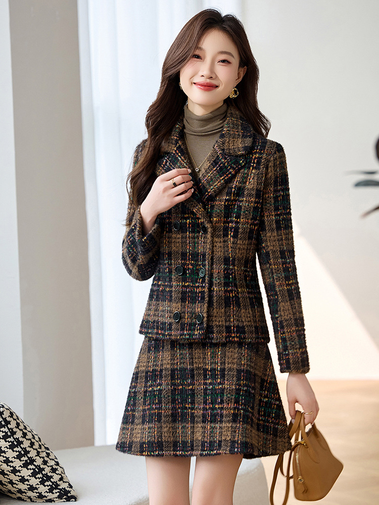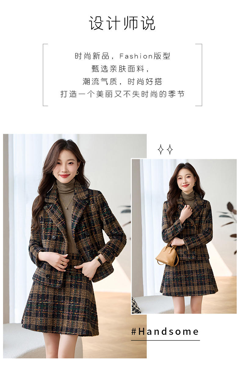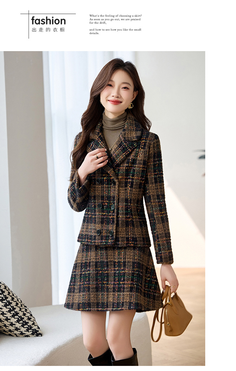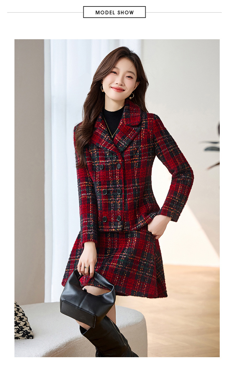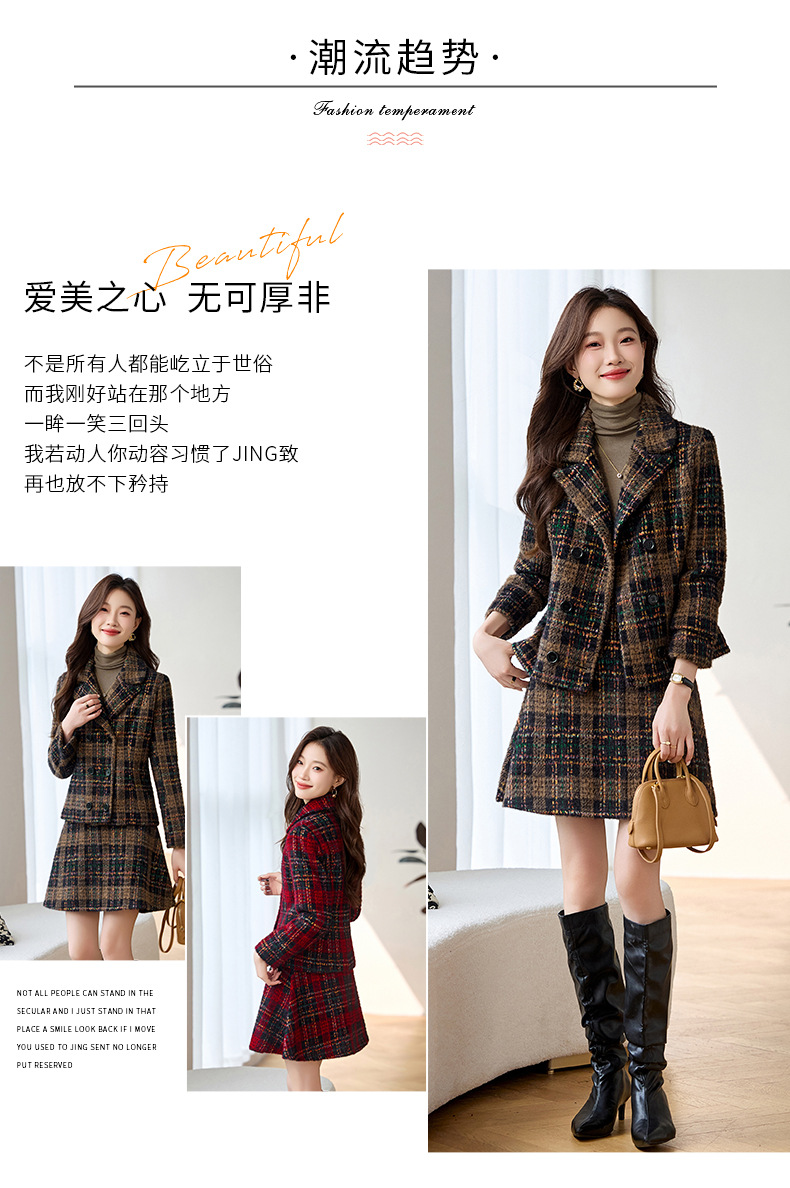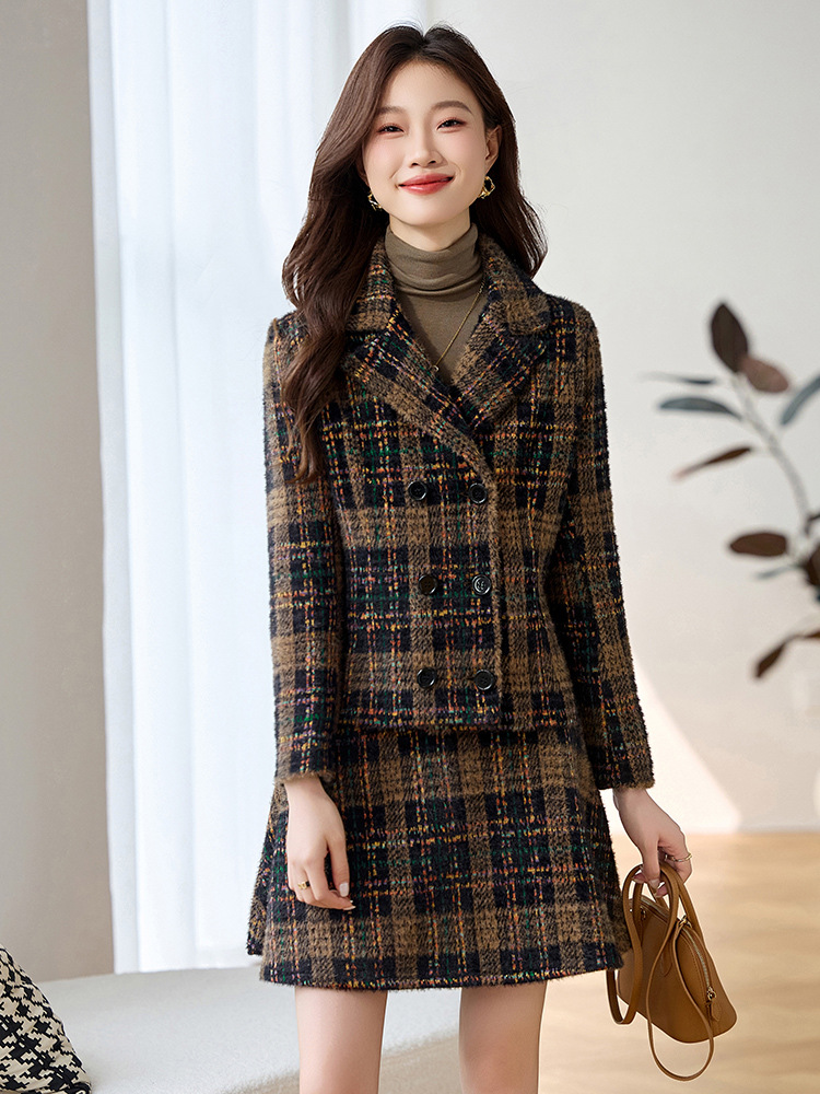 Bộ trang phục hai mảnh này có họa tiết kẻ ô cổ điển, phù hợp cho mùa thu đông. Áo khoác dáng dài có cổ bẻ, hàng cúc đôi và được lót bông ấm áp, đi kèm là chiếc nơ thắt eo tạo điểm nhấn. Váy xòe ngang gối mang đến vẻ nữ tính. Chất vải dày dặn giữ nhiệt tốt. Có thể mặc nguyên bộ để đồng bộ, hoặc phối áo với quần jeans và váy với áo len để đa dạng phong cách. | Tên sản phẩm: Áo Khoác Nữ Chất Liệu Vải Bông Cả Bộ 2 Món Kẻ Caro Kín Cổ Hàng Mùa Xuân Thu Đông - Thời Trang Nữ | Mã sản phẩm: B6412 - Giá: 2.130.000đ | Mã nhà sản xuất: HADG-G05Hình ảnh sản phẩm