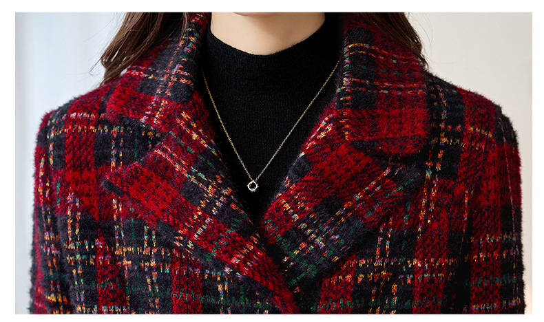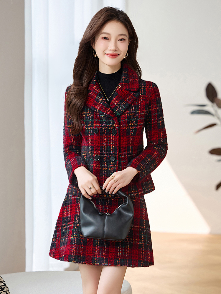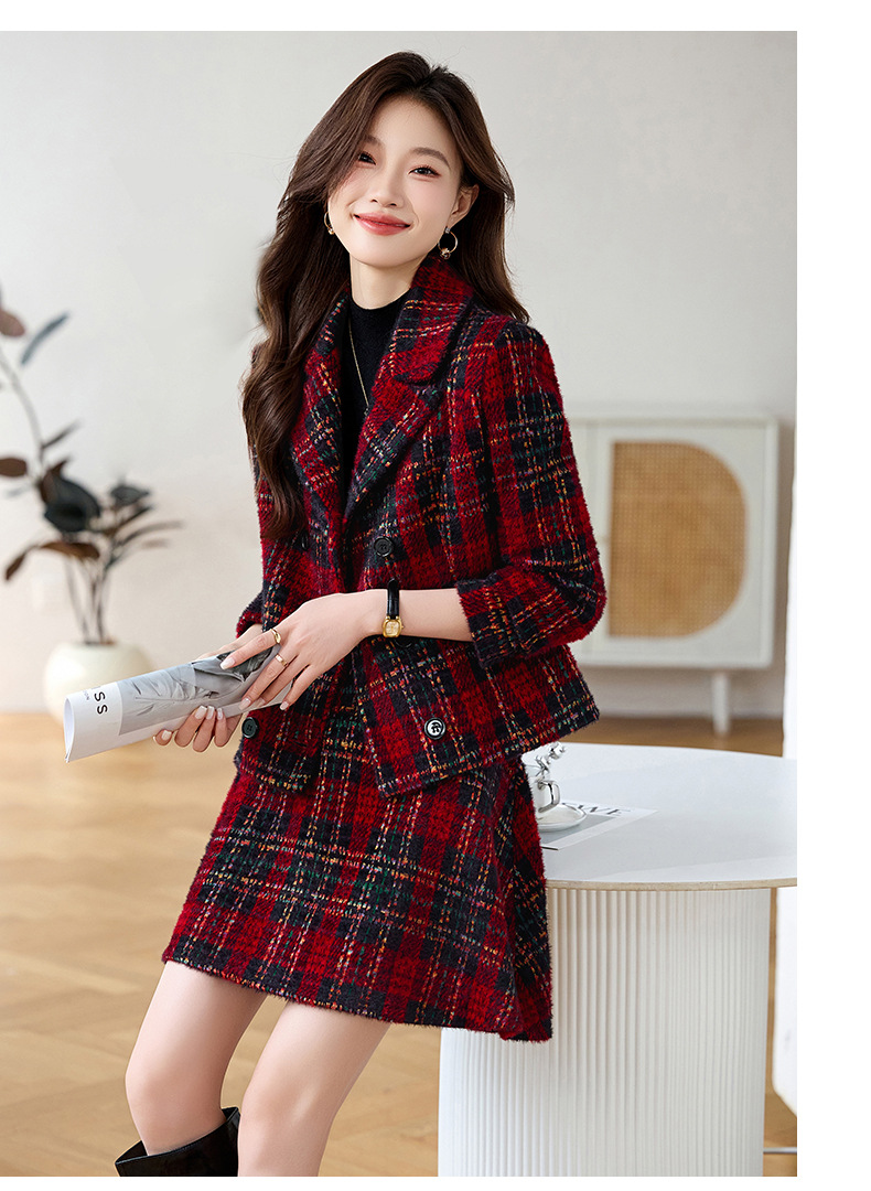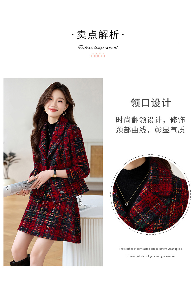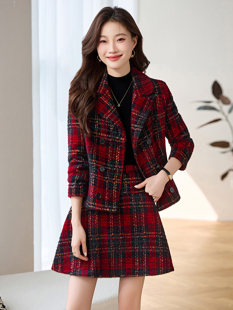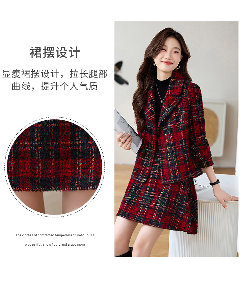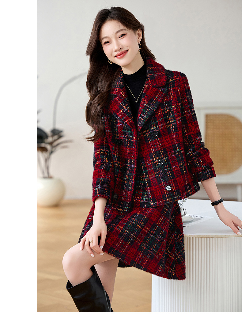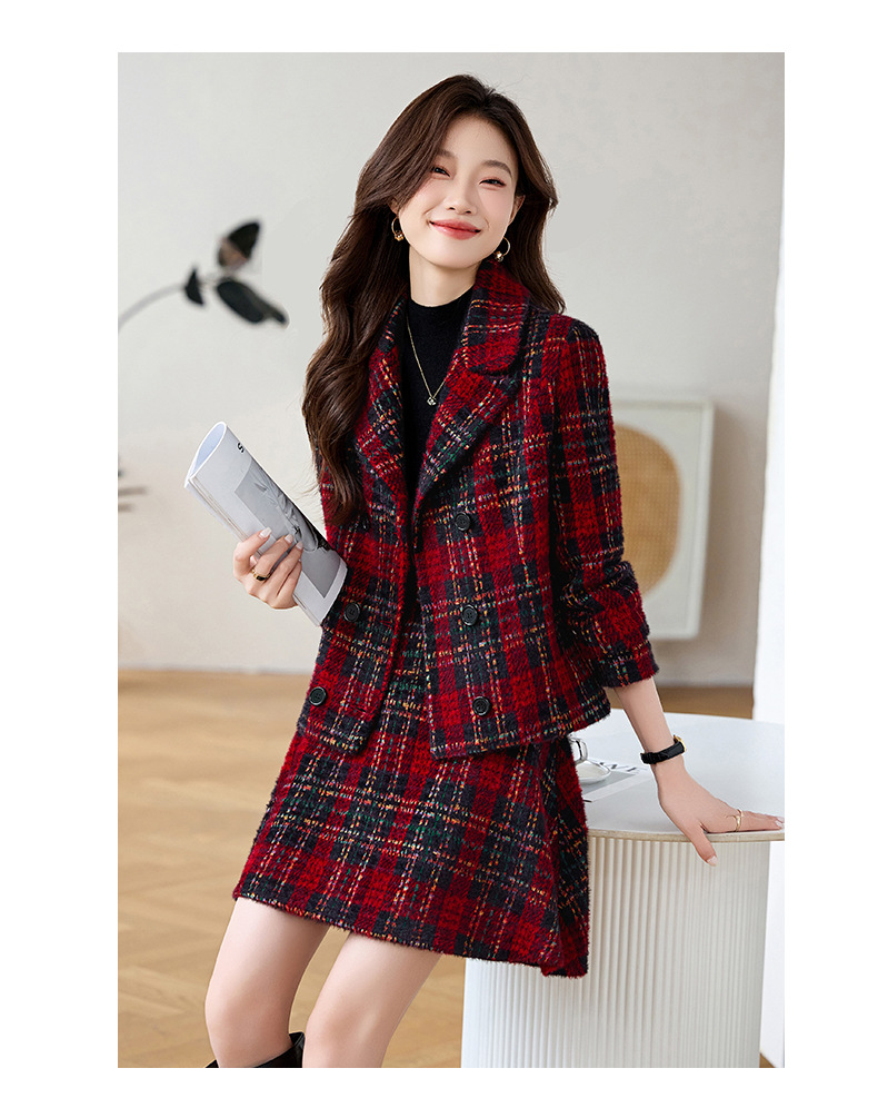 Bộ trang phục hai mảnh này có họa tiết kẻ ô cổ điển, phù hợp cho mùa thu đông. Áo khoác dáng dài có cổ bẻ, hàng cúc đôi và được lót bông ấm áp, đi kèm là chiếc nơ thắt eo tạo điểm nhấn. Váy xòe ngang gối mang đến vẻ nữ tính. Chất vải dày dặn giữ nhiệt tốt. Có thể mặc nguyên bộ để đồng bộ, hoặc phối áo với quần jeans và váy với áo len để đa dạng phong cách. | Tên sản phẩm: Áo Khoác Nữ Chất Liệu Vải Bông Cả Bộ 2 Món Kẻ Caro Kín Cổ Hàng Mùa Xuân Thu Đông - Thời Trang Nữ | Mã sản phẩm: B6412 - Giá: 2.130.000đ | Mã nhà sản xuất: HADG-G05Hình ảnh sản phẩm
