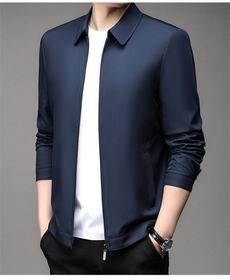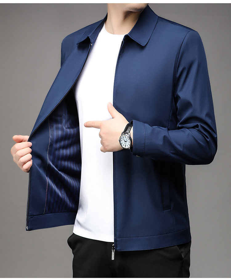 Áo khoác nam dáng cổ bẻ, thiết kế đơn giản với màu sắc thuần nhất, phù hợp mặc trong tiết trời xuân và thu. Chất liệu vải mềm mại, thoáng khí giúp người mặc cảm thấy dễ chịu. Kiểu dáng lịch sự, phù hợp cho nhiều dịp như đi làm, dạo phố hay gặp mặt. Cách sử dụng đơn giản, mặc kết hợp cùng áo thun hoặc sơ mi bên trong đều phù hợp. Đây là mẫu áo tiện dụng, thiết thực trong tủ đồ. | Tên sản phẩm: Áo Khoác Nam Kín Cổ Hàng Mùa Xuân Thu Đông Trung Niên - Thời Trang Nam | Mã sản phẩm: B6429 - Giá: 1.070.000đ | Mã nhà sản xuất: SUDAP-G03Hình ảnh sản phẩm