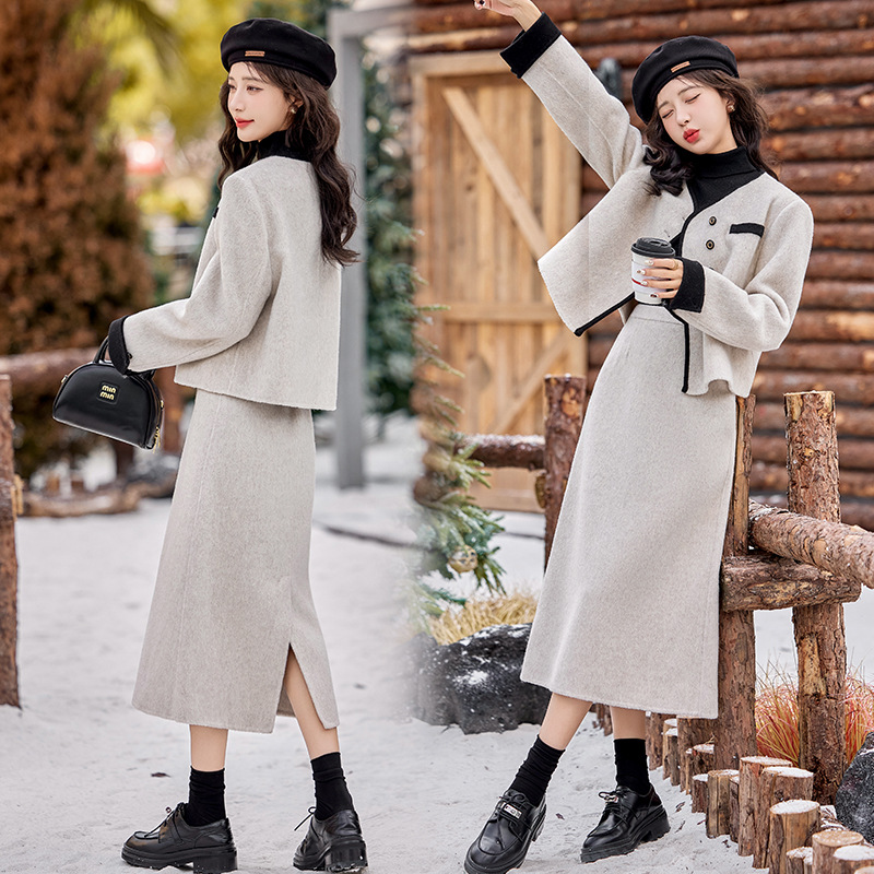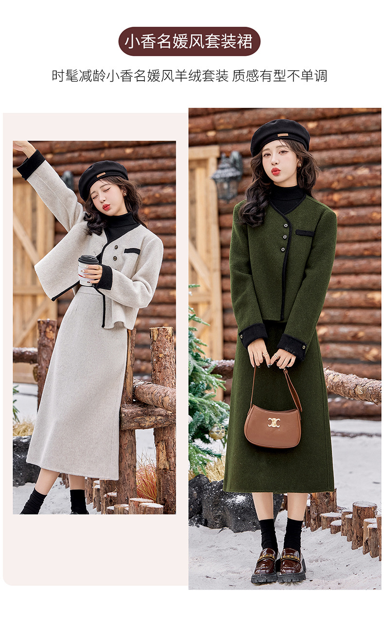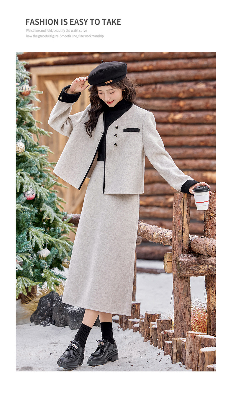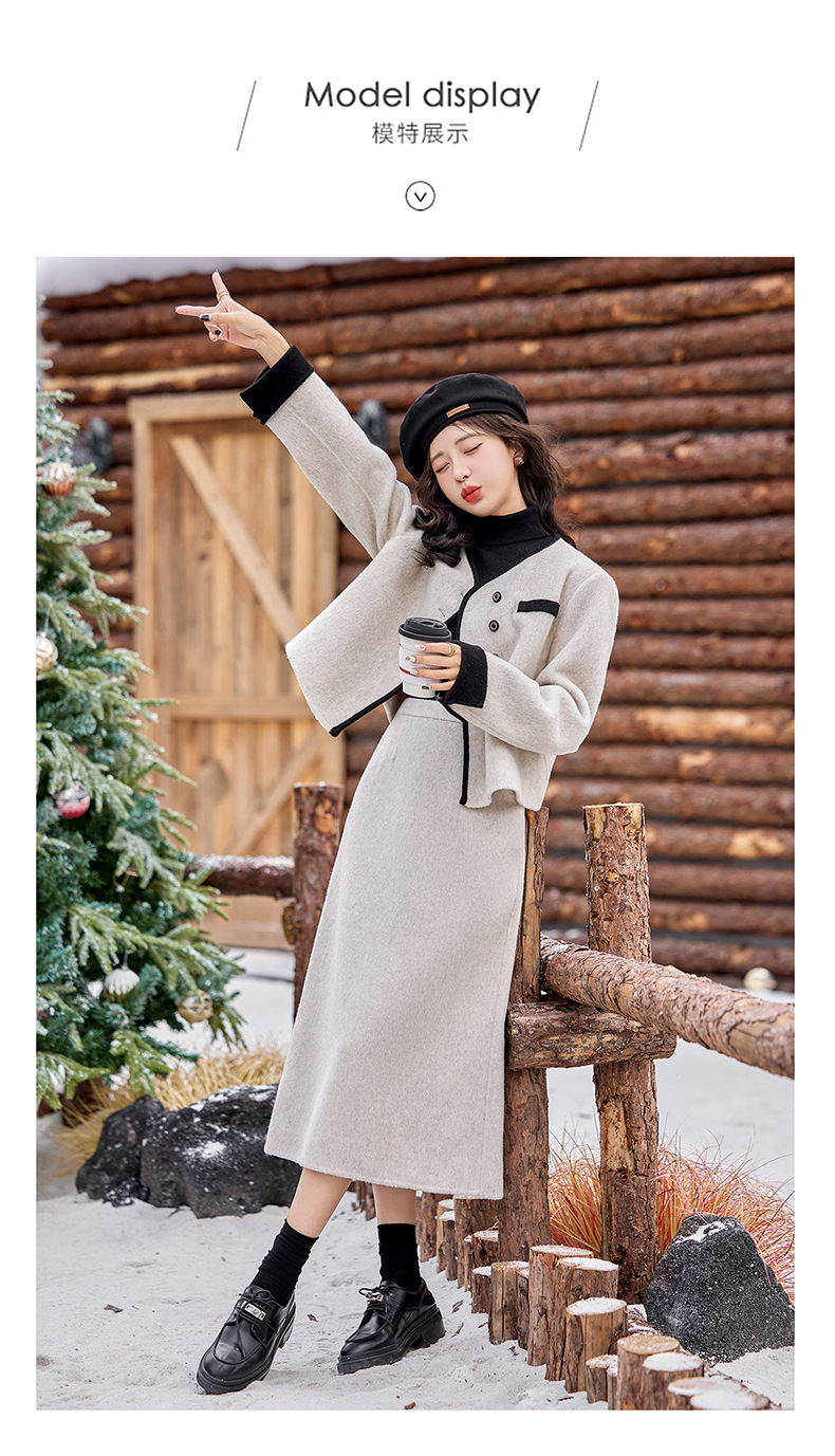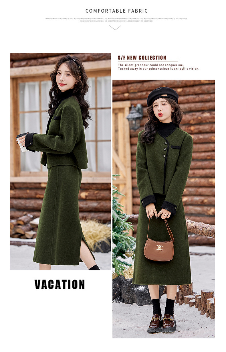 Bộ trang phục mùa thu đông này gồm áo khoác và chân váy, tạo nên một bộ đôi hài hòa. Áo được làm từ chất liệu len ấm áp, có thể mặc được cả hai mặt. Điểm nhấn là sự kết hợp màu sắc tinh tế giữa các phần. Kiểu dáng thoải mái, phù hợp cho nhiều dịp trong ngày. Bạn có thể mặc nguyên bộ để đồng bộ, hoặc tách rời để phối với các món đồ khác, rất tiện lợi và dễ dàng. | Tên sản phẩm: Áo Khoác Nữ Cả Bộ 2 Món Hàng Mùa Xuân Thu Đông - Thời Trang Nữ | Mã sản phẩm: B6439 - Giá: 3.460.000đ | Mã nhà sản xuất: HADG-G06Hình ảnh sản phẩm