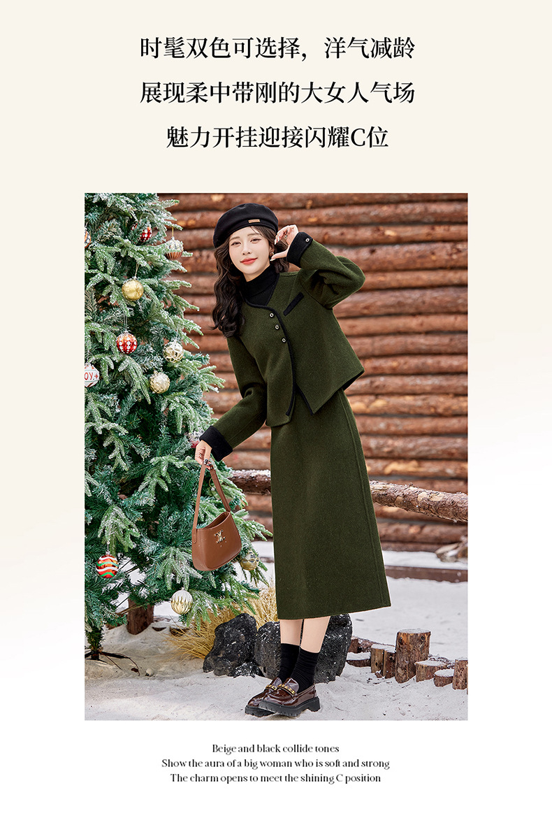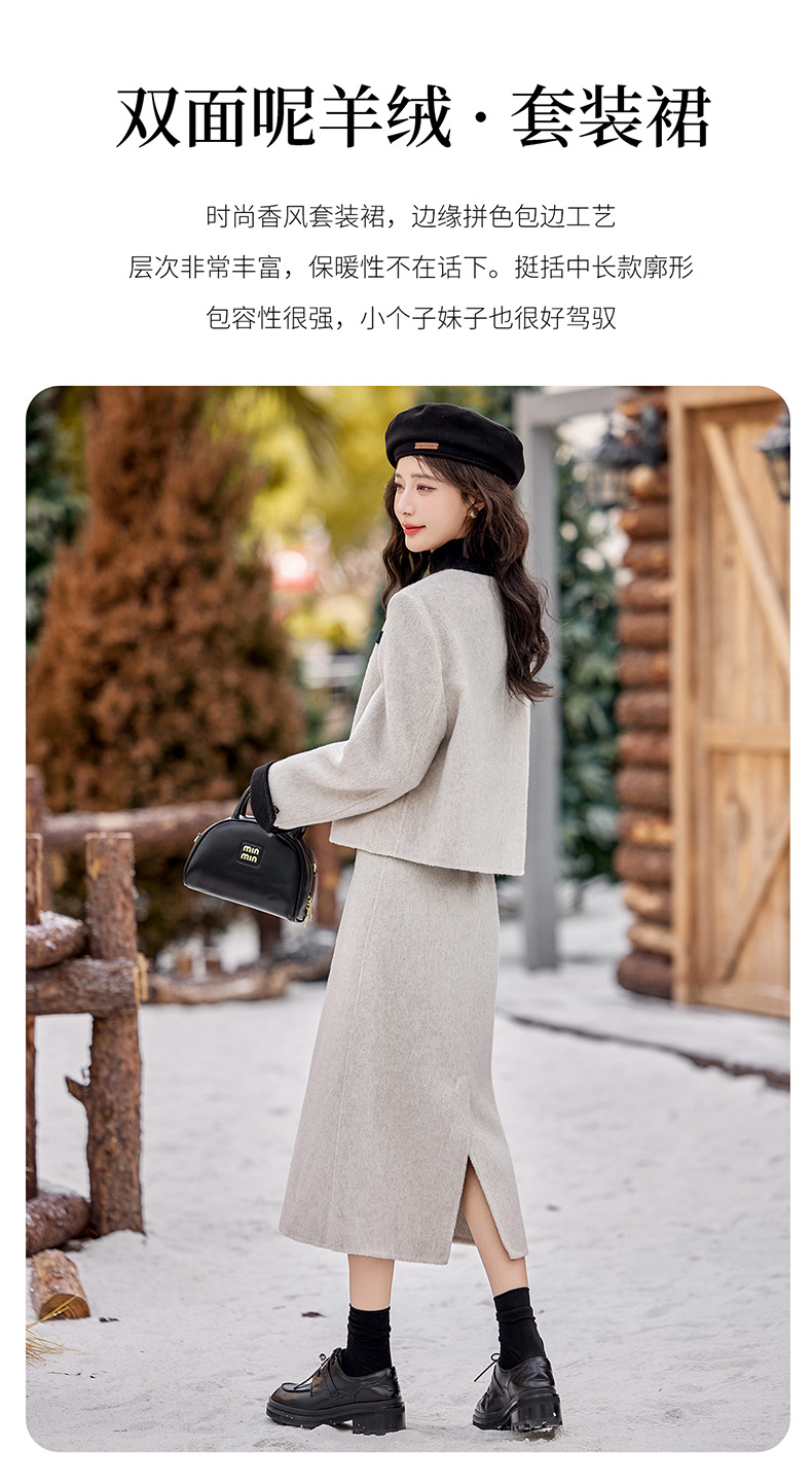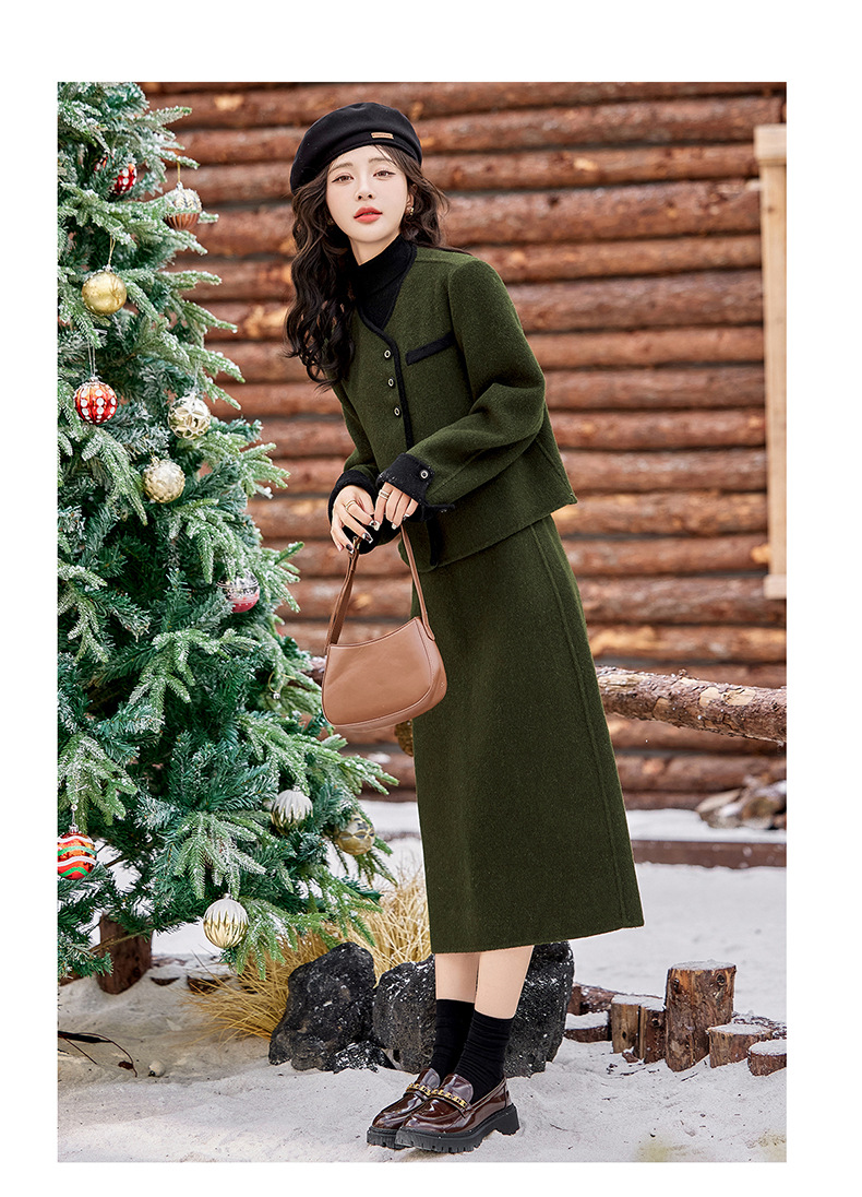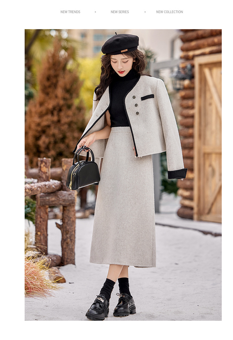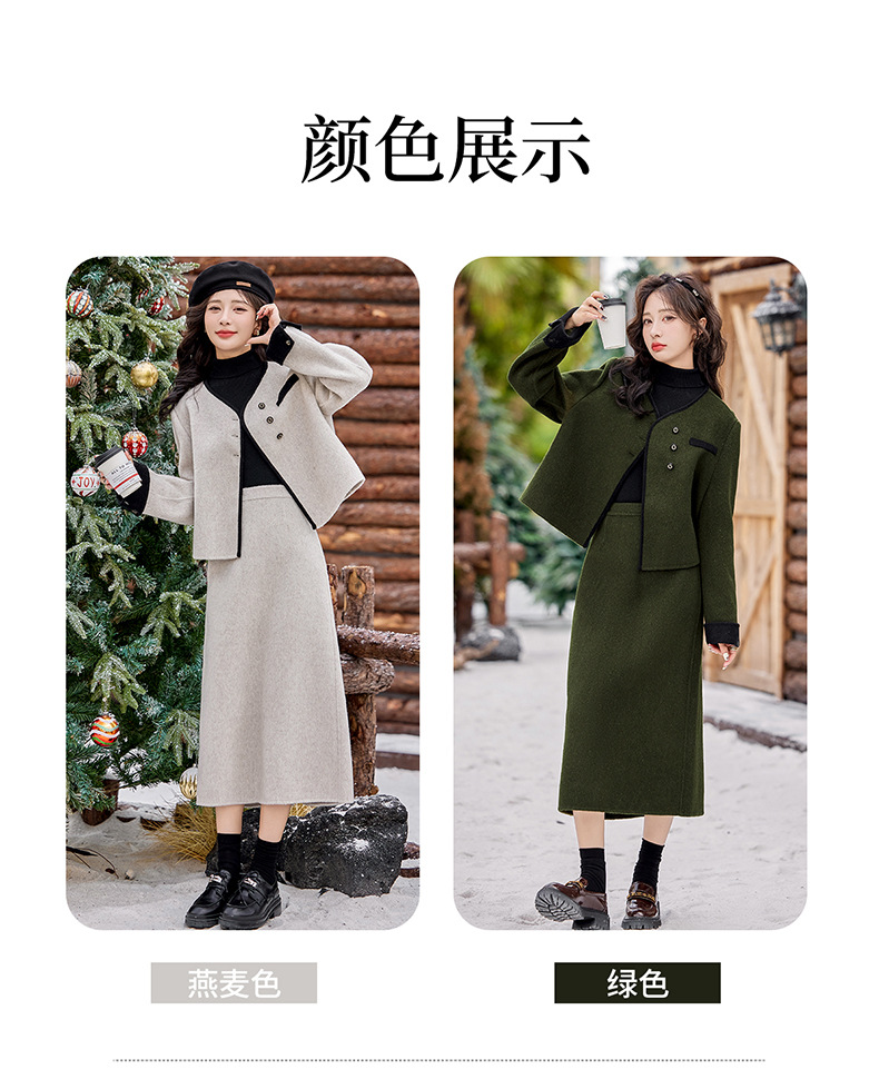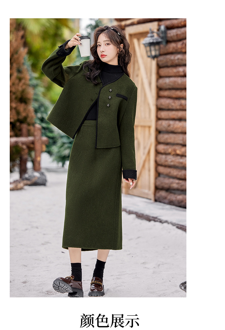 Bộ trang phục mùa thu đông này gồm áo khoác và chân váy, tạo nên một bộ đôi hài hòa. Áo được làm từ chất liệu len ấm áp, có thể mặc được cả hai mặt. Điểm nhấn là sự kết hợp màu sắc tinh tế giữa các phần. Kiểu dáng thoải mái, phù hợp cho nhiều dịp trong ngày. Bạn có thể mặc nguyên bộ để đồng bộ, hoặc tách rời để phối với các món đồ khác, rất tiện lợi và dễ dàng. | Tên sản phẩm: Áo Khoác Nữ Cả Bộ 2 Món Hàng Mùa Xuân Thu Đông - Thời Trang Nữ | Mã sản phẩm: B6439 - Giá: 3.460.000đ | Mã nhà sản xuất: HADG-G06Hình ảnh sản phẩm