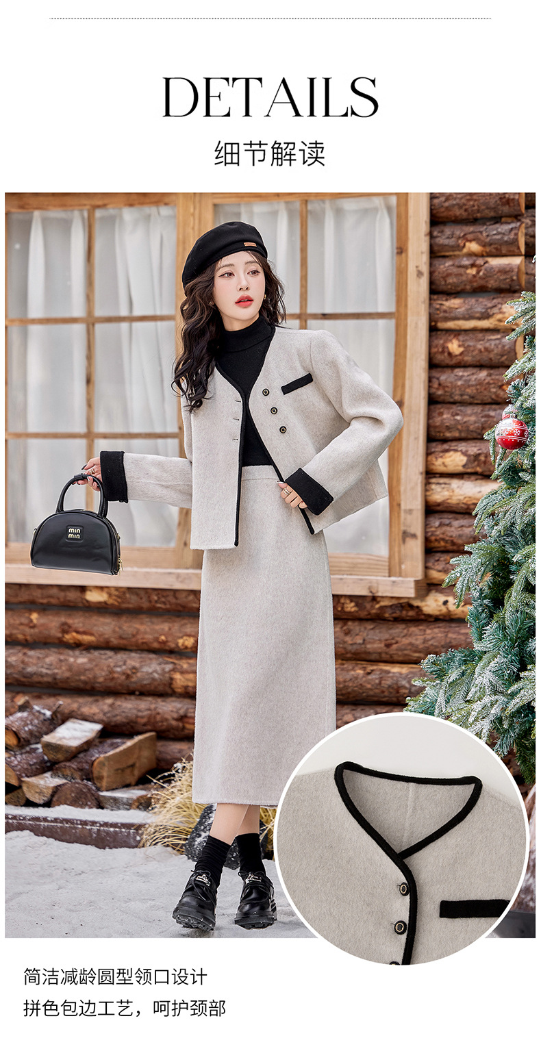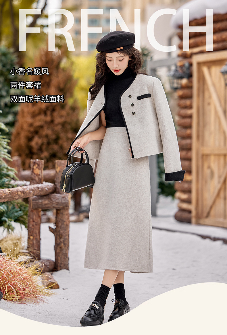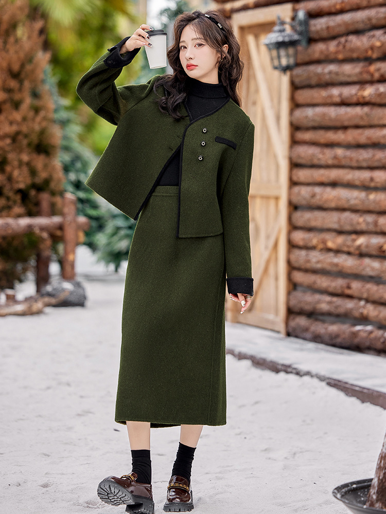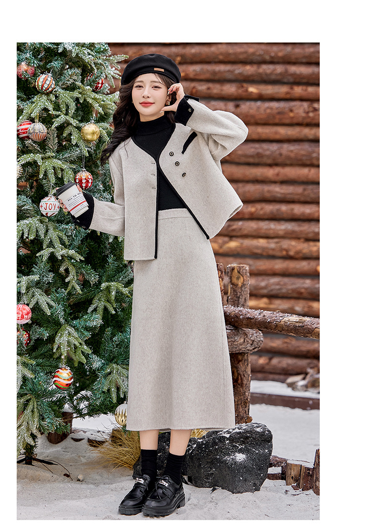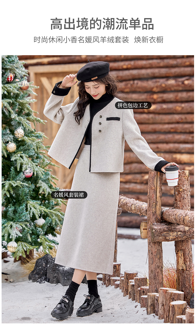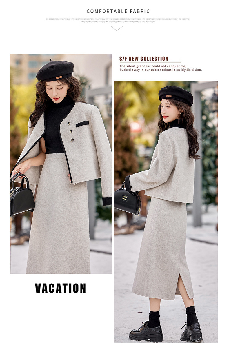 Bộ trang phục mùa thu đông này gồm áo khoác và chân váy, tạo nên một bộ đôi hài hòa. Áo được làm từ chất liệu len ấm áp, có thể mặc được cả hai mặt. Điểm nhấn là sự kết hợp màu sắc tinh tế giữa các phần. Kiểu dáng thoải mái, phù hợp cho nhiều dịp trong ngày. Bạn có thể mặc nguyên bộ để đồng bộ, hoặc tách rời để phối với các món đồ khác, rất tiện lợi và dễ dàng. | Tên sản phẩm: Áo Khoác Nữ Cả Bộ 2 Món Hàng Mùa Xuân Thu Đông - Thời Trang Nữ | Mã sản phẩm: B6439 - Giá: 3.460.000đ | Mã nhà sản xuất: HADG-G06Hình ảnh sản phẩm