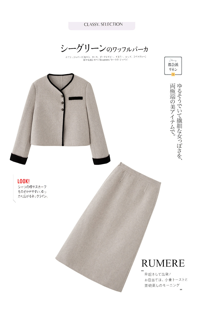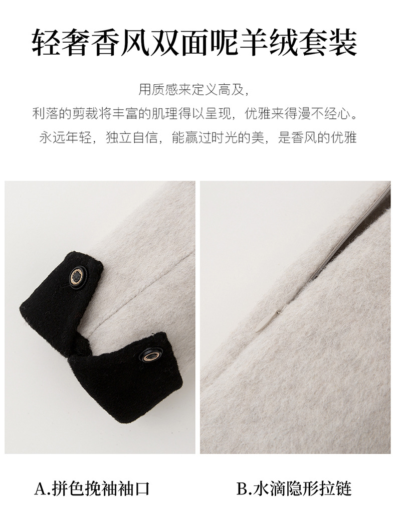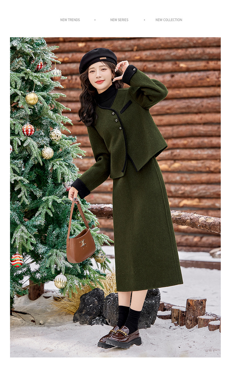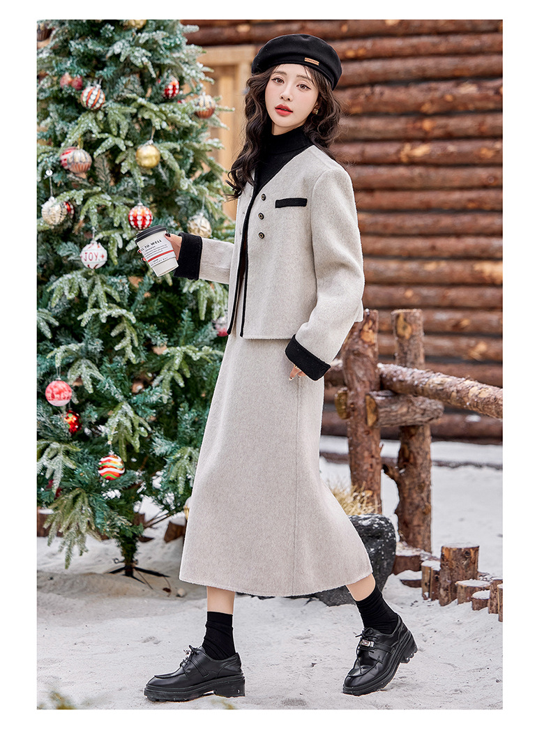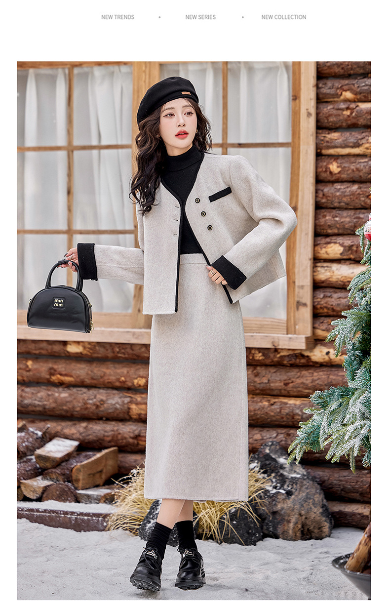 Bộ trang phục mùa thu đông này gồm áo khoác và chân váy, tạo nên một bộ đôi hài hòa. Áo được làm từ chất liệu len ấm áp, có thể mặc được cả hai mặt. Điểm nhấn là sự kết hợp màu sắc tinh tế giữa các phần. Kiểu dáng thoải mái, phù hợp cho nhiều dịp trong ngày. Bạn có thể mặc nguyên bộ để đồng bộ, hoặc tách rời để phối với các món đồ khác, rất tiện lợi và dễ dàng. | Tên sản phẩm: Áo Khoác Nữ Cả Bộ 2 Món Hàng Mùa Xuân Thu Đông - Thời Trang Nữ | Mã sản phẩm: B6439 - Giá: 3.460.000đ | Mã nhà sản xuất: HADG-G06Hình ảnh sản phẩm