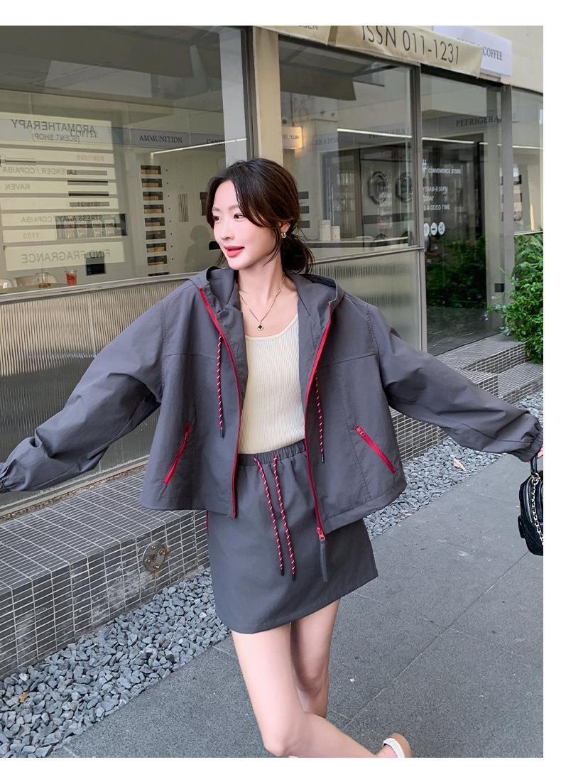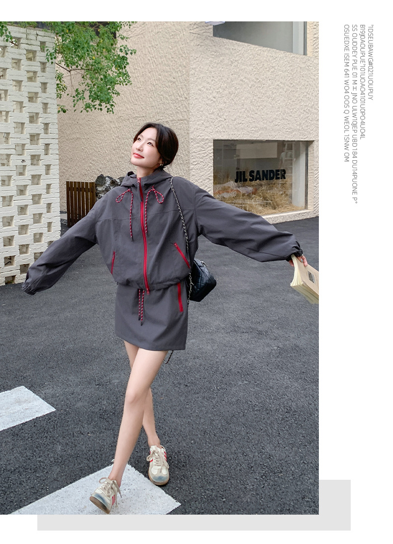 Bộ trang phục mùa thu với áo khoác có mũ và chân váy dáng dễ mặc. Áo được thiết kế rộng rãi thoải mái, có dây rút để bạn có thể điều chỉnh form áo cho vừa vặn. Chân váy xòe nhẹ nhàng, tạo nên sự kết hợp năng động và thoải mái cho những ngày tiết trời se lạnh. Bạn có thể mặc bộ này để đi dạo, đi chơi hay gặp gỡ bạn bè. Chất liệu mềm mại giúp bạn vận động dễ chịu. | Tên sản phẩm: Áo Khoác Nữ Cả Bộ 2 Món Hàng Mùa Xuân Thu Đông - Thời Trang Nữ | Mã sản phẩm: B6464 - Giá: 1.860.000đ | Mã nhà sản xuất: HADG-G05Hình ảnh sản phẩm