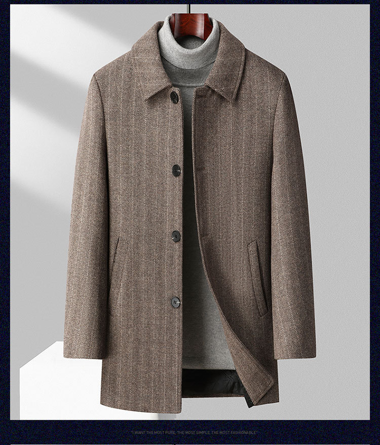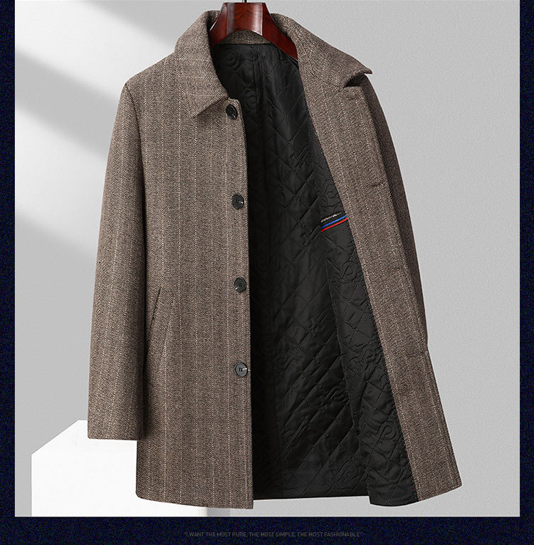 Áo khoác dành cho nam, thiết kế dáng dài vừa phải, phù hợp mặc trong tiết trời lạnh. Chất liệu dệt từ sợi len kết hợp lớp bông giữ ấm bên trong, giúp chống chịu gió rét hiệu quả. Áo có cổ bẻ và hàng cúc đơn phía trước, tạo kiểu dáng lịch sự và dễ dàng mặc vào, cởi ra. Bạn có thể mặc như áo khoác ngoài cùng áo len và quần âu trong những ngày đông. | Tên sản phẩm: Áo Khoác Nam Chất Liệu Vải Bông Dày Ấm Hàng Mùa Xuân Thu Đông - Thời Trang Nam | Mã sản phẩm: B6496 - Giá: 1.540.000đ | Mã nhà sản xuất: SUDAP-G04Hình ảnh sản phẩm