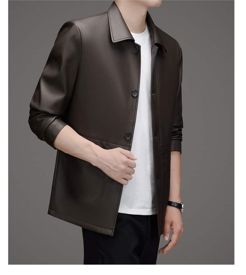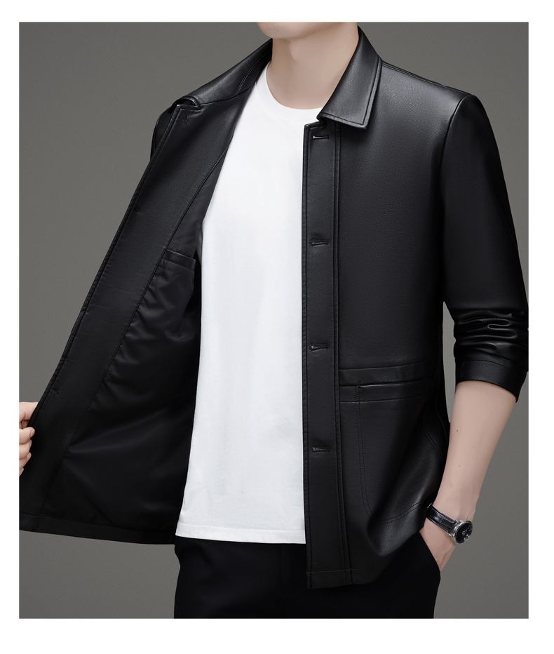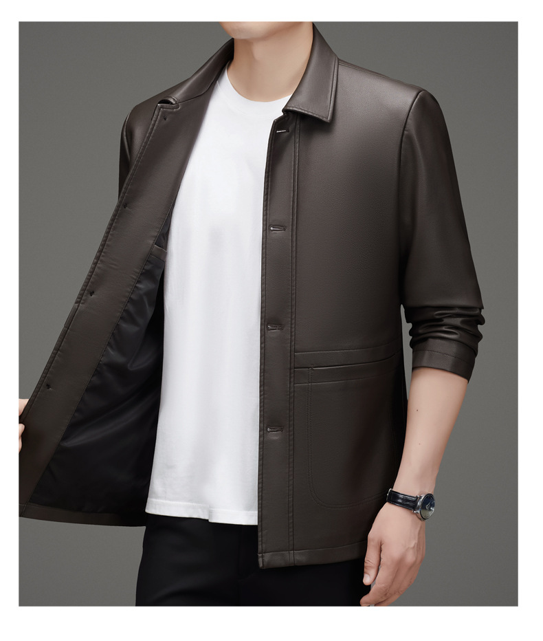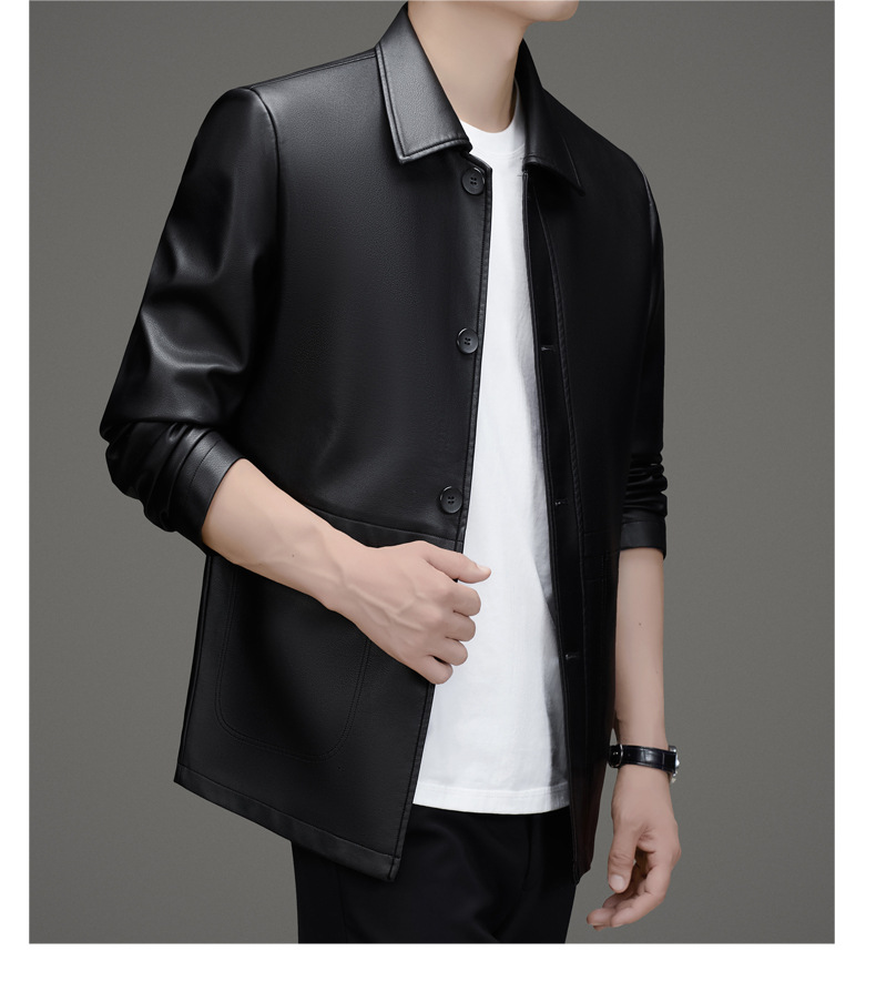 Áo khoác da nam dáng dài, thiết kế cổ bẻ, dành riêng cho mùa thu đông. Chất da mềm mại, bên trong được lót một lớp lông ấm áp, giúp giữ nhiệt tốt khi trời lạnh. Kiểu dáng nam tính, phù hợp mặc hằng ngày hoặc khi đi làm. Có thể phối cùng quần jeans và giày thể thao để tạo vẻ ngoại hình năng động. | Tên sản phẩm: Áo Da Nam Dày Ấm Hàng Mùa Xuân Thu Đông - Thời Trang Nam | Mã sản phẩm: B6497 - Giá: 1.540.000đ | Mã nhà sản xuất: SUDAP-G04Hình ảnh sản phẩm
