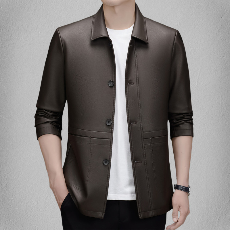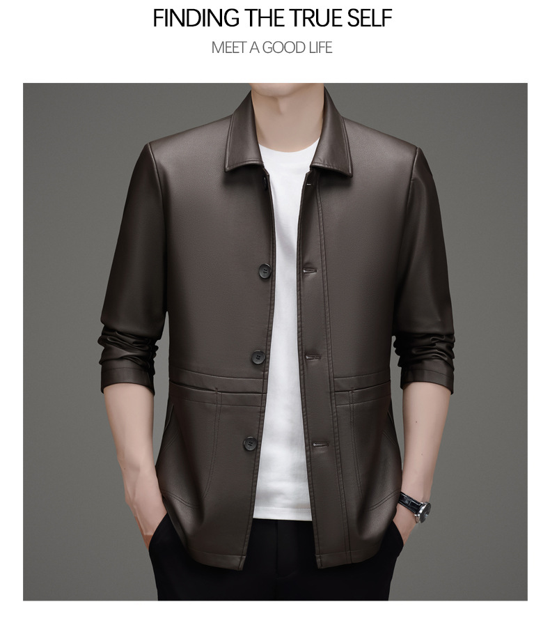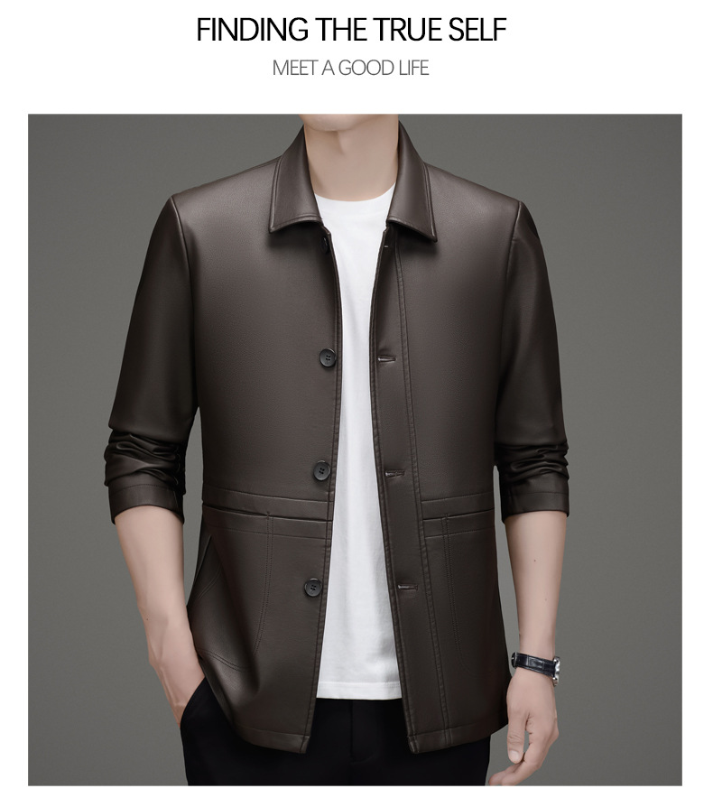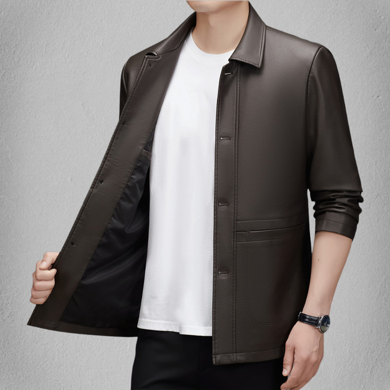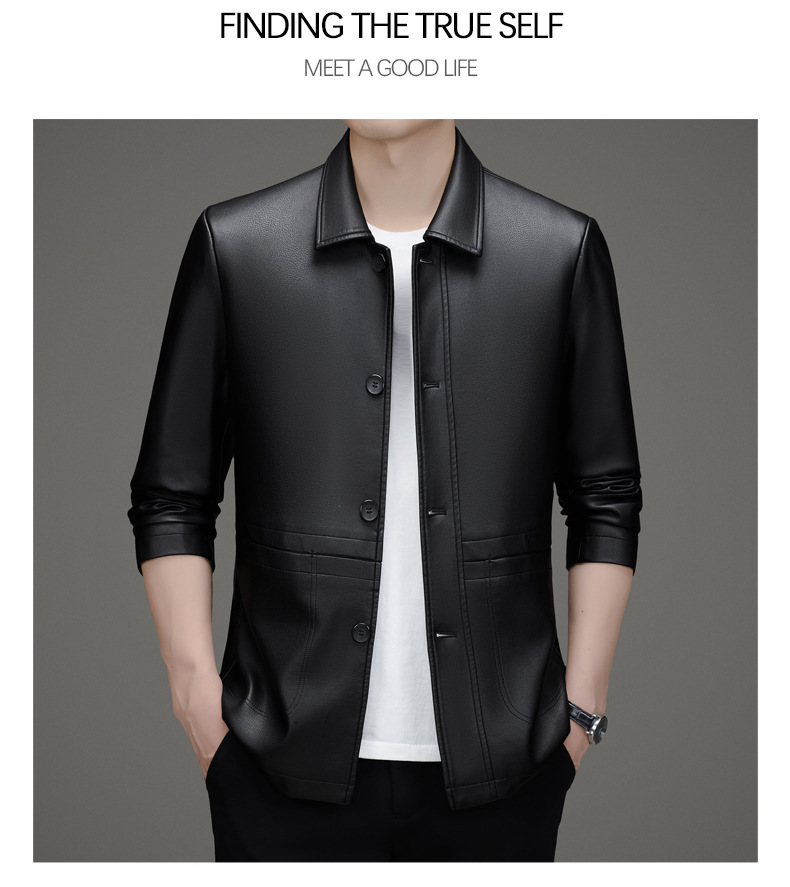 Áo khoác da nam dáng dài, thiết kế cổ bẻ, dành riêng cho mùa thu đông. Chất da mềm mại, bên trong được lót một lớp lông ấm áp, giúp giữ nhiệt tốt khi trời lạnh. Kiểu dáng nam tính, phù hợp mặc hằng ngày hoặc khi đi làm. Có thể phối cùng quần jeans và giày thể thao để tạo vẻ ngoại hình năng động. | Tên sản phẩm: Áo Da Nam Dày Ấm Hàng Mùa Xuân Thu Đông - Thời Trang Nam | Mã sản phẩm: B6497 - Giá: 1.540.000đ | Mã nhà sản xuất: SUDAP-G04Hình ảnh sản phẩm