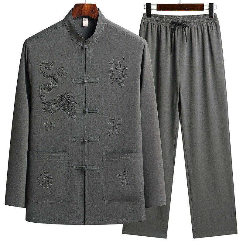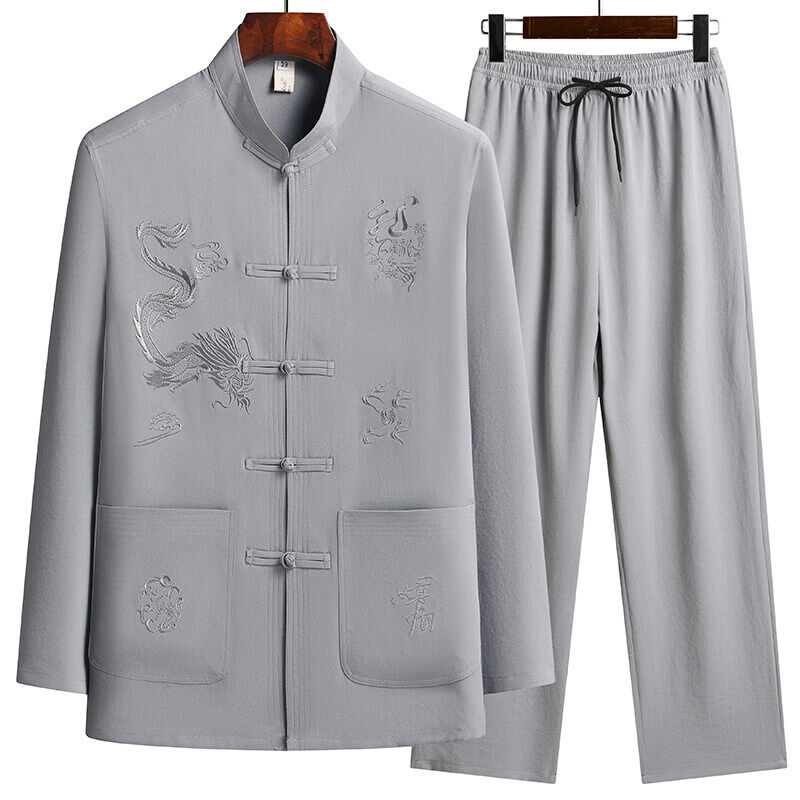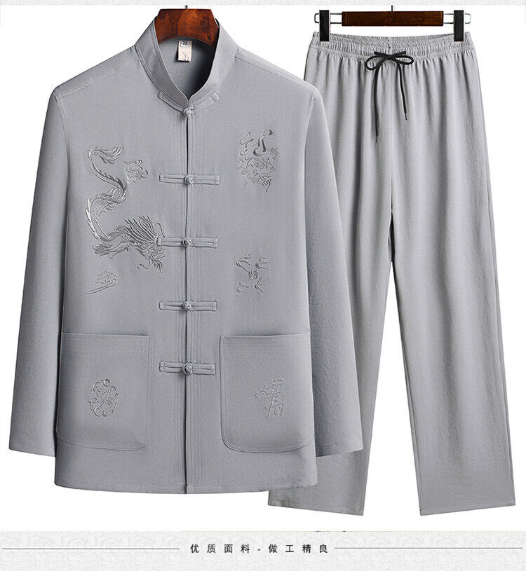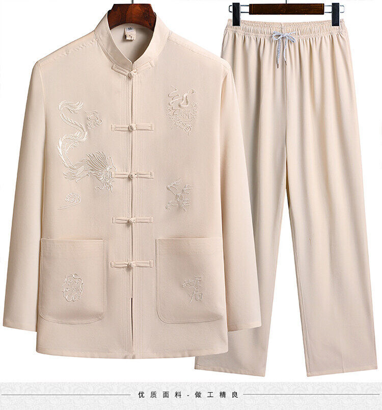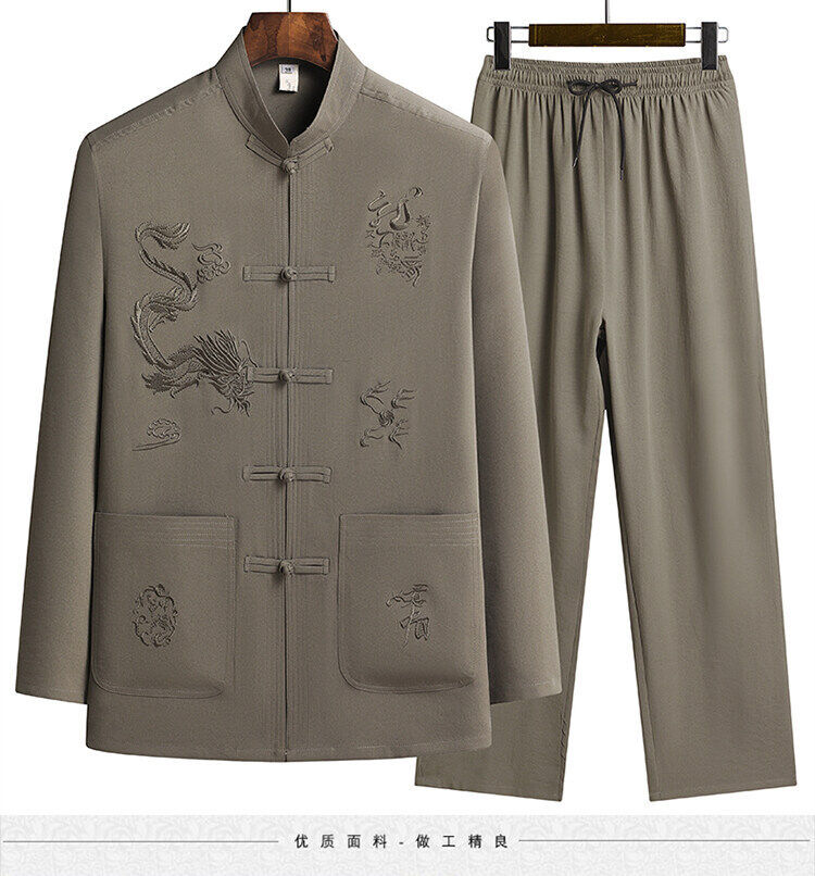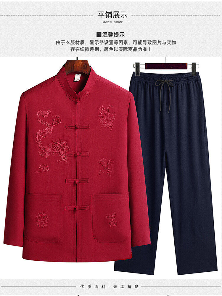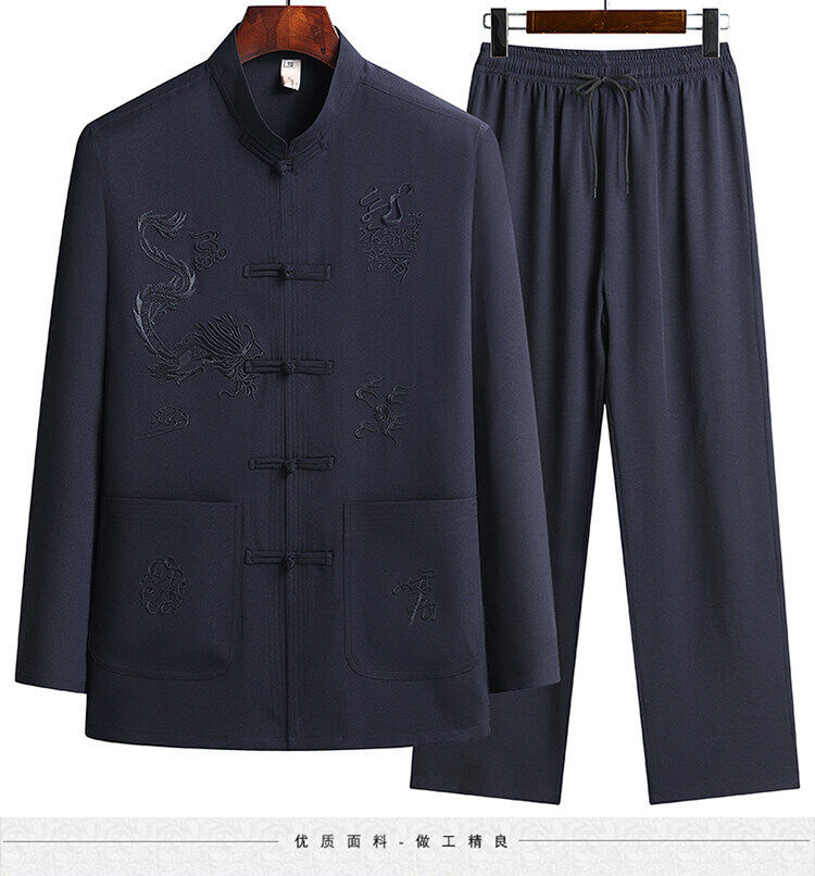Bộ trang phục gồm hai chiếc áo dài tay, được thiết kế dành riêng cho các bậc cha chú lớn tuổi. Áo có kiểu dáng cổ điển, trang nhã với điểm nhấn là các họa tiết thêu tay tinh xảo. Chất vải mềm mại, thoáng mát, rất phù hợp để mặc trong tiết trời xuân và thu. Sản phẩm dễ dàng phối cùng quần dài, mang lại vẻ ngoại hình lịch sự và thoải mái cho người mặc. | Tên sản phẩm: Đồ Bộ Nam Dài Tay Cả Bộ 2 Món Thêu Họa Tiết Hoa Hàng Mùa Xuân Thu Đông Trung Niên - Thời Trang Nam | Mã sản phẩm: B6504 - Giá: 640.000đ | Mã nhà sản xuất: SUDAP-G02Hình ảnh sản phẩm