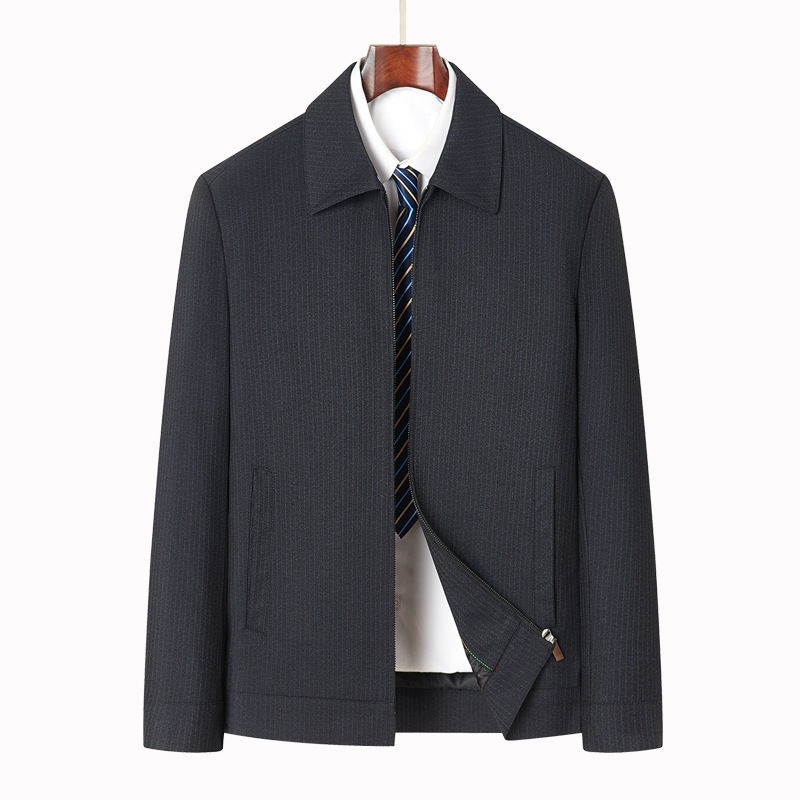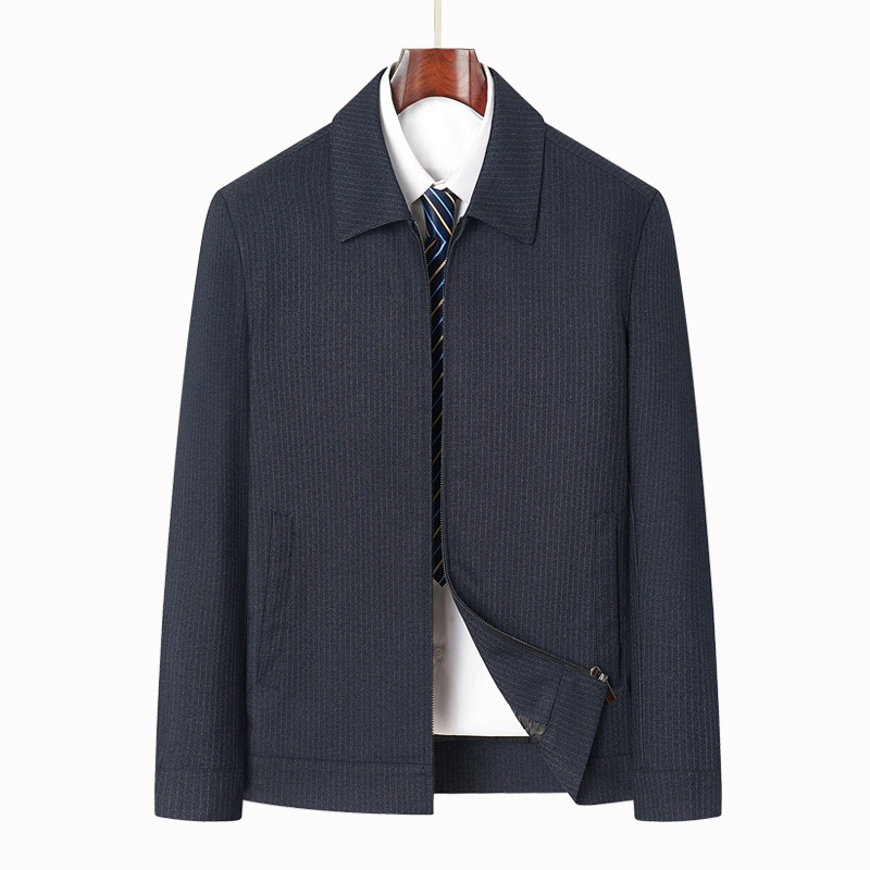 Áo khoác nam thiết kế cổ bẻ, phù hợp mặc trong tiết trời mùa xuân và mùa thu. Sản phẩm có các đường sọc trang nhã, kiểu dáng kết hợp giữa đi làm và đi chơi, tạo cảm giác lịch sự. Chất vải mềm mại, thoáng khí, mang lại sự dễ chịu khi mặc. Bạn có thể mặc cùng áo thun hoặc áo sơ mi bên trong, phù hợp cho nhiều dịp khác nhau. Đây là mẫu áo thiết thực dành cho nam giới trung niên. | Tên sản phẩm: Áo Khoác Nam Kín Cổ Hàng Mùa Xuân Thu Đông Trung Niên - Thời Trang Nam | Mã sản phẩm: B6518 - Giá: 1.140.000đ | Mã nhà sản xuất: SUDAP-G04Hình ảnh sản phẩm