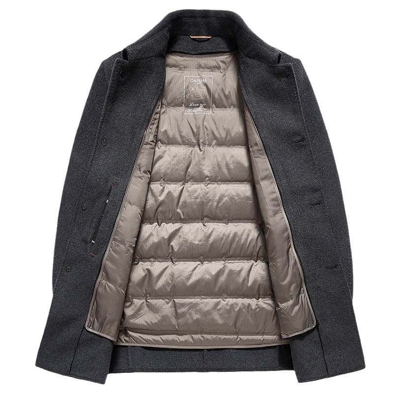 Áo khoác dành cho nam, thiết kế cho thu đông với kiểu dáng dài vừa phải. Điểm nổi bật là chiếc áo có hai lớp vải dệt dày bên ngoài, kèm theo một lớp áo lông vũ bên trong có thể tháo rời. Cổ áo kiểu bẻ, tạo vẻ lịch sự. Khi trời ấm, bạn có thể mặc riêng áo ngoài, còn khi trời lạnh thì lắp thêm lớp lông vũ vào để giữ nhiệt. Phù hợp cho nhiều dịp sử dụng khác nhau. | Tên sản phẩm: Áo Khoác Nam Kín Cổ Hàng Mùa Xuân Thu Đông - Thời Trang Nam | Mã sản phẩm: B6522 - Giá: 2.680.000đ | Mã nhà sản xuất: SUDAP-G06Hình ảnh sản phẩm