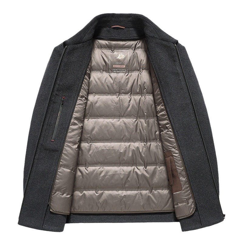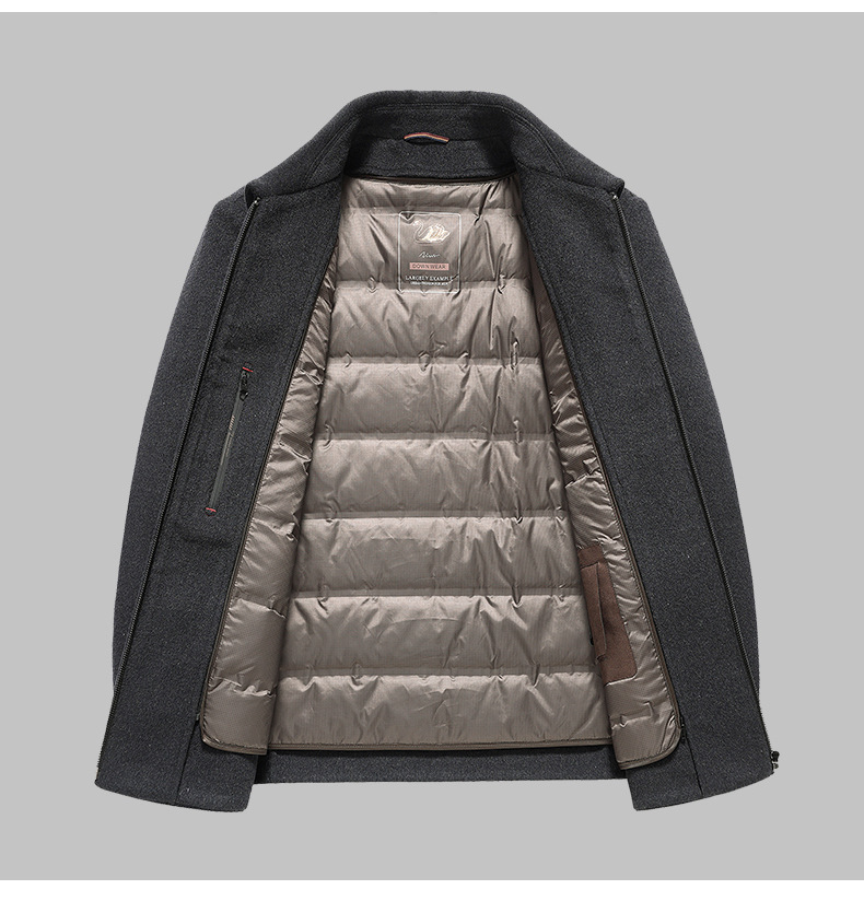 Áo khoác nam hai mặt dùng được cho cả mùa thu đông. Chất liệu dạ dày dày dặn, kết hợp bên trong là áo lông vũ có thể tháo rời để dễ vệ sinh. Cổ áo bẻ tạo phong cách vừa làm việc vừa dạo phố. Mặc ngoài cùng khi trời lạnh, hoặc dùng riêng áo lông vũ khi cần giữ ấm nhẹ. Thiết kế tiện lợi cho nhiều dịp sử dụng khác nhau. | Tên sản phẩm: Áo Khoác Nam Kín Cổ Hàng Mùa Xuân Thu Đông - Thời Trang Nam | Mã sản phẩm: B6523 - Giá: 2.690.000đ | Mã nhà sản xuất: SUDAP-G06Hình ảnh sản phẩm