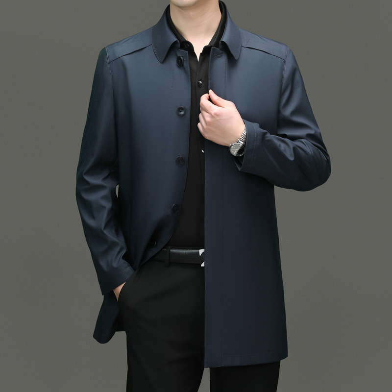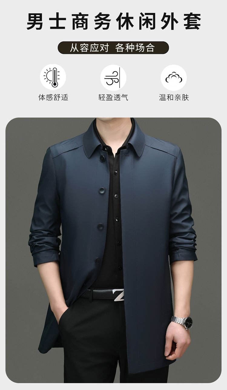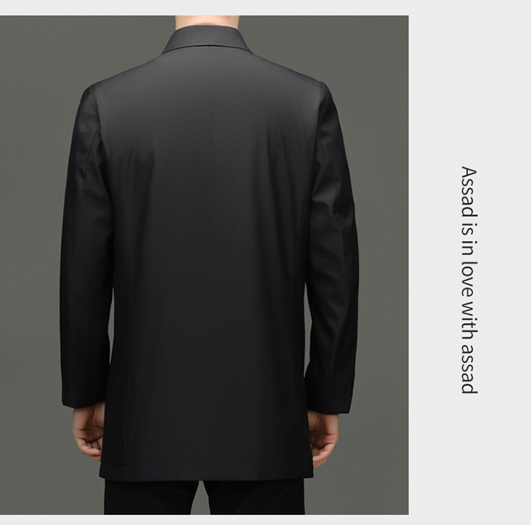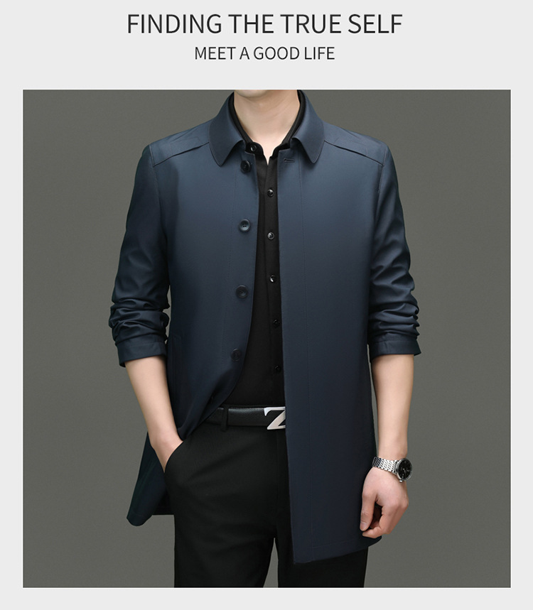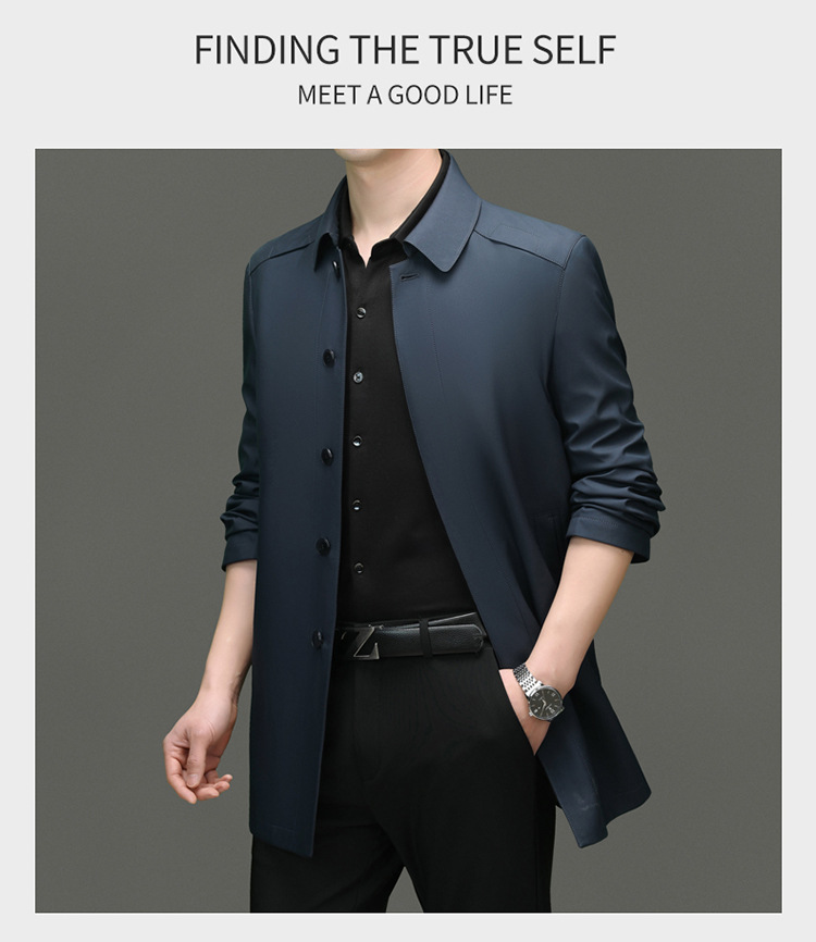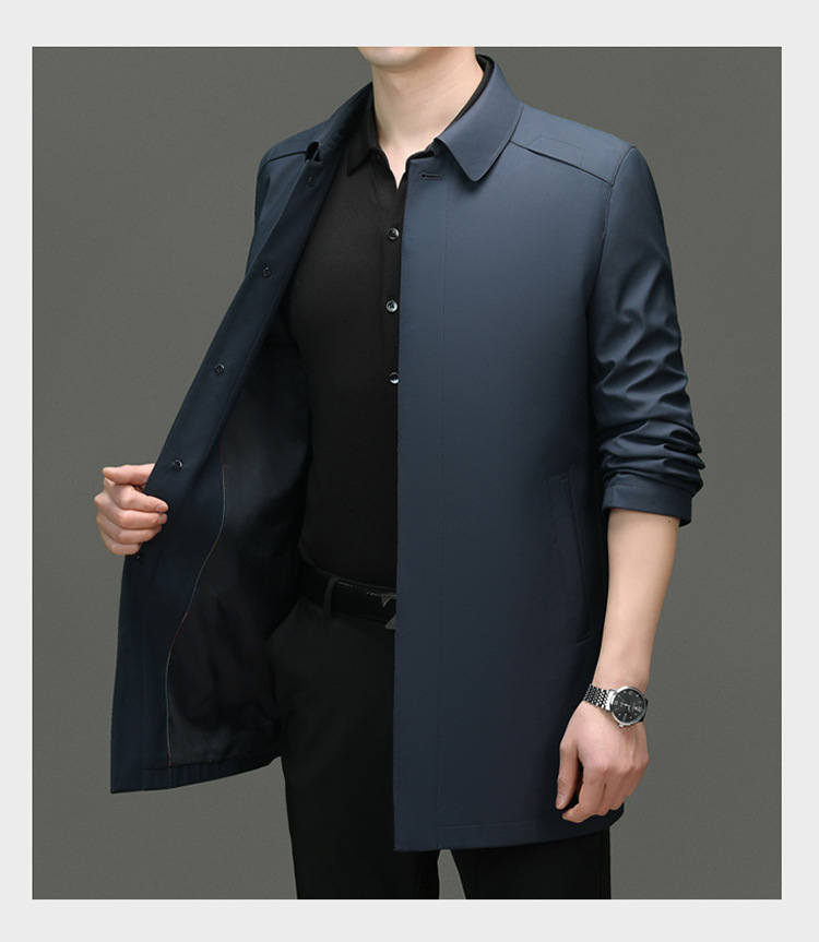Áo khoác dáng dài cho nam, thiết kế cho hai mùa xuân và thu. Kiểu dáng thời trang với phần cổ ve lap rộng, tạo vẻ ngoài lịch sự và thoải mái. Áo có màu trơn, dễ dàng phối cùng nhiều loại trang phục khác nhau. Chất liệu nhẹ, giúp giữ ấm nhẹ nhàng và thoáng khí khi mặc. Sản phẩm phù hợp cho các dịp đi làm, dạo phố hay gặp gỡ bạn bè. Cách sử dụng đơn giản, mặc như các loại áo khoác thông thường. | Tên sản phẩm: Áo Khoác Nam Kín Cổ Hàng Mùa Xuân Thu Đông Trung Niên - Thời Trang Nam | Mã sản phẩm: B6539 - Giá: 1.540.000đ | Mã nhà sản xuất: SUDAP-G04Hình ảnh sản phẩm