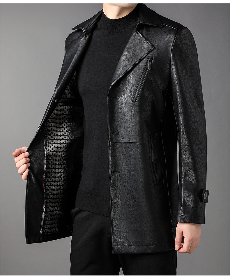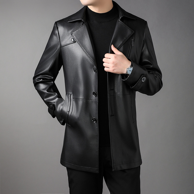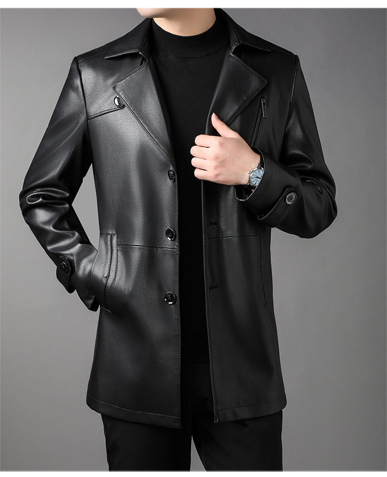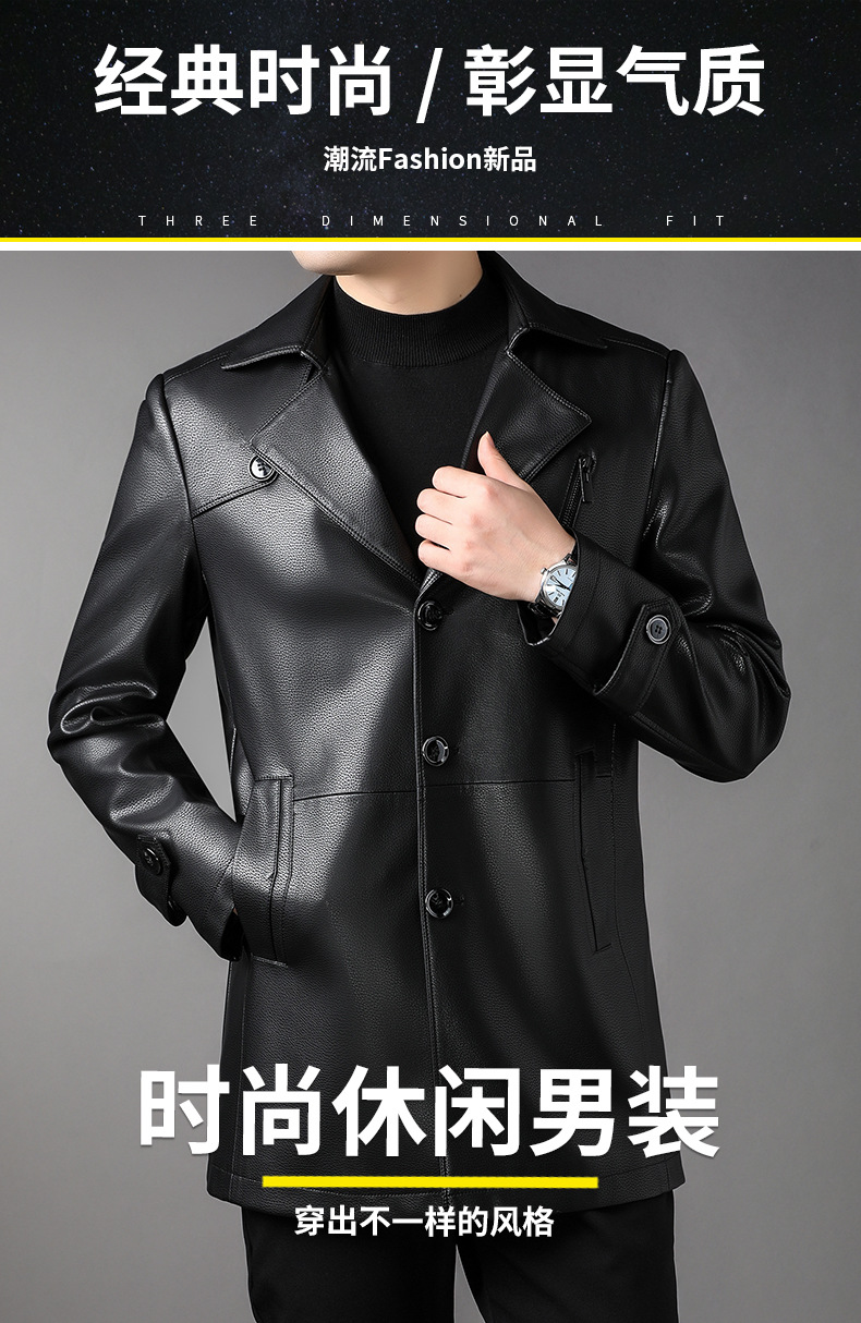 Áo khoác da dành cho nam, kiểu dáng dài vừa phải, phù hợp cho mùa thu đông. Thiết kế cổ vest và hàng cúc đơn mang đến vẻ ngoại hình lịch sự. Bên trong áo được lót một lớp lông mềm mại, giúp giữ ấm tốt hơn trong thời tiết se lạnh. Sản phẩm có kiểu dáng trẻ trung, dễ dàng kết hợp với nhiều loại trang phục khác nhau. Mặc kèm áo thun hoặc áo len bên trong để tạo sự ấm áp và thoải mái. | Tên sản phẩm: Áo Da Nam Vest Hàng Mùa Xuân Thu Đông Trung Niên Phong Cách Hàn Quốc - Thời Trang Nam | Mã sản phẩm: B6598 - Giá: 1.730.000đ | Mã nhà sản xuất: SUDAP-G05Hình ảnh sản phẩm