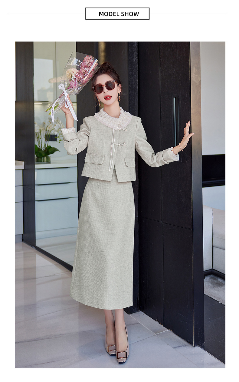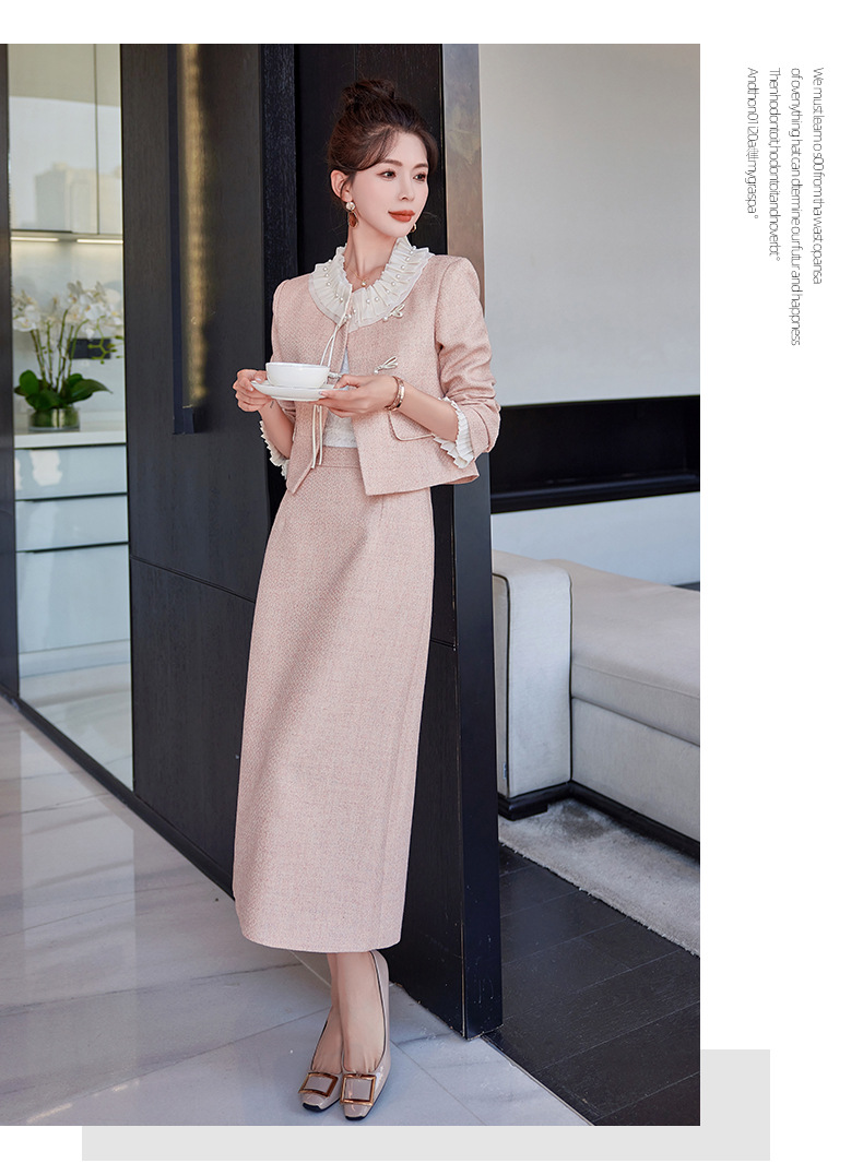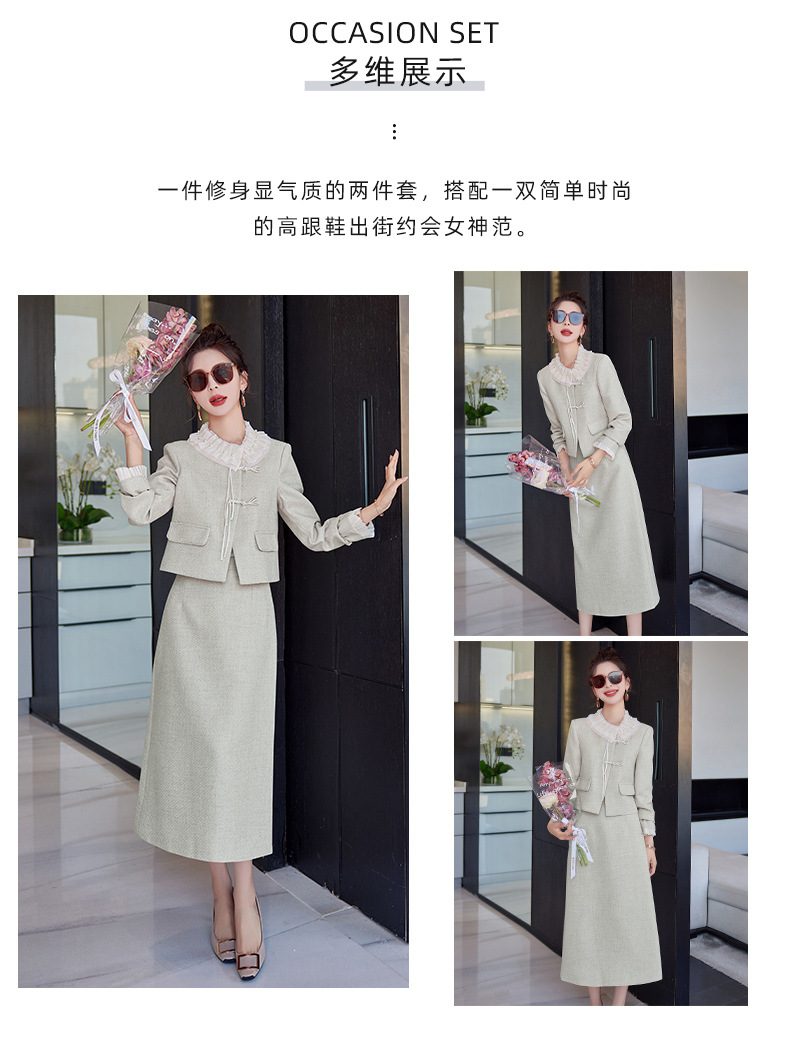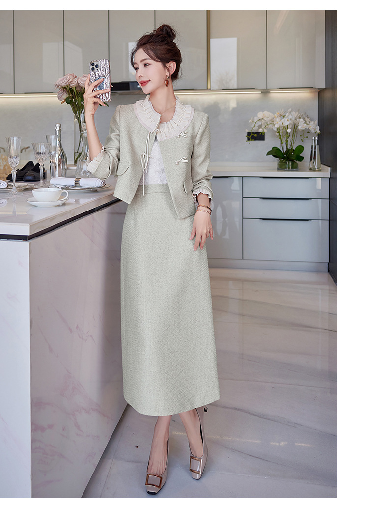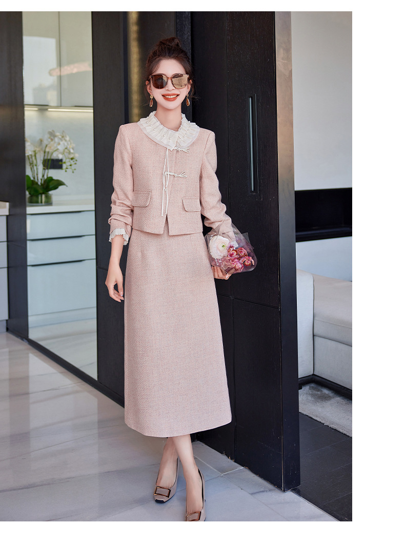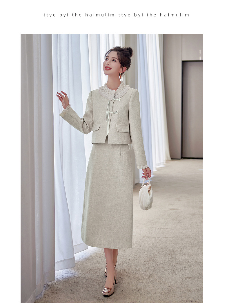 Bộ trang phục hai mảnh này gồm áo khoác mỏng và chân váy, tạo thành một chiếc đầm liền có tác dụng tôn dáng. Kiểu dáng thời thượng, phù hợp cho nhiều dịp khác nhau. Chất vải mềm mại, tạo cảm giác dễ chịu khi mặc. Bạn có thể mặc nguyên bộ để có vẻ ngoài chỉn chu, hoặc tách rời để phối cùng các trang phục khác. Sản phẩm dễ dàng phối hợp với nhiều loại phụ kiện, giúp bạn linh hoạt trong việc tạo nên những phong cách riêng. | Tên sản phẩm: Áo Khoác Nữ Cả Bộ 2 Món - Thời Trang Nữ | Mã sản phẩm: B6602 - Giá: 1.810.000đ | Mã nhà sản xuất: HADG-G05Hình ảnh sản phẩm