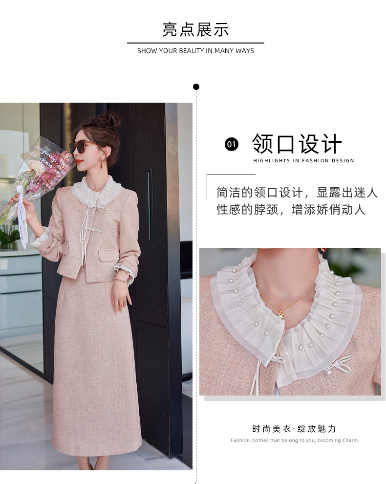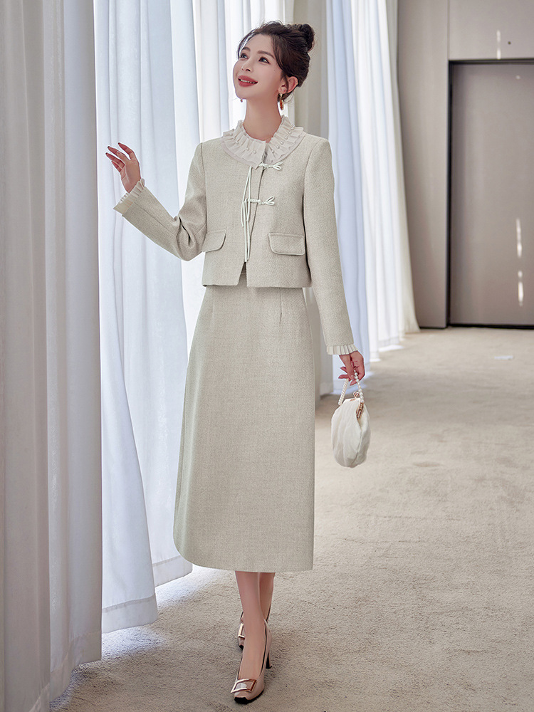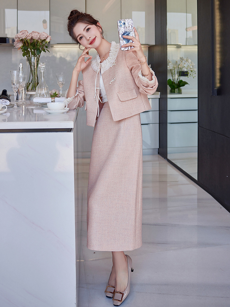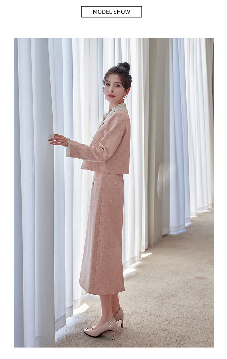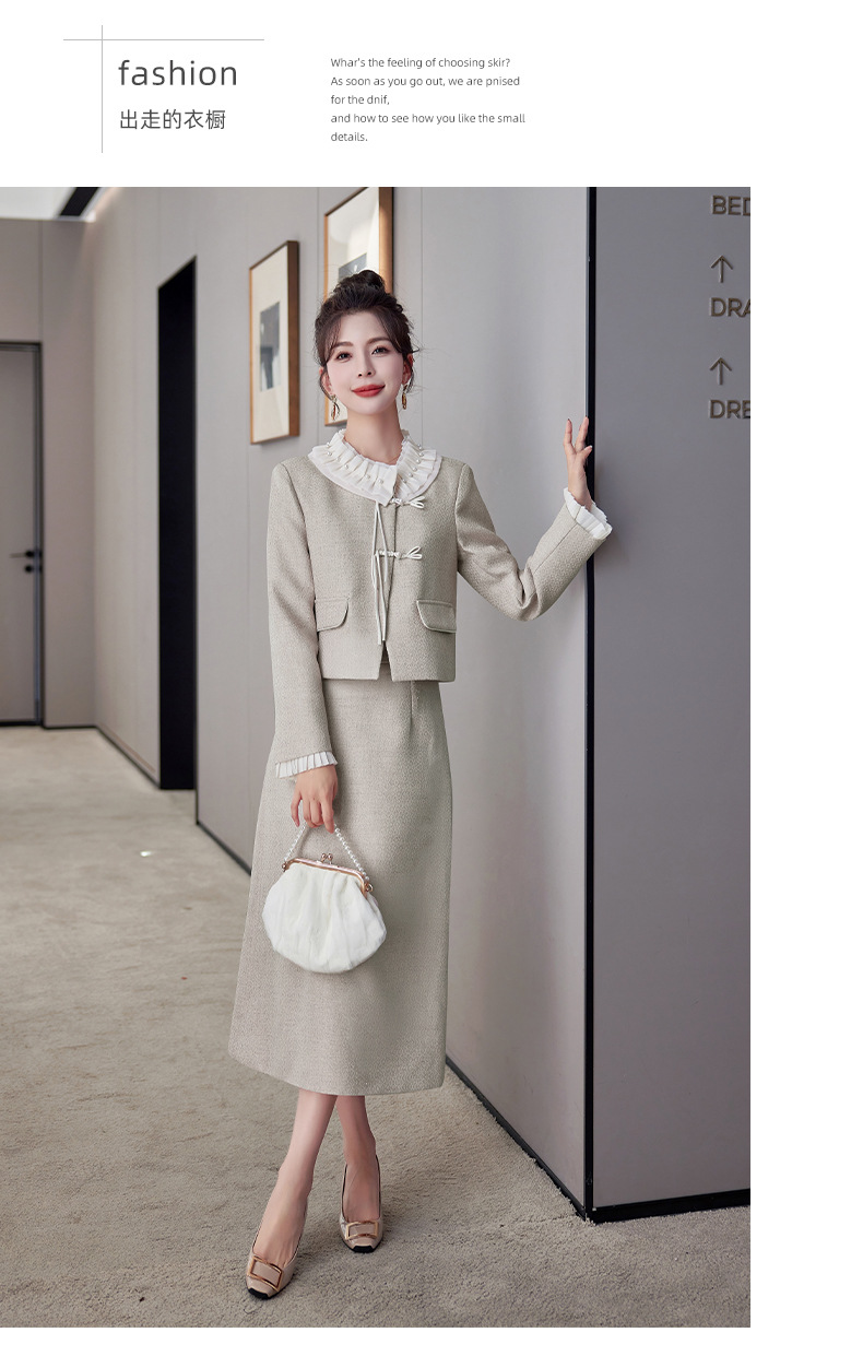 Bộ trang phục hai mảnh này gồm áo khoác mỏng và chân váy, tạo thành một chiếc đầm liền có tác dụng tôn dáng. Kiểu dáng thời thượng, phù hợp cho nhiều dịp khác nhau. Chất vải mềm mại, tạo cảm giác dễ chịu khi mặc. Bạn có thể mặc nguyên bộ để có vẻ ngoài chỉn chu, hoặc tách rời để phối cùng các trang phục khác. Sản phẩm dễ dàng phối hợp với nhiều loại phụ kiện, giúp bạn linh hoạt trong việc tạo nên những phong cách riêng. | Tên sản phẩm: Áo Khoác Nữ Cả Bộ 2 Món - Thời Trang Nữ | Mã sản phẩm: B6602 - Giá: 1.810.000đ | Mã nhà sản xuất: HADG-G05Hình ảnh sản phẩm
