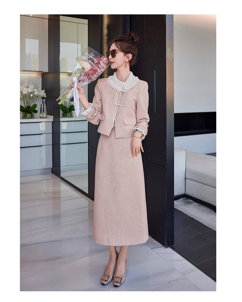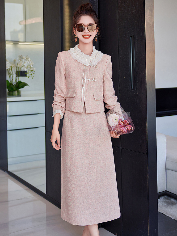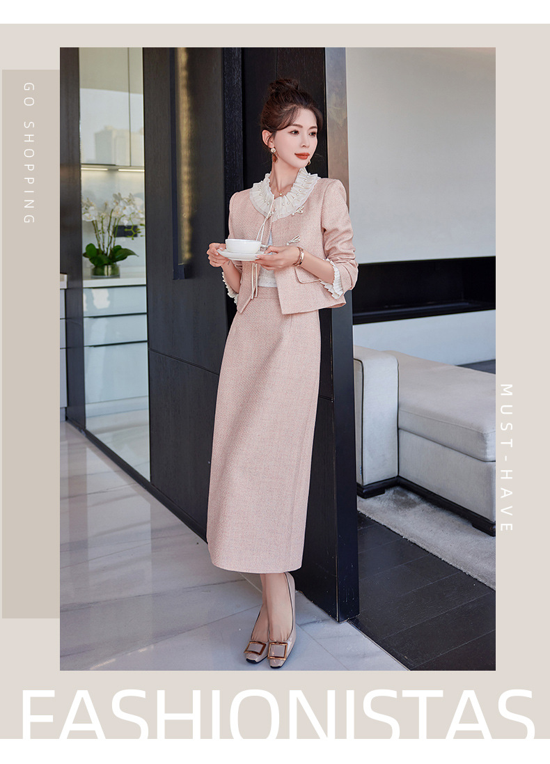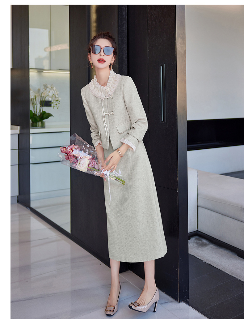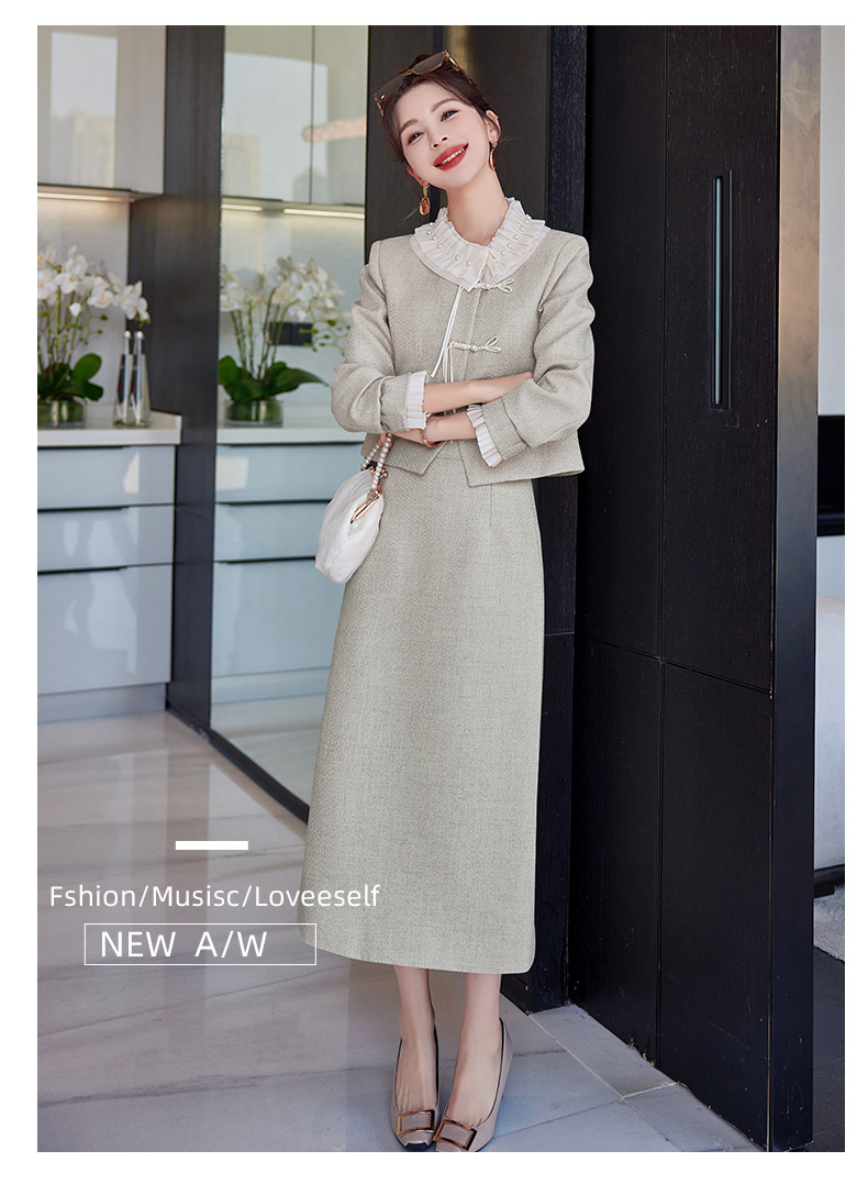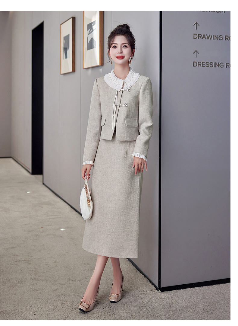 Bộ trang phục hai mảnh này gồm áo khoác mỏng và chân váy, tạo thành một chiếc đầm liền có tác dụng tôn dáng. Kiểu dáng thời thượng, phù hợp cho nhiều dịp khác nhau. Chất vải mềm mại, tạo cảm giác dễ chịu khi mặc. Bạn có thể mặc nguyên bộ để có vẻ ngoài chỉn chu, hoặc tách rời để phối cùng các trang phục khác. Sản phẩm dễ dàng phối hợp với nhiều loại phụ kiện, giúp bạn linh hoạt trong việc tạo nên những phong cách riêng. | Tên sản phẩm: Áo Khoác Nữ Cả Bộ 2 Món - Thời Trang Nữ | Mã sản phẩm: B6602 - Giá: 1.810.000đ | Mã nhà sản xuất: HADG-G05Hình ảnh sản phẩm