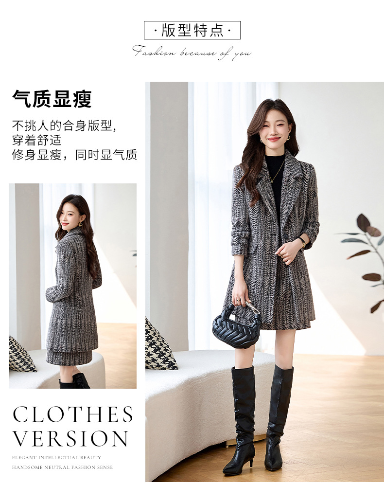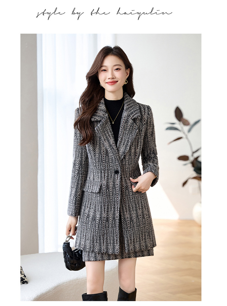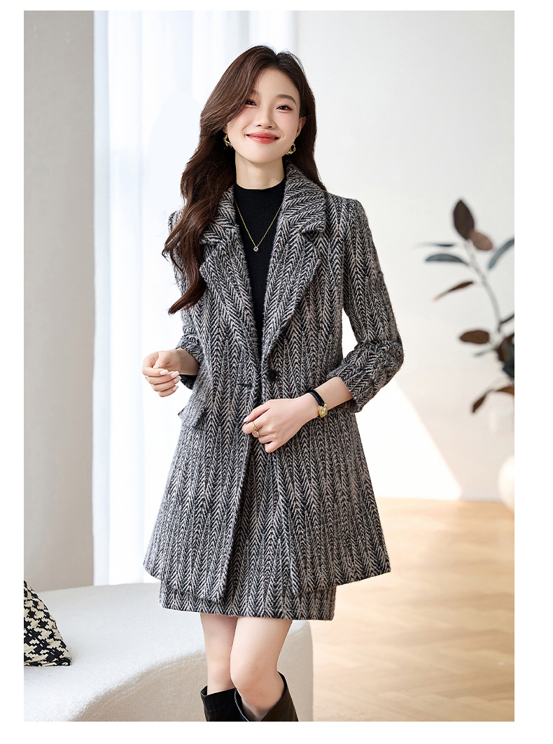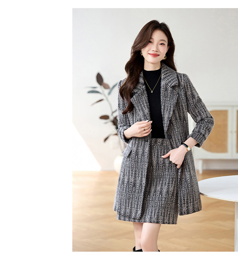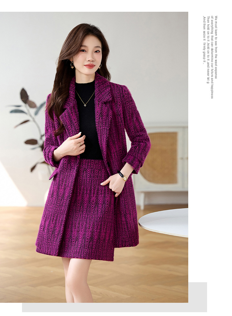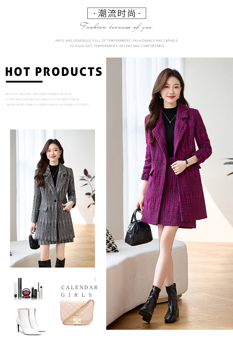 Bộ trang phục mùa thu đông này gồm áo khoác và chân váy, tạo vẻ ngoài chỉn chu, lịch sự. Áo khoắc có cổ ve áo, một khuy cài, được lót lớp bông giữ ấm tốt. Chân váy dáng dài đến gối, dễ dàng phối cùng áo. Chất vải dày dặn, giữ form đẹp, phù hợp mặc đi làm hoặc dự tiệc. Có thể m nguyên bộ hoặc tách rời để phối đồ linh hoạt. | Tên sản phẩm: Áo Vest Nữ Chất Liệu Vải Bông Vest Cả Bộ 2 Món Dày Ấm Hàng Mùa Xuân Thu Đông - Thời Trang Nữ | Mã sản phẩm: B6614 - Giá: 2.410.000đ | Mã nhà sản xuất: HADG-G05Hình ảnh sản phẩm