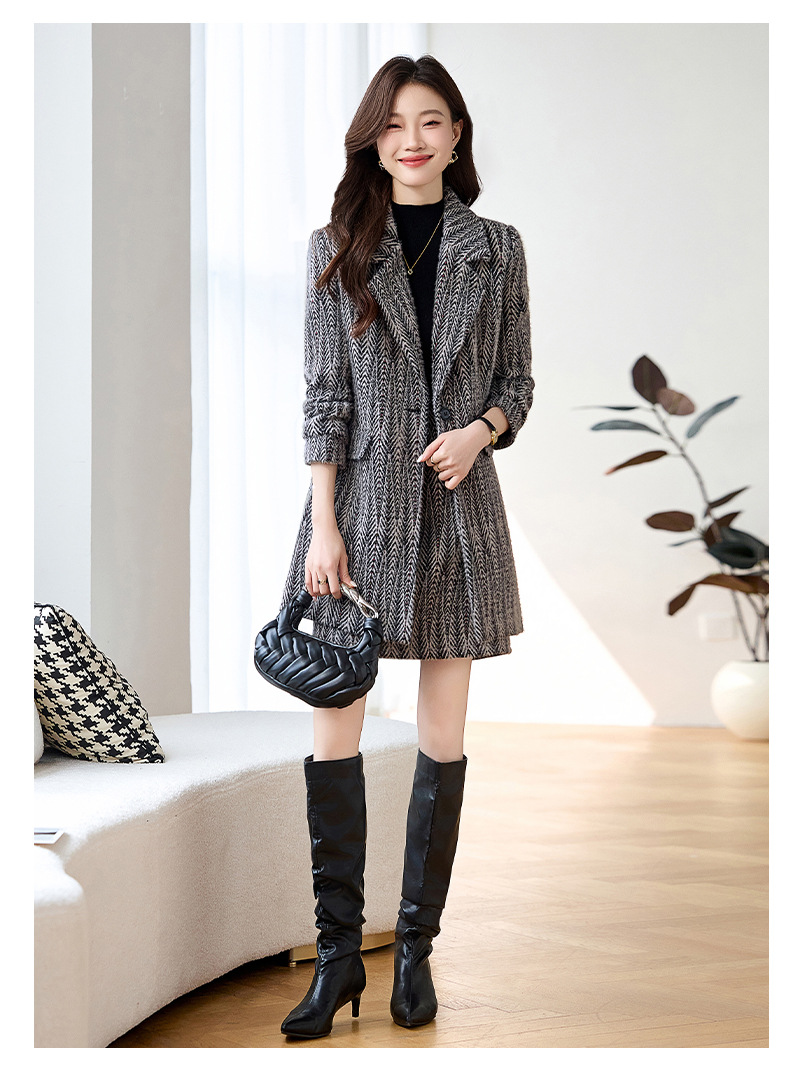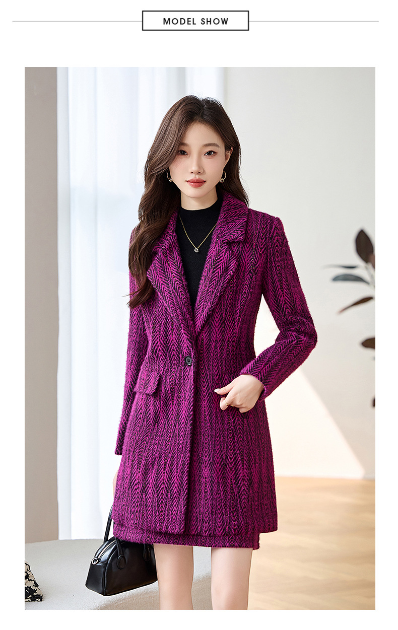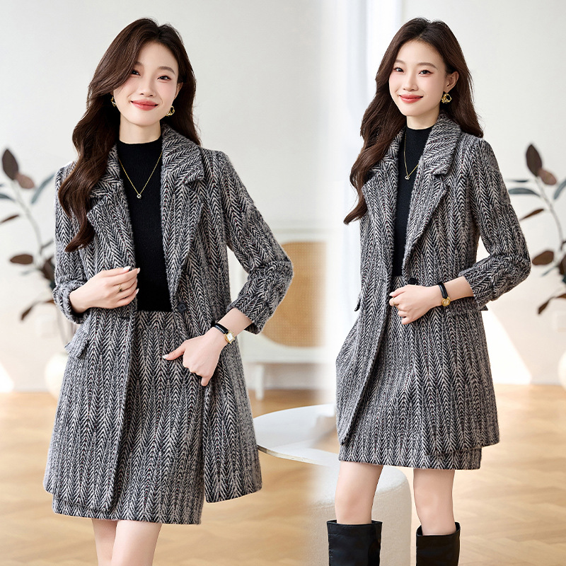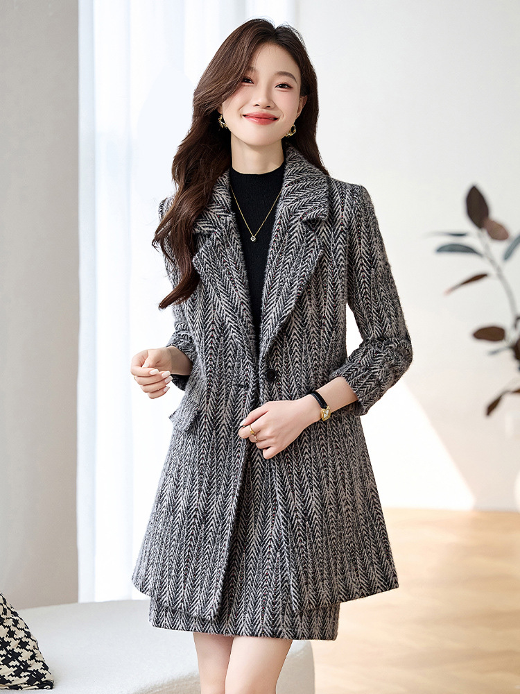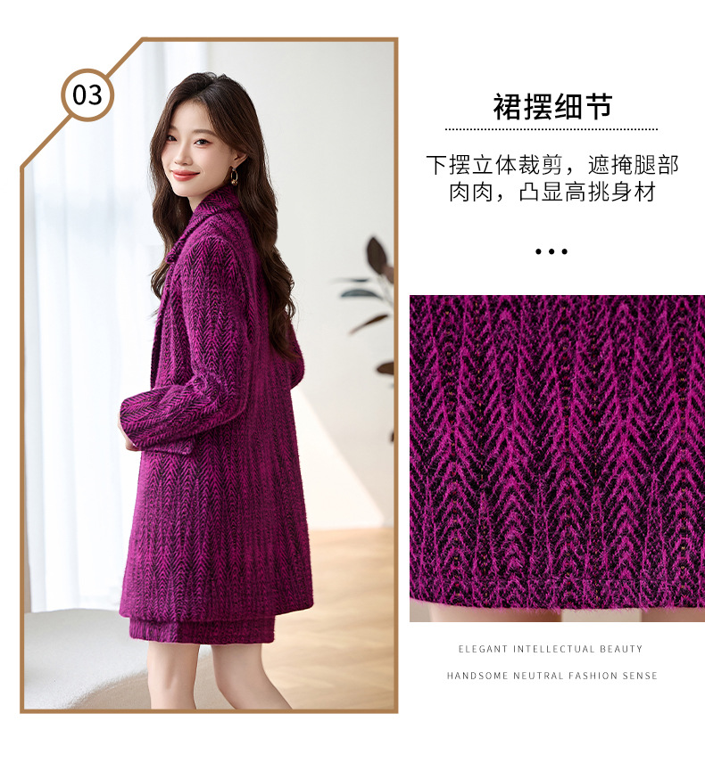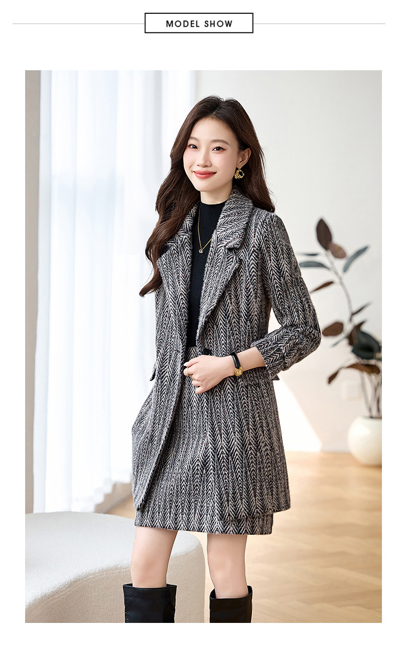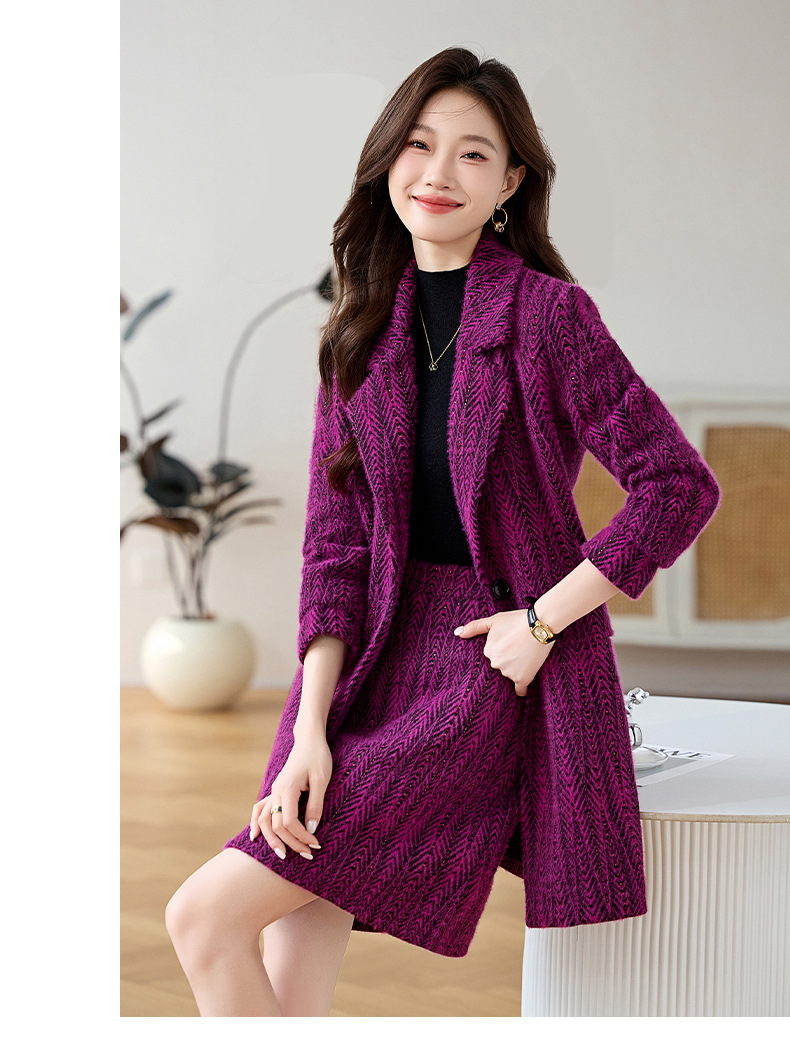 Bộ trang phục mùa thu đông này gồm áo khoác và chân váy, tạo vẻ ngoài chỉn chu, lịch sự. Áo khoắc có cổ ve áo, một khuy cài, được lót lớp bông giữ ấm tốt. Chân váy dáng dài đến gối, dễ dàng phối cùng áo. Chất vải dày dặn, giữ form đẹp, phù hợp mặc đi làm hoặc dự tiệc. Có thể m nguyên bộ hoặc tách rời để phối đồ linh hoạt. | Tên sản phẩm: Áo Vest Nữ Chất Liệu Vải Bông Vest Cả Bộ 2 Món Dày Ấm Hàng Mùa Xuân Thu Đông - Thời Trang Nữ | Mã sản phẩm: B6614 - Giá: 2.410.000đ | Mã nhà sản xuất: HADG-G05Hình ảnh sản phẩm