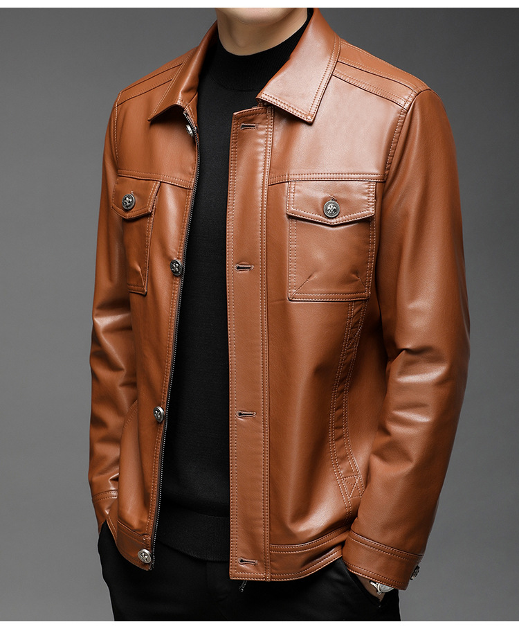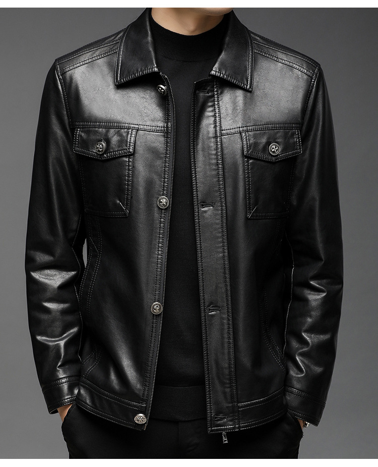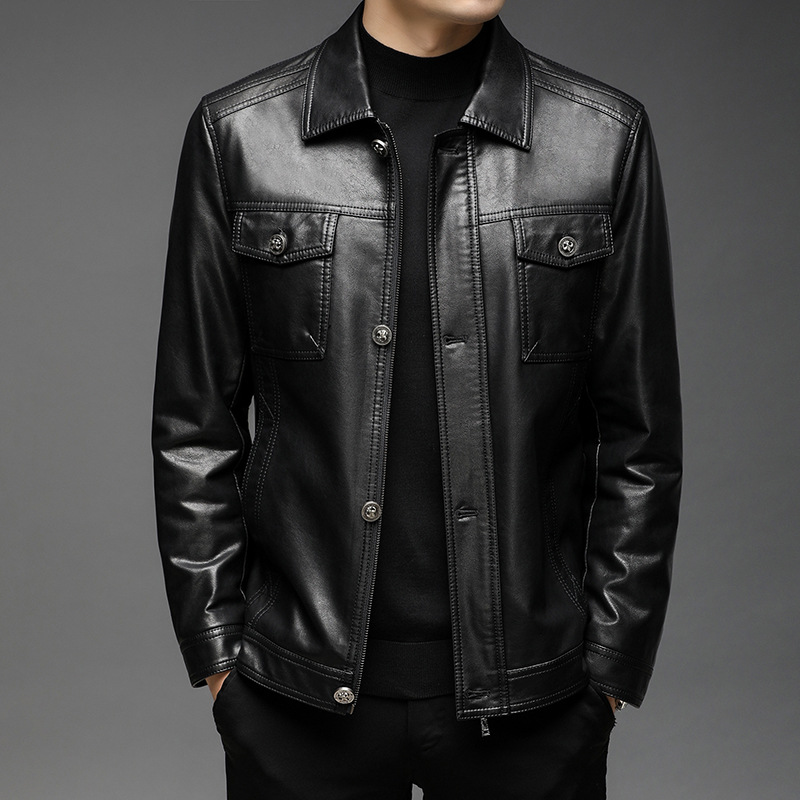 Áo khoác da nam kiểu dáng trẻ trung, phù hợp cho thời tiết lạnh. Chất liệu da mềm kết hợp lớp lót bông ấm áp bên trong, giúp giữ nhiệt và chắn gió tốt. Cổ áo thiết kế kiểu bẻ, phong cách mạnh mẽ. Sản phẩm dễ dàng phối với quần jeans và giày thể thao. Khi sử dụng, lau bề mặt bằng khăn mềm ẩm và treo ở nơi thoáng mát sau khi mặc. | Tên sản phẩm: Áo Da Nam Dày Ấm Hàng Mùa Xuân Thu Đông Phong Cách Trẻ Trung - Thời Trang Nam | Mã sản phẩm: B6618 - Giá: 1.400.000đ | Mã nhà sản xuất: SUDAP-G04Hình ảnh sản phẩm