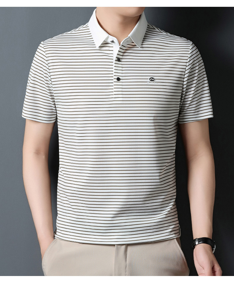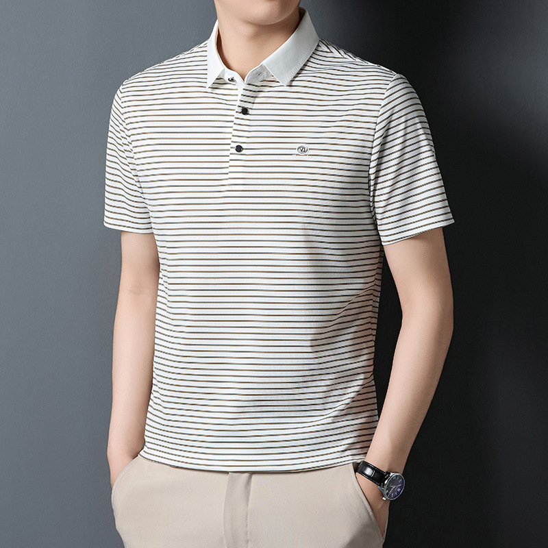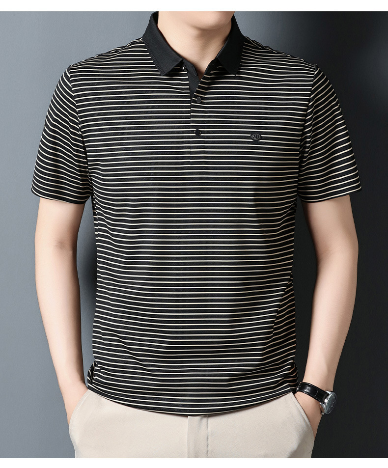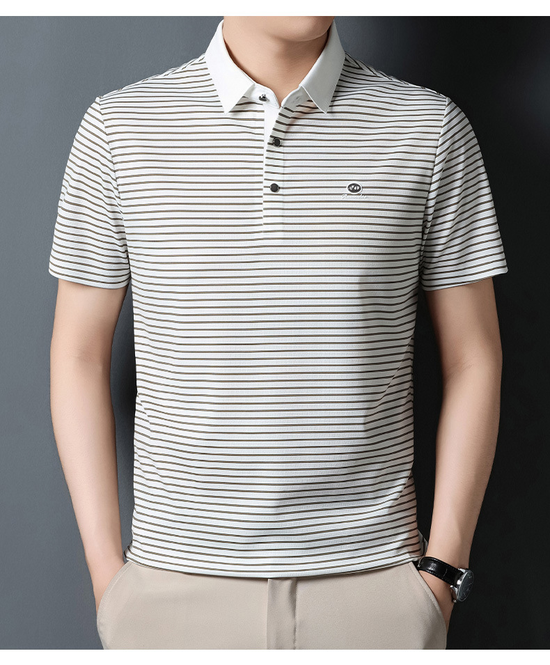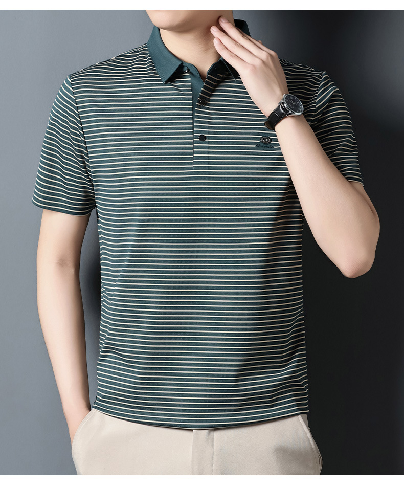 Áo thun cổ bẻ tay ngắn dành cho nam, kiểu dáng thể thao năng động với các đường sọc cách điệu. Sản phẩm có form dáng mặc vừa vặn, thoải mái, phù hợp cho nhiều dịp sinh hoạt hằng ngày. Chất vải co giãn nhẹ, thấm hút mồ hôi tốt giúp người mặc dễ chịu trong thời tiết nóng. Có thể kết hợp linh hoạt với quần shorts, quần jeans hoặc quần âu để tạo nên những phong cách khác nhau. | Tên sản phẩm: Áo Thun Nam Ngắn Tay Kín Cổ Hàng Mùa Hè Phong Cách Trẻ Trung - Thời Trang Nam | Mã sản phẩm: B6620 - Giá: 890.000đ | Mã nhà sản xuất: JIDG-G03Hình ảnh sản phẩm